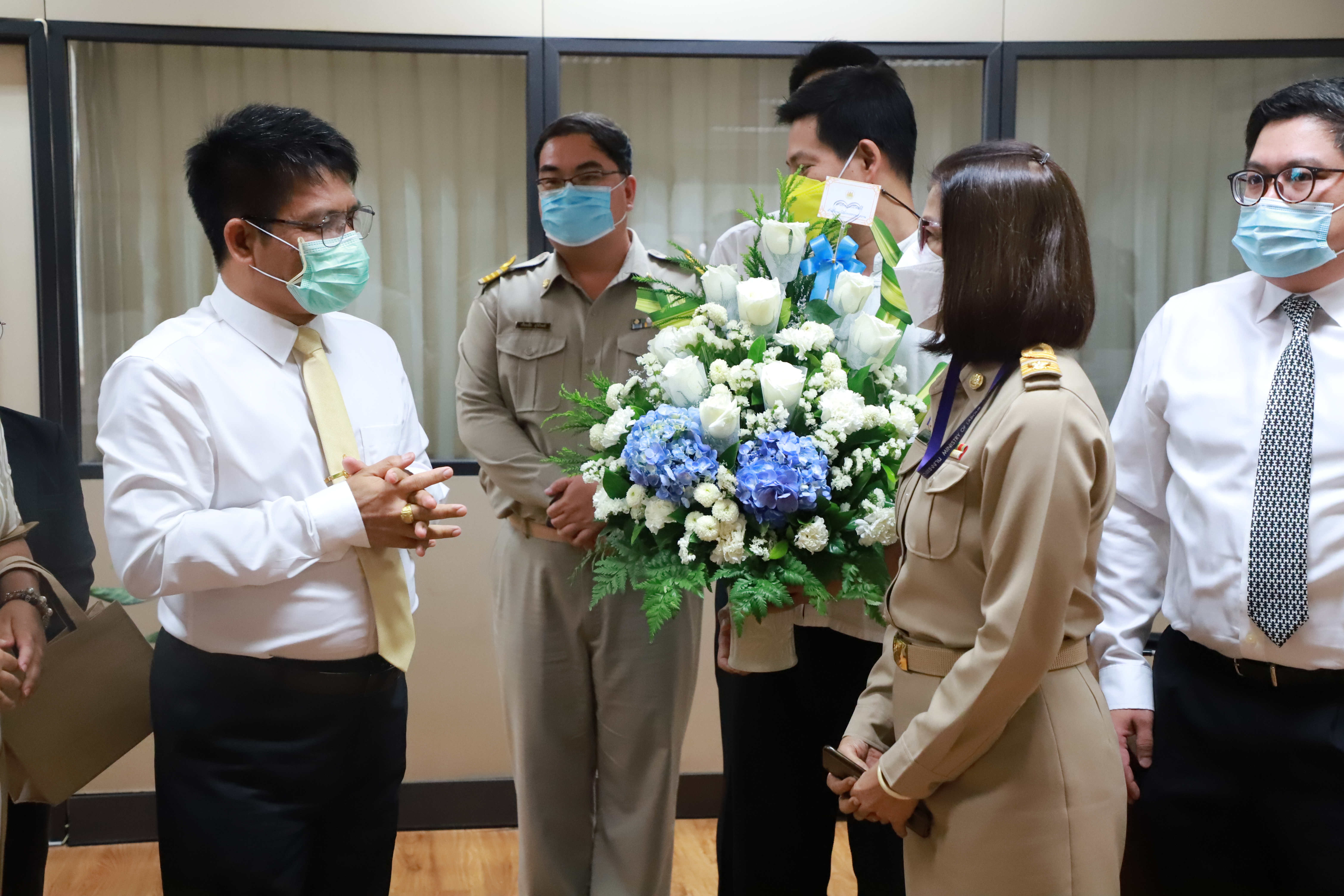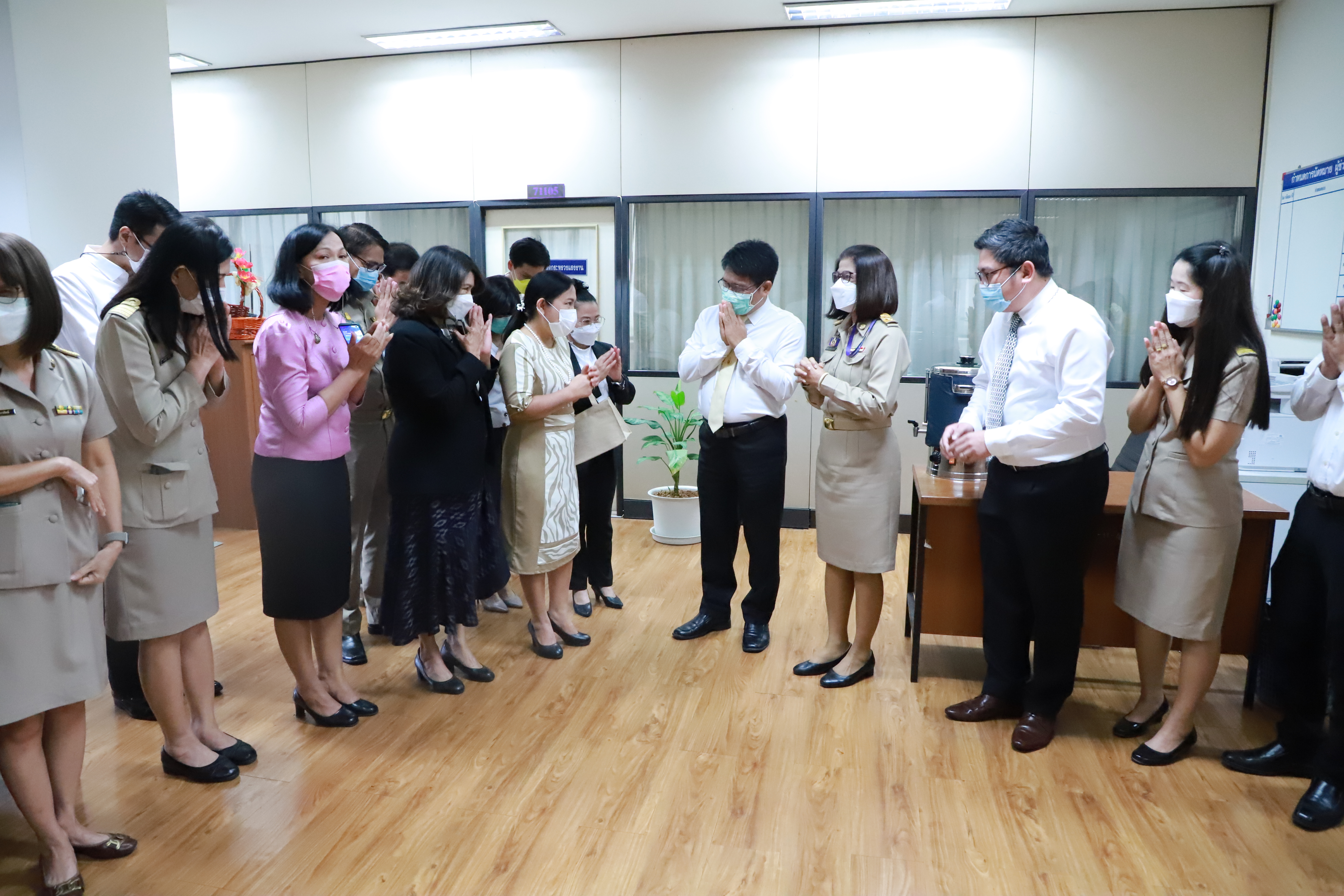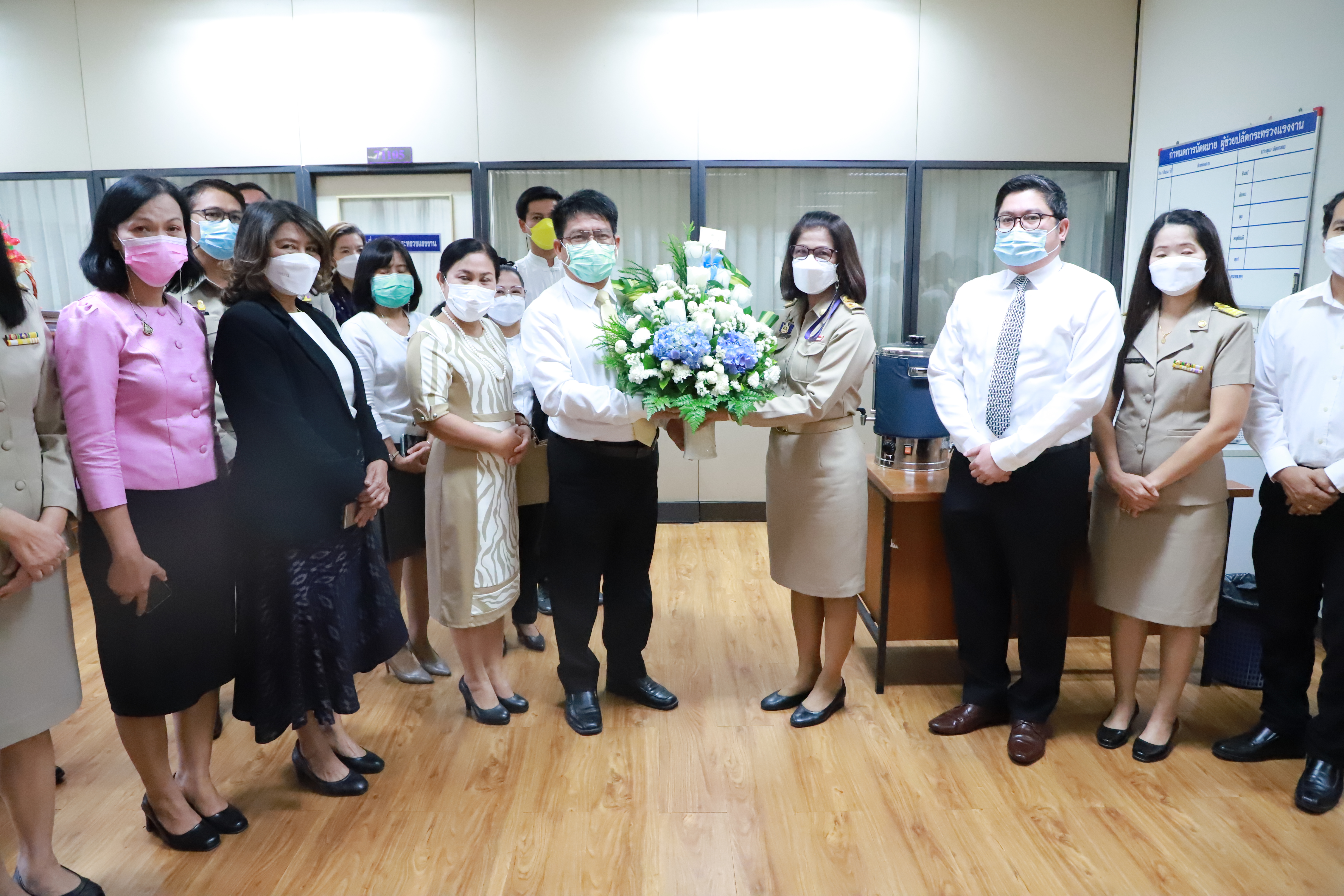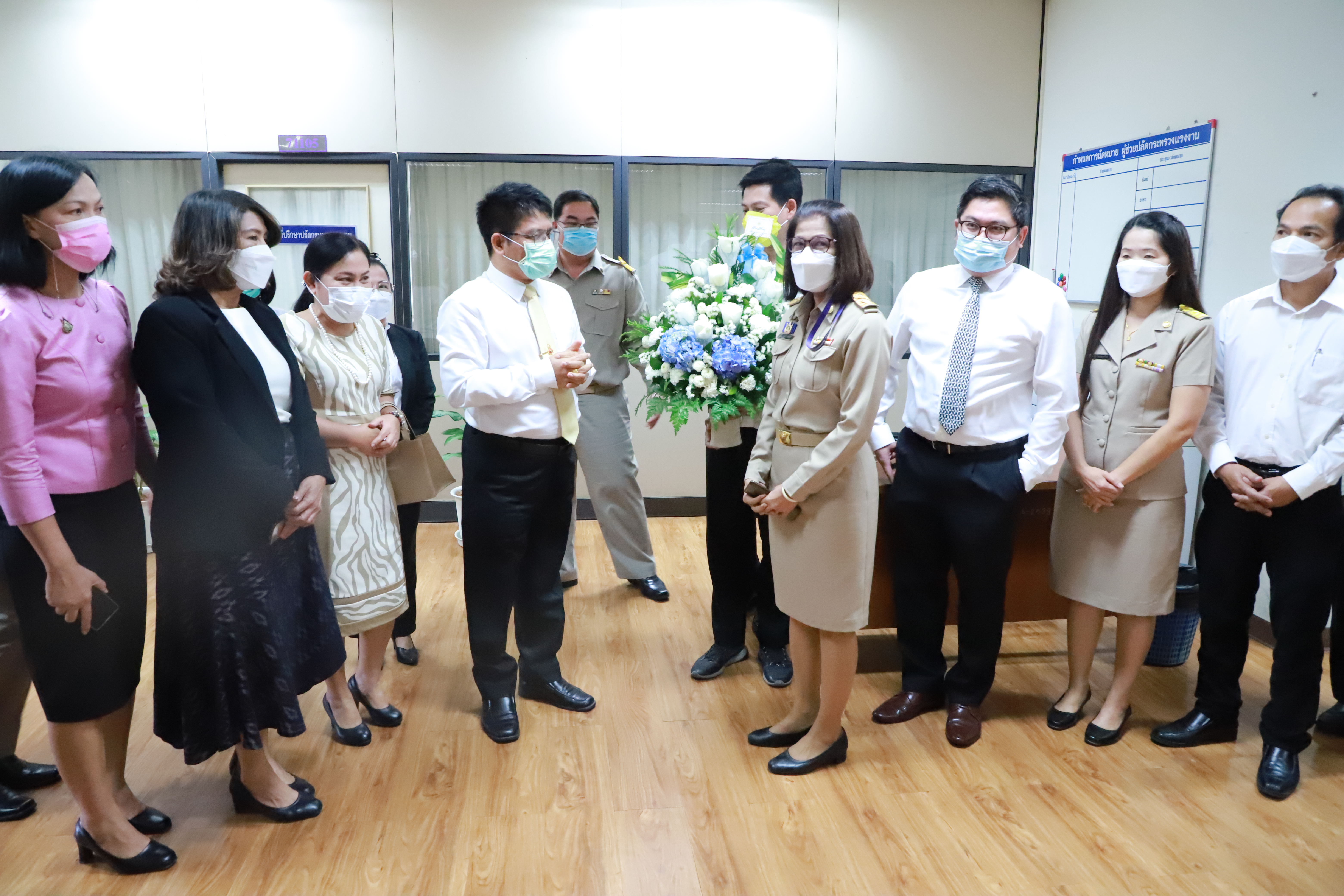 วันที่ 11 กรกฎาคม 2565 เวลา 13.45 น. นางสาวนมิตา วายนต์ ผู้อำนวยการกองบริหารทรัพยากรบุคคล นำข้าราชการและเจ้าหน้าที่ในสังกัดสำนักงานปลัดกระทรวงแรงาน เข้าร่วมแสดงความยินดีกับ นายสมศักดิ์ พรหมดำ ผู้ช่วยปลัดกระทรวงแรงงาน ในโอกาสที่เข้ารับตำแหน่ง ณ ห้องทำงานผู้ช่วยปลัดกระทรวงแรงงาน ชั้น 7 อาคารกระทรวงแรงงาน