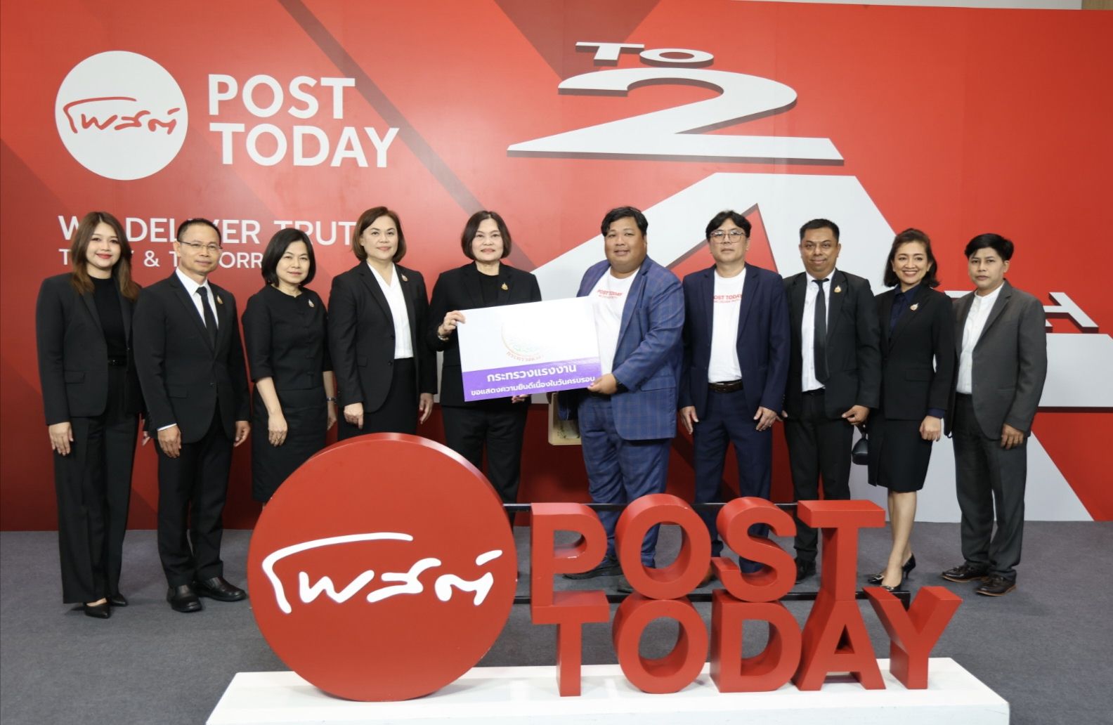 วันที่ 9 กุมภาพันธ์ 2569 เวลา 13.30 น. พันตำรวจโท วรรณพงษ์ คชรักษ์ ปลัดกระทรวงแรงงาน มอบหมายให้ นางสาวบุณยวีร์ ไขว้พันธุ์ หัวหน้าผู้ตรวจราชการกระทรวงแรงงาน นำคณะผู้บริหารกระทรวงแรงงานมอบแจกันดอกไม้ร่วมแสดงความยินดีเนื่องในโอกาสวันคล้ายวันก่อตั้งครบรอบ 23 ปี หนังสือพิมพ์โพสต์ทูเดย์ ก้าวสู่ปีที่ 24 และเพื่อแสดงความขอบคุณที่หนังสือพิมพ์โพสต์ทูเดย์ ให้ความอนุเคราะห์ในการประชาสัมพันธ์ข่าวของกระทรวงแรงงานด้วยดีตลอดมา โดยมี คุณธรรศพงศ์ หิรัณย์ธนาคุณ กรรมการผู้จัดการ บริษัท โพสต์ทูเดย์ จำกัด คุณอภิทิต ศรียาภัย บรรณาธิการข่าวโพสต์ทูเดย์ เป็นผู้รับมอบและร่วมให้การต้อนรับ พร้อมด้วยผู้บริหารและเจ้าหน้าที่ หนังสือพิมพ์โพสต์ทูเดย์ ร่วมให้การต้อนรับ ณ อาคารเนชั่นทาวเวอร์ ถนนบางนา – ตราด เขตบางนา กรุงเทพมหานคร
