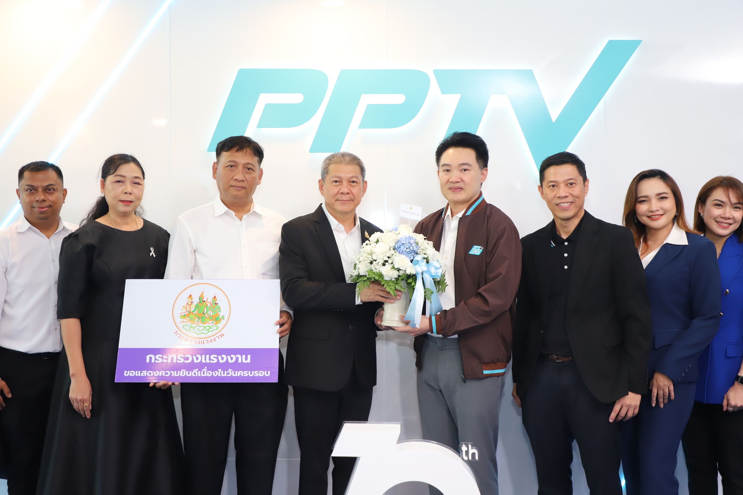 วันที่ 3 เมษายน 2569 เวลา 10.30 น. พันตำรวจโท วรรณพงษ์ คชรักษ์ ปลัดกระทรวงแรงงาน มอบหมายให้ นายศักดินาถ สนธิศักดิ์โยธิน ผู้ช่วยปลัดกระทรวงแรงงาน และผู้แทนหน่วยงานสังกัดกระทรวงแรงงาน มอบแจกันดอกไม้ร่วมแสดงความยินดีในโอกาสครบรอบ 12 ปี สถานีโทรทัศน์พีพีทีวี เอชดี ช่อง 36 และเพื่อแสดงความขอบคุณที่สถานีโทรทัศน์พีพีทีวี เอชดี ช่อง 36 ให้ความอนุเคราะห์ในการเผยแพร่ประชาสัมพันธ์ข่าวของกระทรวงแรงงานด้วยดีตลอดมา โดยมี นายเสถียร วิริยะพรรณพงศา ผู้ช่วยกรรมการผู้อำนวยการใหญ่ฝ่ายข่าว บริษัท บางกอกมีเดีย แอนด์ บอร์ดคาสติ้ง จำกัด และคณะ เป็นผู้รับมอบและให้การต้อนรับ ณ สถานีโทรทัศน์พีพีทีวี เอชดี ช่อง 36 ซอยทรงสะอาด ถนนวิภาวดีรังสิต เขตจตุจักร กรุงเทพมหานคร