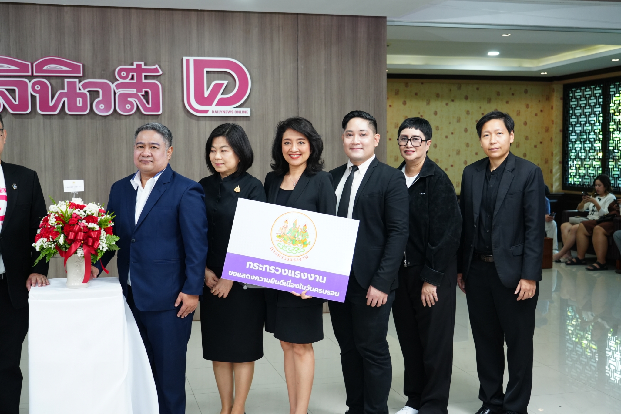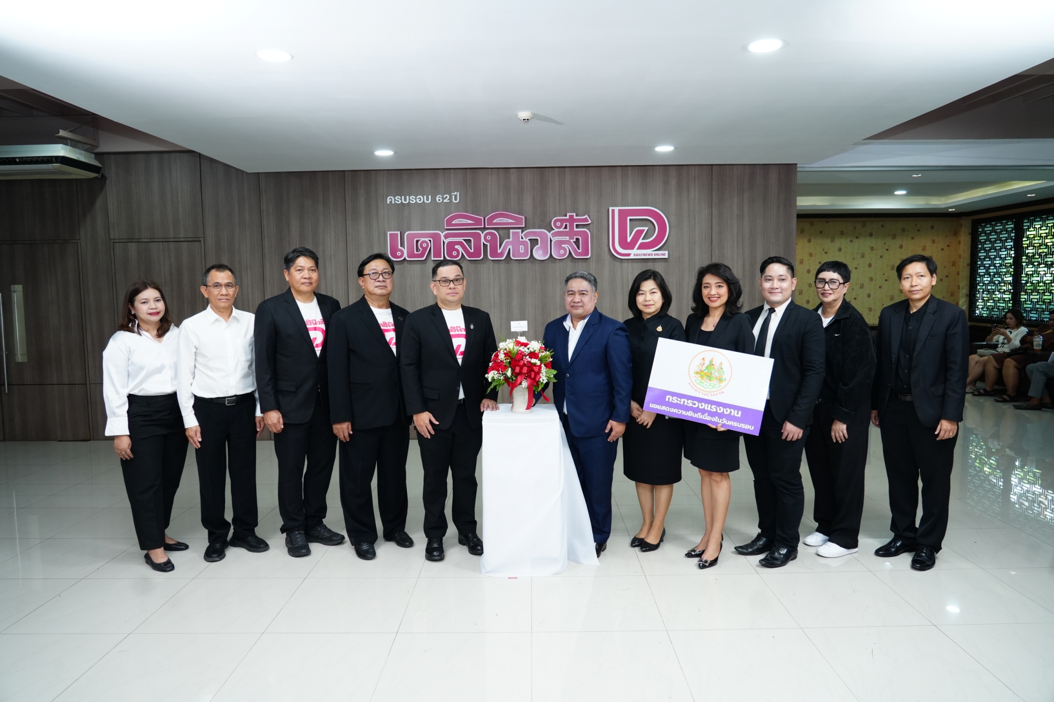 วันที่ 27 มีนาคม 2569 เวลา 11.00 น. พันตำรวจโท วรรณพงษ์ คชรักษ์ ปลัดกระทรวงแรงงาน มอบหมายให้ นายเสกสิทธิ์ สวรรยาธิปัติ ผู้ช่วยปลัดกระทรวงแรงงาน เป็นผู้แทนกระทรวงแรงงาน นำคณะหน่วยงานในสังกัดกระทรวงแรงงานมอบแจกันดอกไม้ร่วมแสดงความยินดีเนื่องในโอกาสครบรอบ 62 ปี หนังสือพิมพ์เดลินิวส์ และเพื่อแสดงความขอบคุณที่หนังสือพิมพ์เดลินิวส์ ให้ความอนุเคราะห์ในการประชาสัมพันธ์ข่าวของกระทรวงแรงงานด้วยดีตลอดมา ในการนี้ กระทรวงแรงงาน ร่วมบริจาคเงินสมทบมูลนิธิแสง – ไซ้กี เหตระกูล โดยมี คุณอภิชัย รุ่งเรืองกุล บรรณาธิการ ผู้พิมพ์โฆษณา และคุณนพปฎล รัตนพันธ์ รองบรรณาธิการบริหารเดลินิวส์ เป็นผู้รับมอบและให้การต้อนรับ ณ สำนักงานเดลินิวส์ ถนนวิภาวดีรังสิต เขตหลักสี่ กรุงเทพมหานคร