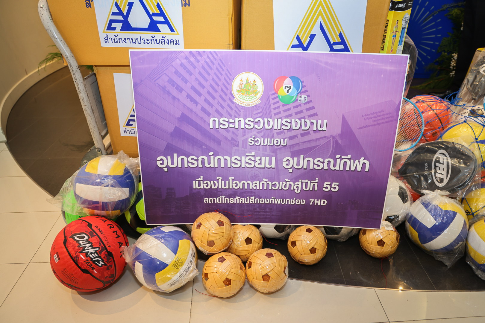 เมื่อวันที่ 26 พฤศจิกายน 2564 นายสุชาติ ชมกลิ่น รัฐมนตรีว่าการกระทรวงแรงงาน มอบหมายให้ นายสุเทพ ชิตยวงษ์ เลขานุการรัฐมนตรีว่าการกระทรวงแรงงาน พร้อมด้วย นางเธียรรัตน์นะวะมะวัฒน์ โฆษกกระทรวงแรงงาน (ฝ่ายการเมือง) และ นายศักดินาถ สนธิศักดิ์โยธิน ผู้ตรวจราชการกรม สำนักงานประกันสังคม เป็นผู้แทนกระทรวงแรงงานร่วมแสดงความยินดีเนื่องในวาระครบรอบก่อตั้ง 54 ปี ก้าวสู่ปีที่ 55 สถานีโทรทัศน์สีกองทัพบก ช่อง 7HD โดยมี นายสมโภชน์ โตรักษา ผู้จัดการฝ่ายข่าว เป็นผู้รับมอบอุปกรณ์กีฬาและอุปกรณ์การเรียน ซึ่งหลังจากนี้ช่อง 7HD จะนำไปบริจาคให้แก่โรงเรียนที่ขาดแคลนต่อไป ณ สถานีโทรทัศน์สีกองทัพบก ช่อง 7HD เขตจตุจักร กรุงเทพมหานคร