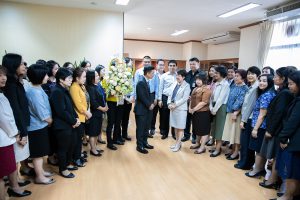 วันนี้ (6 ก.พ. 63) เวลา 13.30 น. นายนิยม สองแก้ว ผู้ตรวจราชการกระทรวงแรงงาน นำคณะผู้บริหาร ข้าราชการ บุคลากรในสังกัดสำนักงานปลัดกระทรวงแรงงาน ร่วมมอบกระเช้าดอกไม้แสดงความยินดี ในโอกาสที่ นางเธียรรัตน์ นะวะมะวัฒน์ ได้รับการแต่งตั้งให้ดำรงตำแหน่ง รองปลัดกระทรวงแรงงาน ตามประกาศสำนักนายกรัฐมนตรี เรื่อง การแต่งตั้งข้าราชการพลเรือนสามัญ วันที่ 30 มกราคม 2563 ณ ห้องรองปลัดกระทรวงแรงงาน ชั้น 7 อาคารกระทรวงแรงงาน