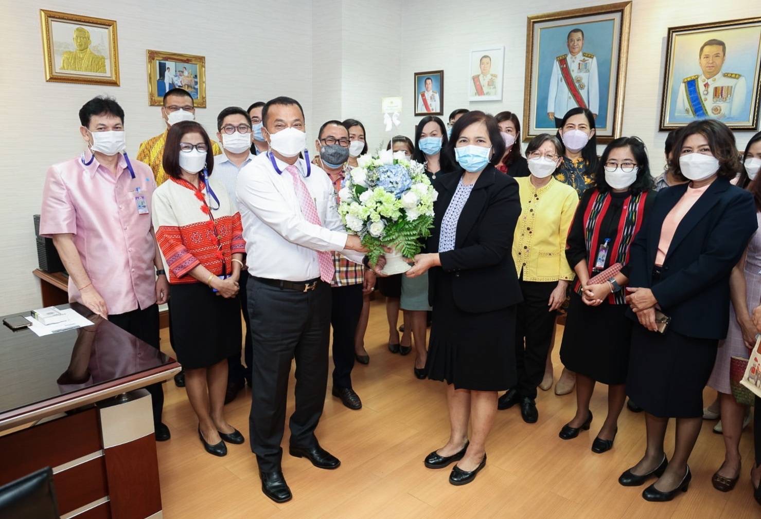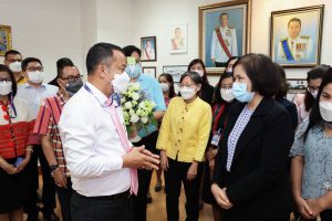วันนี้ (1 มี.ค. 65) เวลา 13.30 น. นางต้องใจ สุทัศน์ ณ อยุธยา ผู้ช่วยปลัดกระทรวงแรงงาน นำผู้บริหาร ข้าราชการ บุคลากรในสังกัดสำนักงานปลัดกระทรวงแรงงาน ร่วมมอบกระเช้าดอกไม้แสดงความยินดีในโอกาสที่ นายวรรณรัตน์ ศรีสุขใส ได้รับการแต่งตั้งให้ดำรงตำแหน่ง รองปลัดกระทรวงแรงงาน ตามประกาศสำนักนายกรัฐมนตรี เรื่อง แต่งตั้งข้าราชการพลเรือนสามัญณ ห้องรองปลัดกระทรวงแรงงาน ชั้น 7 อาคารกระทรวงแรงงาน