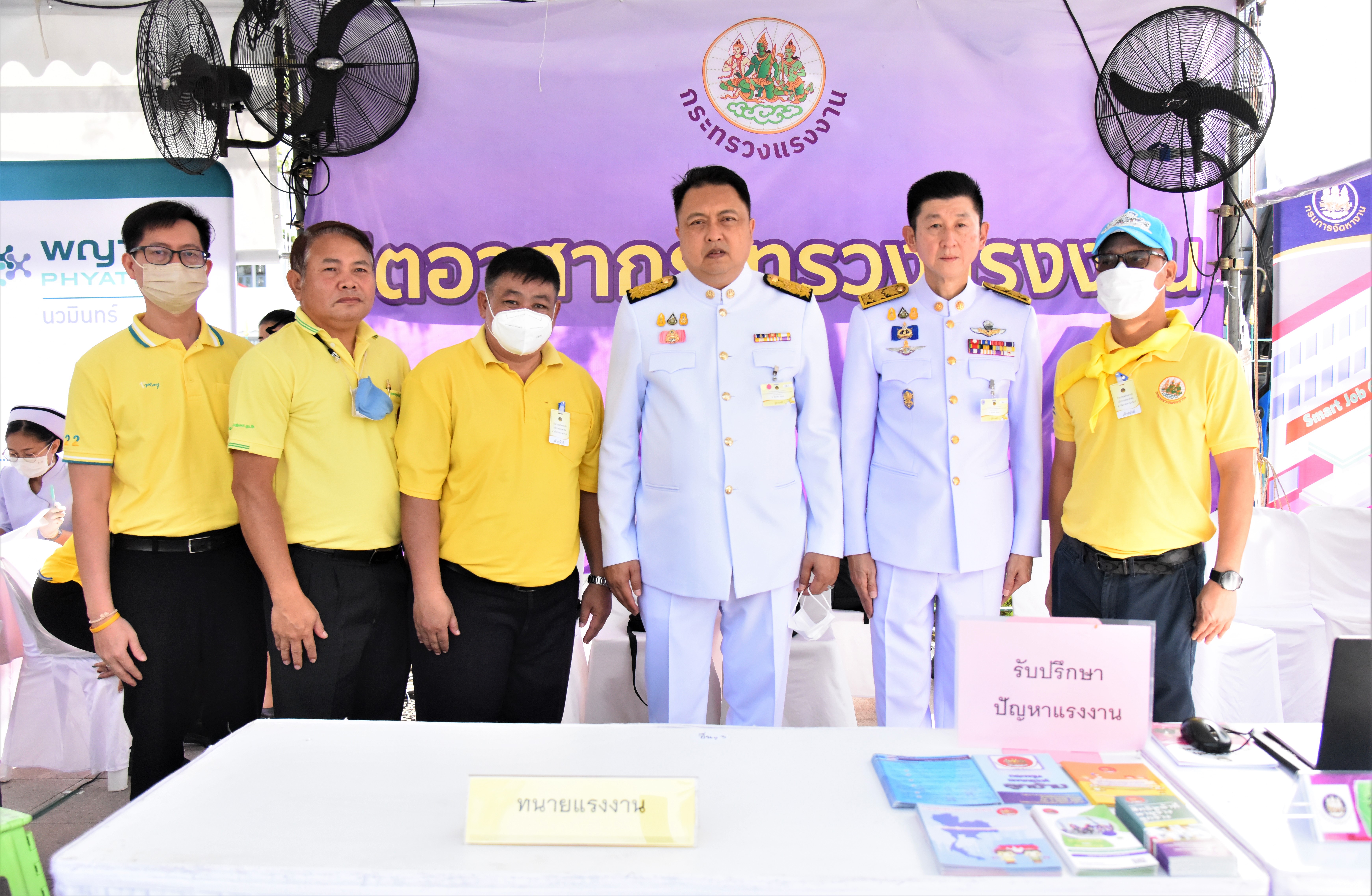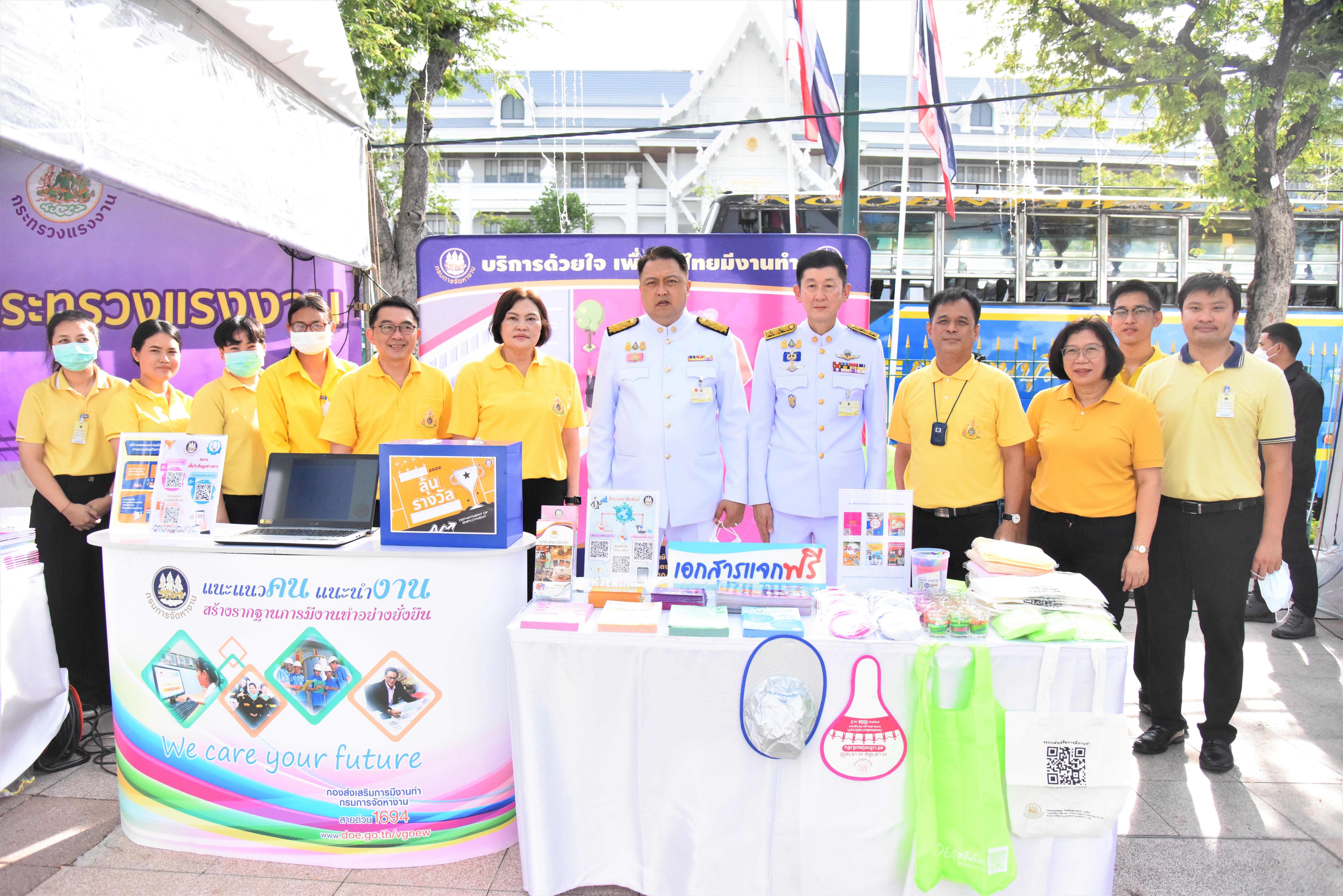 และในวันนี้รัฐมนตรีว่าการกระทรวงแรงงาน ได้มอบหมายให้ปลัดกระทรวงแรงงาน พร้อมผู้บริหารระดับสูงลงพื้นที่บริการประชาชนกิจกรรมจิตอาสาฝึกอาชีพ ได้แก่ ที่จุดชุมชนท่าเตียน พื้นที่วิทยาลัยเทคโนโลยีตั้งตรงจิตรพณิชยการ เขตพระนคร ได้มอบหมายให้ นายบุญชอบ สุทธมนัสวงษ์ ปลัดกระทรวงแรงงาน ลงพื้นที่ ที่จุดที่พักข้าราชบริพารในพระองค์ 904 เกียกกาย เขตดุสิต ได้มอบหมายให้ นางเธียรรัตน์ นะวะมะวัฒน์ โฆษกกระทรวงแรงงาน (ฝ่ายการเมือง) ลงพื้นที่ และที่จุดวัดปทุมวนาราม ราชวรวิหาร เขตปทุมวัน ได้มอบหมายให้ นางสาวบุปผา เรืองสุด รองปลัดกระทรวงแรงงาน ลงพื้นที่ด้วย สำหรับบรรยากาศวันสุดท้ายของการจัดกิจกรรมฝึกอาชีพในแต่ละจุดมีพี่น้องประชาชน นักเรียน นักศึกษา เจ้าหน้าที่จากภาคส่วนต่างๆ และชาวบ้านในพื้นที่ใกล้เคียงต่างให้ความสนใจทยอยเข้ามาใช้บริการร่วมฝึกอาชีพกับบูธของกระทรวงแรงงานกันอย่างต่อเนื่อง สำหรับผู้ที่ได้ร่วมกิจกรรมการฝึกอาชีพในครั้งนี้สามารถนำความรู้จากการฝึกไปต่อยอดในการประกอบอาชีพ สร้างงาน สร้างรายได้ให้กับตนเองและครอบครัวได้ต่อไป