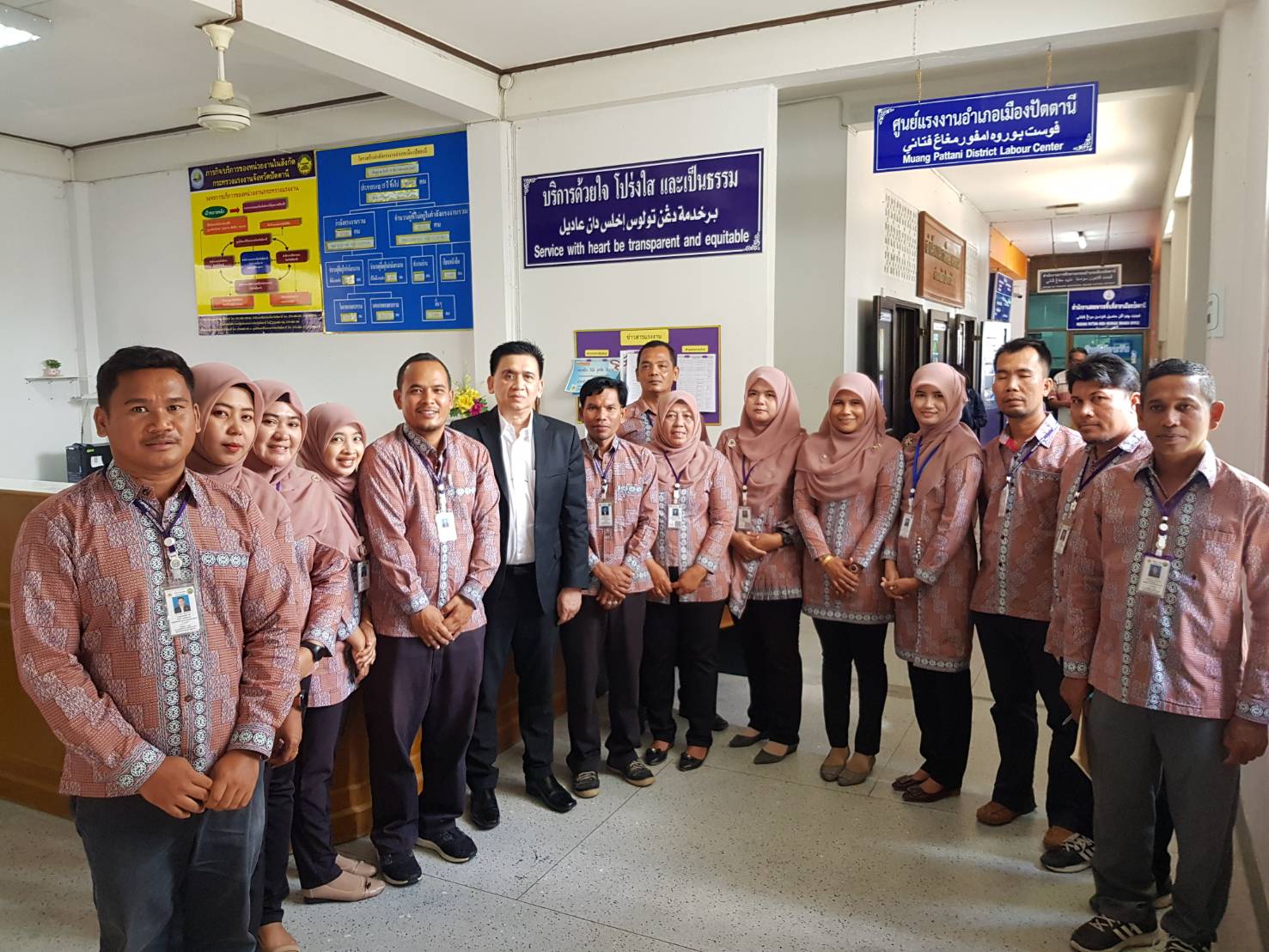 วันที่ 26 กุมภาพันธ์ 2563 นายไพโรจน์ โชติกเสถียร ผู้ตรวจราชการกระทรวงแรงงาน ลงพื้นที่ตรวจราชการในจังหวัดปัตตานี พร้อมด้วยหัวหน้าส่วนราชการในสังกัดกระทรวงแรงงานจังหวัดปัตตานี โดยตรวจเยี่ยมศูนย์แรงงานอำเภอเมืองปัตตานี มีนายอดุลย์ หมีดเส็น นายอำเภอเมืองปัตตานีให้การต้อนรับและรับฟังการรายงานผลการปฏิบัติงานจากประธานบัณฑิตแรงงาน และต่อมาได้เข้าตรวจเยี่ยมศูนย์ควบคุม การเเจ้งเรือเข้าออก (PIPO) จ.ปัตตานี มี น.อ.ธีรนันท์ มาแดง รอง ผอ.ศรชล.ปัตตานี ให้การต้อนรับและรายงานผลการปฏิบัติงาน