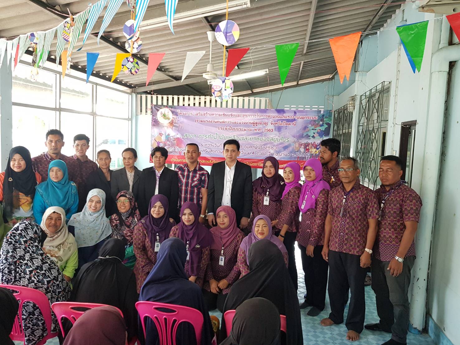 จากนั้นผู้ตรวจราชการกระทรวงแรงงานได้เป็นประธานในพิธีเปิดโครงการแก้ไขปัญหาความเดือดร้อนด้านอาชีพ ประจำปีงบประมาณ 2563 กลุ่มอาชีพช่างก่อสร้าง หลักสูตรการก่ออิฐฉาบปูน ณ โรงเรียนตาดีกา บ้านพรุวัง ตำบลท่าเรือ อำเภอโคกโพธิ์ จ.ปัตตานี และเป็นประธานในพิธีเปิดโครงการสร้างความเข้มเเข็งและสุขภาวะในการทำงานแก่แรงงานนอกระบบ(รวมแรงงานคนพิการและแรงงานผู้สูงอายุ) จังหวัดปัตตานี ประจำปีงบประมาณ พ.ศ.2563 การทำน้ำมันเหลืองและยาหม่องสมุนไพร ณ โรงพยาบาลส่งเสริมสุขภาพตำบลเกาะจัน อ.มายอ จ.ปัตตานี โดยมีปลัดอำเภอมายอ เจ้าหน้าที่โรงพยาบาลส่งเสริมสุขภาพตำบลเกาะจัน กำนัน ผู้ใหญ่บ้าน ผู้นำท้องถิ่น อสร. บัณฑิตแรงงานให้การต้อนรับ