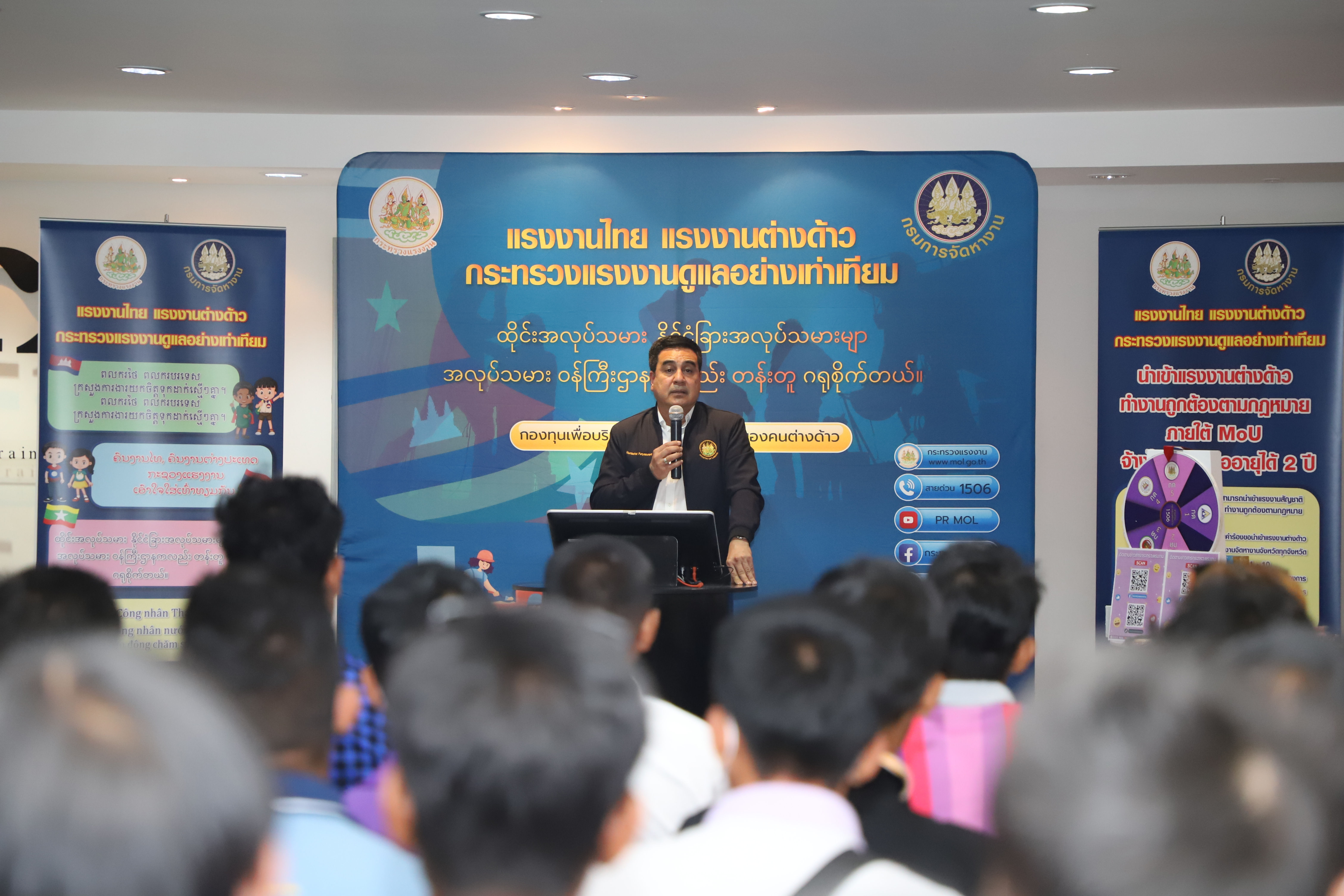 นายนันทชัย ปัญญาสุรฤทธิ์ ผู้ตรวจราชการกระทรวงแรงงาน เปิดเผยว่า รัฐบาลภายใต้การนำของท่าน พล.อ.ประยุทธ์ จันทร์โอชา นายกรัฐมนตรีและและรัฐมนตรีว่าการกระทรวงกลาโหม และกระทรวงแรงงาน โดยท่านสุชาติ ชมกลิ่น รัฐมนตรีว่าการกระทรวงแรงงาน ได้ให้ความสำคัญกับการบริหารจัดการการทำงานของคนต่างด้าวสัญชาติกัมพูชา ลาว เมียนมา และเวียดนาม โดยคำนึงถึงความมั่นคงของประเทศและความปลอดภัยของประชาชนชาวไทย ในวันนี้ในส่วนของกระทรวงแรงงาน โดยกองเผยแพร่และประชาสัมพันธ์ สำนักงานปลัดกระทรวงแรงงาน ได้นำกิจกรรม นิทรรศการมาออกหน่วยประชาสัมพันธ์เคลื่อนที่ตามโครงการประชาสัมพันธ์เพื่อสร้างการรับรู้ และความเข้าใจนโยบายการบริหารจัดการ การนำเข้า ป้องกันและคุ้มครองสิทธิแรงงานต่างด้าวของกระทรวงแรงงานและรัฐบาล เพื่อสร้างการรับรู้เรื่องสิทธิของแรงงานต่างด้าว ภายใต้กรอบแนวคิด “แรงงานต่างด้าวและแรงงานไทยได้รับการดูแลอย่างเท่าเทียม” โดยมุ่งเน้นการประชาสัมพันธ์สร้างการรับรู้ไปสู่นายจ้าง สถานประกอบกิจการที่จ้างแรงงานต่างด้านในพื้นที่จังหวัดภูเก็ต รวมทั้งกำชับให้ส่วนราชการสังกัดกระทรวงแรงงานในพื้นที่ให้ความสำคัญในการบูรณาการในการบริหารจัดการ การนำเข้า ป้องกัน และคุ้มครองสิทธิแรงงานต่างด้าวให้ได้รับการปฏิบัติตามกฎหมายอย่างเท่าเทียมกับแรงงานไทย เช่น อัตราค่าจ้างขั้นต่ำ การรักษาพยาบาล การได้รับสวัสดิการจากสถานประกอบการ อย่างเป็นธรรม เพื่อเป็นการป้องกันการเกิดปัญหาการค้ามนุษย์ในรูปแบบที่เลวร้าย ซึ่งอาจจะส่งผลกระทบต่อการจัดลำดับสถานการณ์การค้ามนุษย์ของประเทศไทยให้อยู่ในระดับที่ต่ำกว่าเดิม