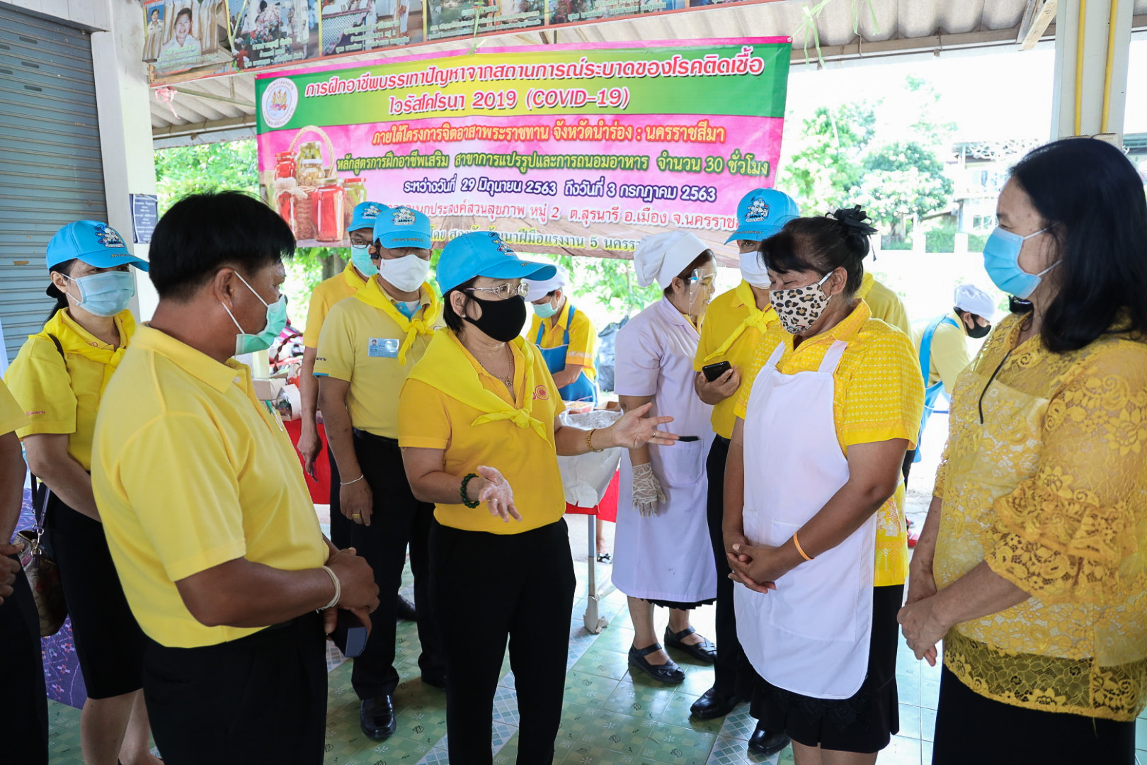 เมื่อวันที่ 2 กรกฎาคม 2563 นางเธียรรัตน์ นะวะมะวัฒน์ รองปลัดกระทรวงแรงงาน ตรวจเยี่ยมและให้กำลังใจผู้เข้ารับการฝึกอาชีพเพื่อบรรเทาปัญหาจากสถานการณ์ระบาดของโรคติดเชื้อไวรัสโคโรนา 2019 (Covid – 19)ภายใต้โครงการจิตอาสาพระราชทาน จังหวัดนำร่อง : นครราชสีมา หลักสูตรฝึกอาชีพเสริม สาขาการแปรรูปและการถนอมอาหาร ณศาลาอเนกประสงค์สวนสุขภาพ หมู่ที่ 2 ตำบลสุรนารี อำเภอเมือง จังหวัดนครราชสีมา โดยรองปลัดกระทรวงแรงงาน กล่าวว่า กระทรวงแรงงานสำนึกในพระมหากรุณาธิคุณที่พระบาทสมเด็จพระเจ้าอยู่หัวและสมเด็จพระบรมราชินี มีพระราชดำริให้ศูนย์อำนวยการใหญ่จิตอาสาพระราชทาน (ศอญ.) ร่วมกับกระทรวงแรงงานดำเนินโครงการจิตอาสาพระราชทาน จังหวัดนำร่อง : นครราชสีมา หลักสูตรฝึกอาชีพเสริม สาขาการแปรรูปและการถนอมอาหารขึ้น โดยมีวัตถุประสงค์เพื่อให้ประชาชนที่ว่างงานจากผลกระทบโควิด มีงานทำ มีรายได้ เพื่อจุนเจือภายในครอบครัว