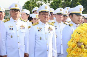 วันที่ 13 ตุลาคม 2568 เวลา 08.00 น. นายสันติ นันตสุวรรณ รองปลัดกระทรวงแรงงาน วางพวงมาลาถวายบังคมพระบรมราชานุสาวรีย์ พระบาทสมเด็จพระบรมชนกาธิเบศร มหาภูมิพลอดุลยเดชมหาราช บรมนาถบพิตร เนื่องในวันนวมินทรมหาราช พ.ศ.2568 โดยมี นายสมชาย มรกตศรีวรรณ หัวหน้าผู้ตรวจราชการกระทรวงแรงงาน ว่าที่ร้อยตรี สมศักดิ์ พรหมดำ ผู้ตรวจราชการกระทรวงแรงงาน นายสิบหมื่นชัย โพธิสินธุ์ ผู้ตรวจราชการกระทรวงแรงงาน นายเกริกไกร นาสมยนต์ ที่ปรึกษากฎหมาย นายศักดินาถ สนธิศักดิ์โยธิน ผู้ช่วยปลัดกระทรวงแรงงาน และผู้บริหารระดับสูงกระทรวงแรงงาน เข้าร่วมพิธี ณ อุทยานเฉลิมพระเกียรติพระบาทสมเด็จพระบรมชนกาธิเบศร มหาภูมิพลอดุลยเดชมหาราช บรมนาถบพิตร