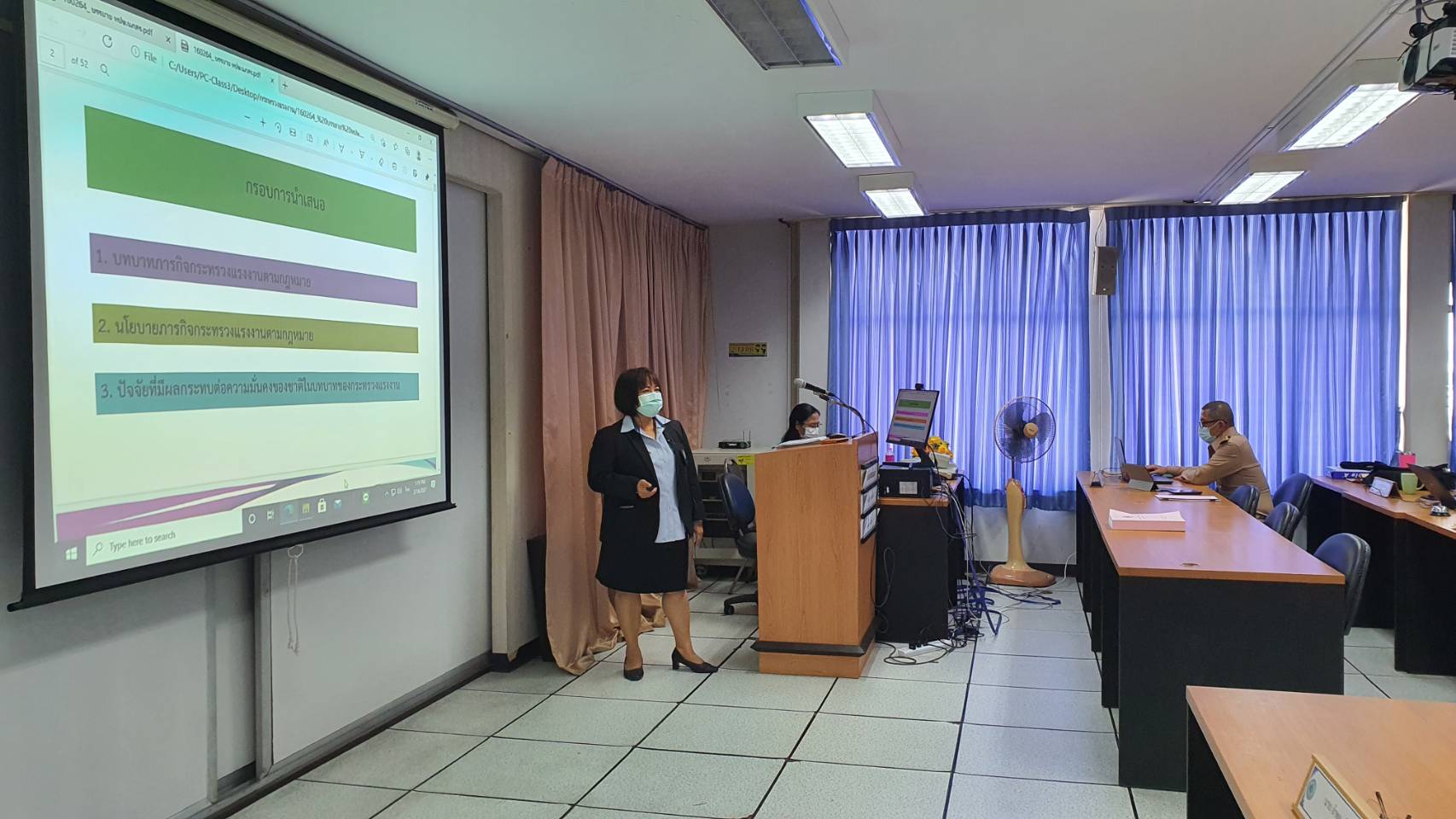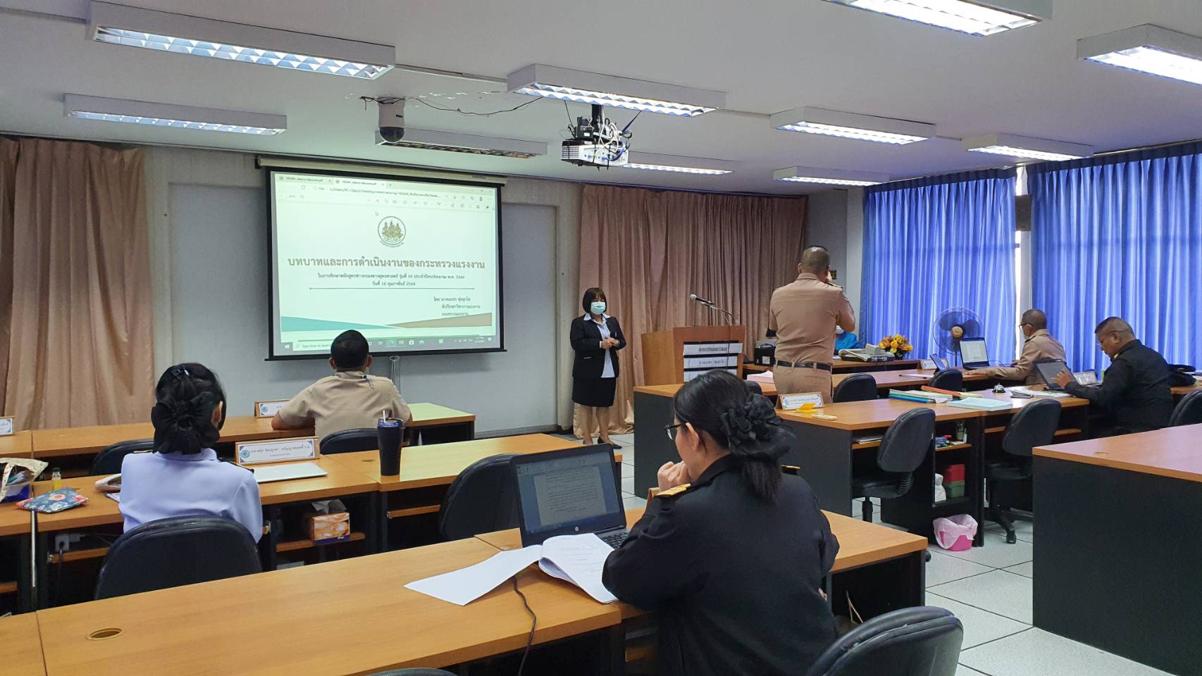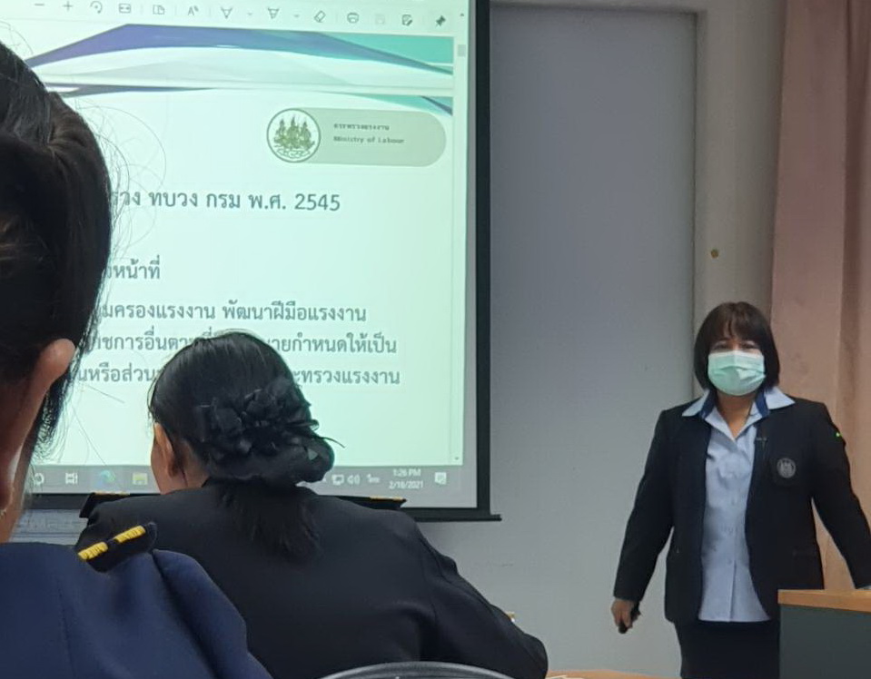 วันที่ 16 กุมภาพันธ์ 2564 เวลา 12.30น. นายสุทฺธิ สุโกศล ปลัดกระทรวงแรงงาน มอบหมายให้ นางนภสร ทุ่งสุกใส ที่ปรึกษาวิชาการแรงงาน เป็นวิทยากรบรรยายในหลักสูตร “ข่าวกรองทางยุทธศาสตร์” รุ่นที่ 54 วิชา “บทบาทและการดำเนินงานของกระทรวงแรงงาน” เพื่อให้ทราบถึงบทบาทและการดำเนินงานของกระทรวงแรงงาน ภารกิจ การจัดนโยบาย วิสัยทัศน์ และการดำเนินงานของกระทรวงแรงงานตามกรอบยุทธศาสตร์ชาติระยะ 20 ปี (พุทธศักราช 2560ถึง พุทธศักราช 2579) และปัจจัยที่มีผลกระทบต่อความมั่นคงของชาติในบทบาทของกระทรวงแรงงาน ณ ห้องเรียนข่าวกรองทางยุทธศาสตร์ อาคาร 204 ชั้น 2 โรงเรียนรักษาความปลอดภัย