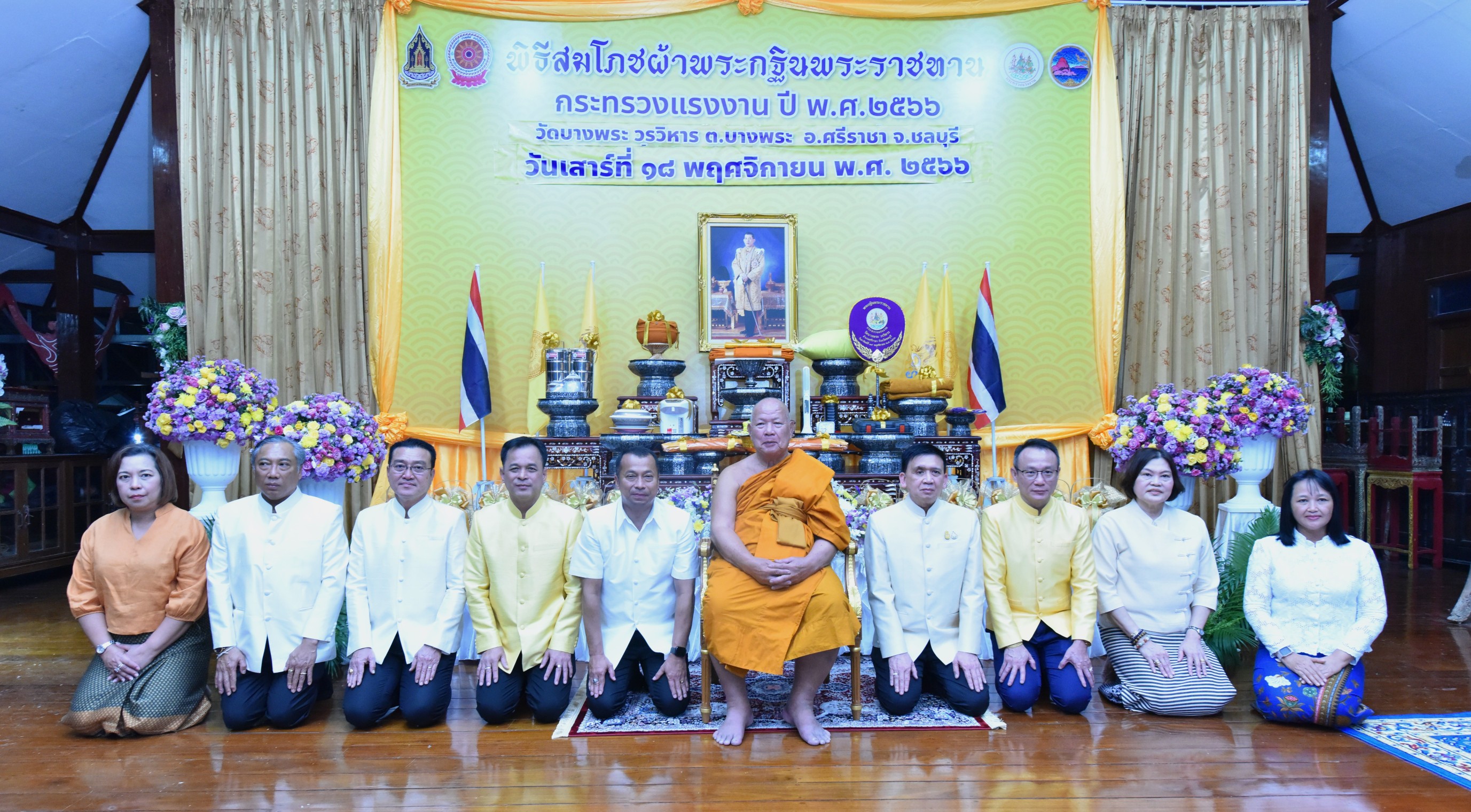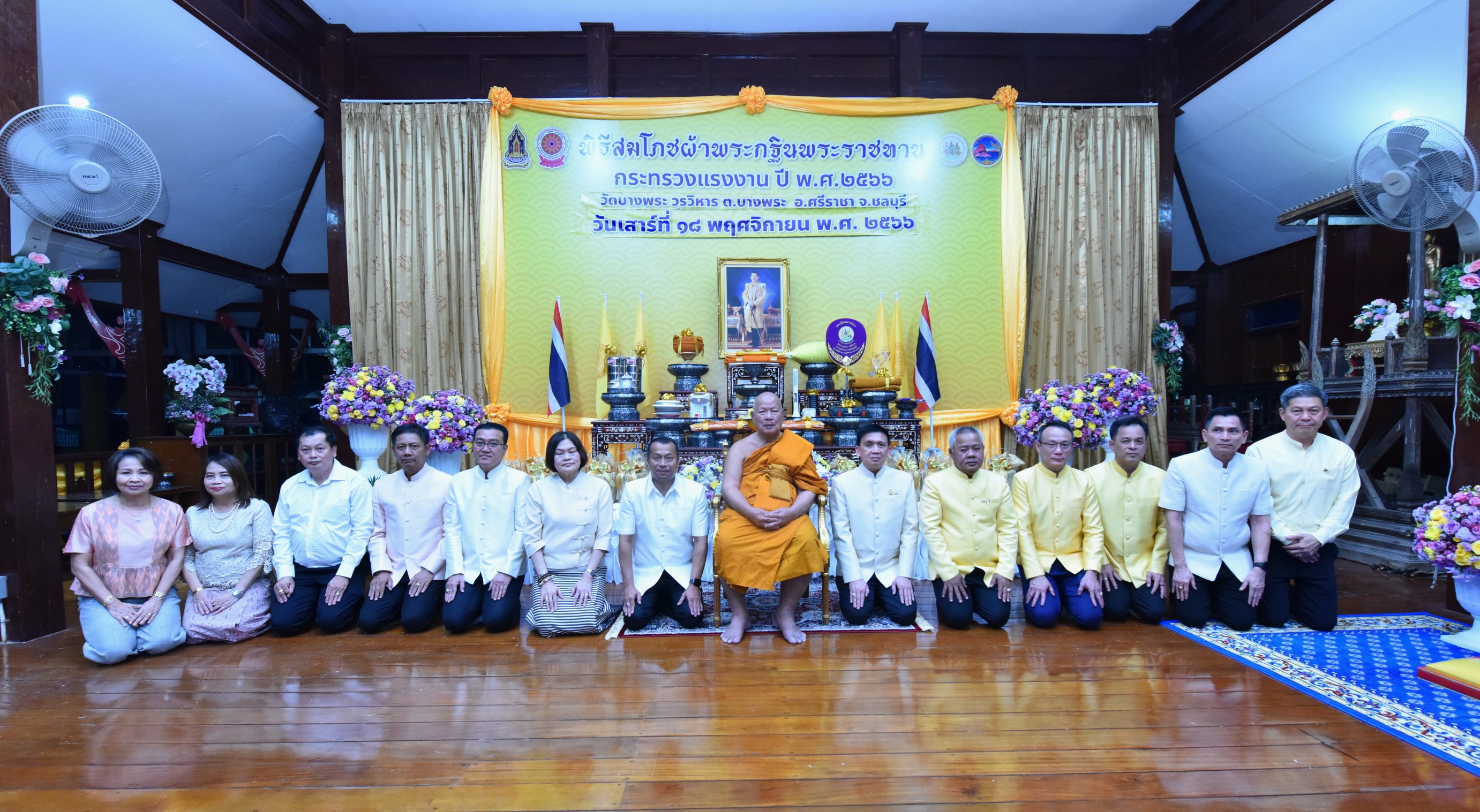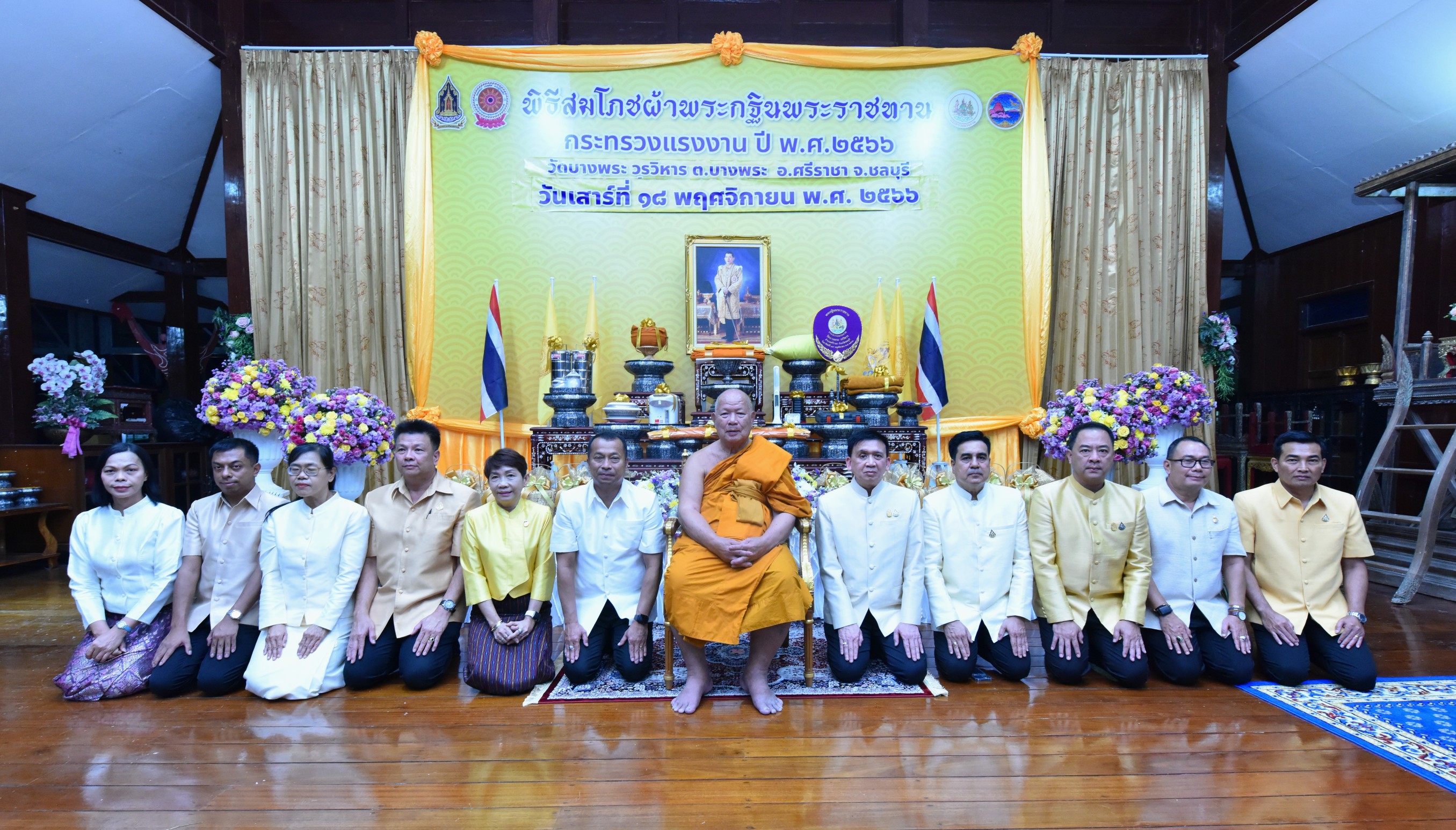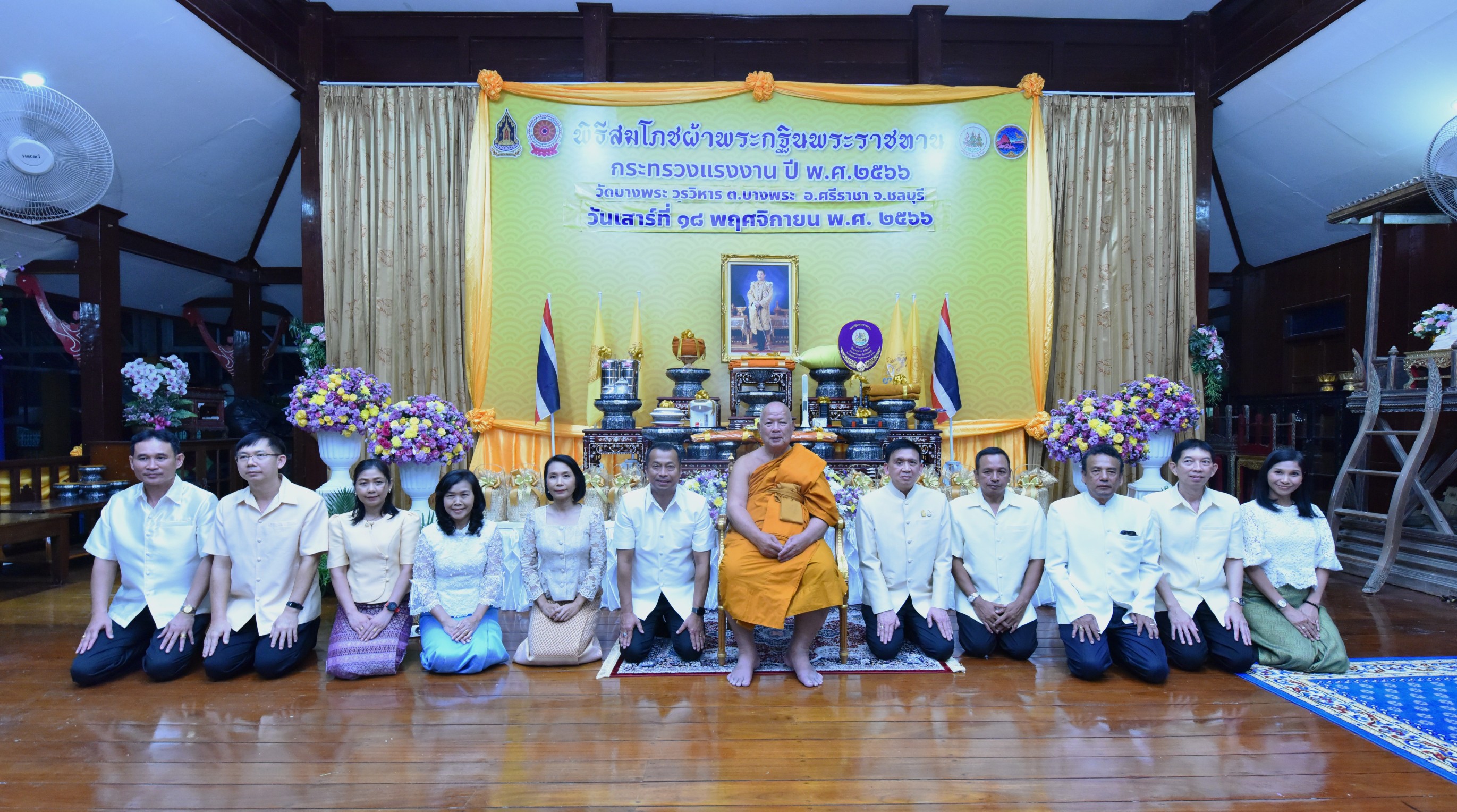 On November 18, 2023, at 18.00 hours, the Permanent Secretary of Labour, Mr. Phairoj Chotikasatian, presided over the Ministry of Labour’s Royal Kathin Robe Ceremony for 2023. The Deputy Permanent Secretary of Labour, Mr. Wannarat Srisuksai, the Ministry of Labour’s Inspector-General, Mr. Nantachai Panyasurarit, the Ministry of Labour’s Inspector-General, Mr. Samat Pattamasukon, the Assistant to the Permanent Secretary of Labour, Ms. Kornjirat Pongjansat, the Ministry of Labour’s senior executives, civil servants, and officials, attended the ceremony at the Pavilion, Wat Bang Phra Worawihan, Phra Aram Luang, Bang Phra Subdistrict, Si Racha District, Chonburi Province.