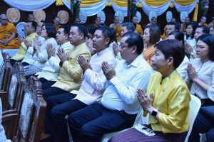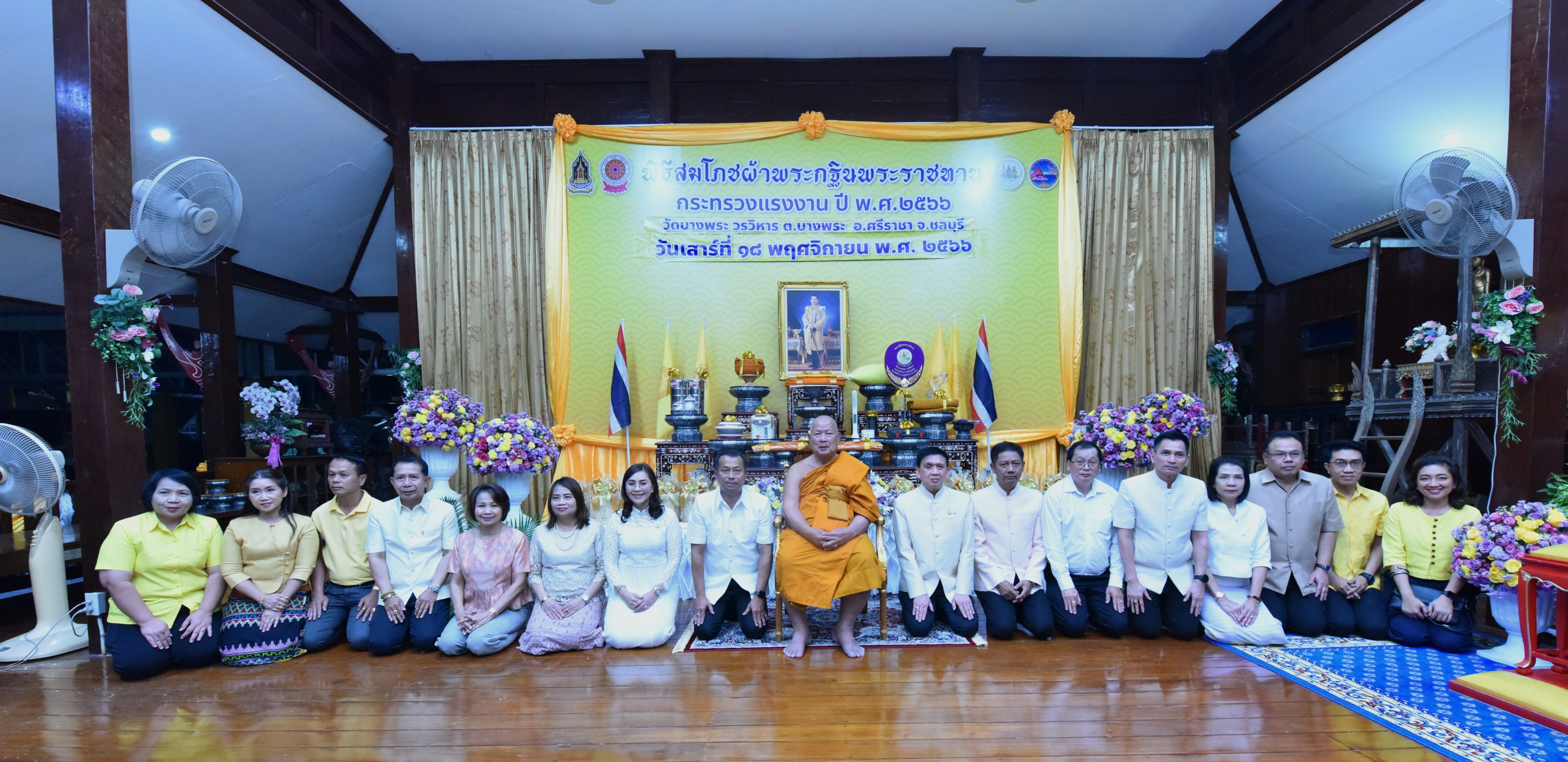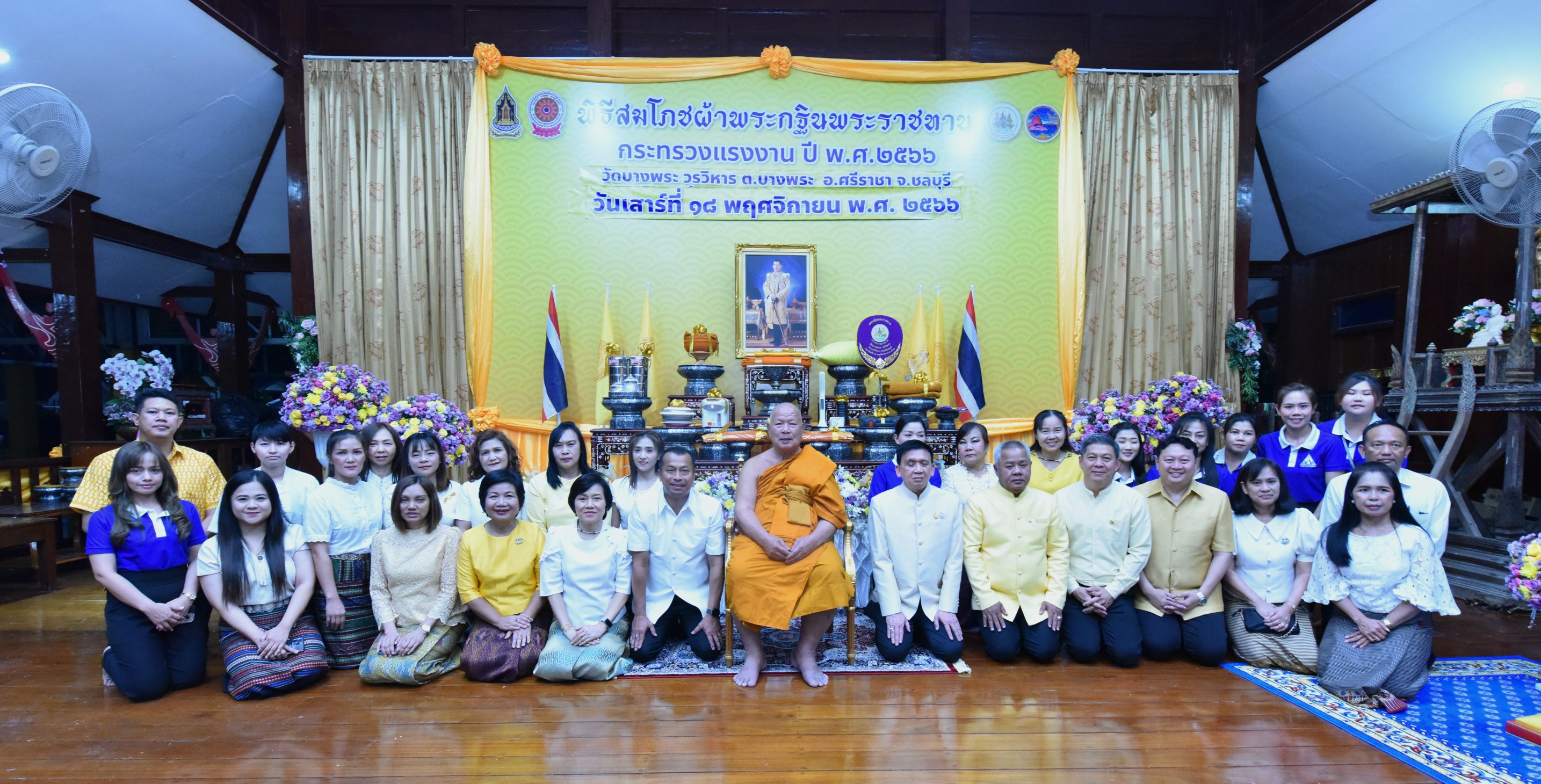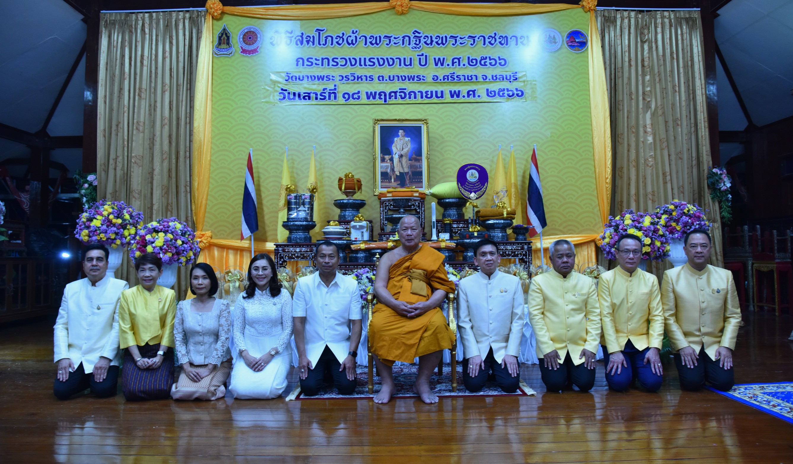 On November 18, 2023, at 18.00 hours, the Permanent Secretary of Labour, Mr. Phairoj Chotikasatian, presided over the Ministry of Labour’s Royal Kathin Robe Ceremony for 2023. The Deputy Permanent Secretary of Labour, Mr. Wannarat Srisuksai, the Ministry of Labour’s Inspector-General, Mr. Nantachai Panyasurarit, the Ministry of Labour’s Inspector-General, Mr. Samat Pattamasukon, the Assistant to the Permanent Secretary of Labour, Ms. Kornjirat Pongjansat, the Ministry of Labour’s senior executives, civil servants, and officials, attended the ceremony at the Pavilion, Wat Bang Phra Worawihan, Phra Aram Luang, Bang Phra Subdistrict, Si Racha District, Chonburi Province.