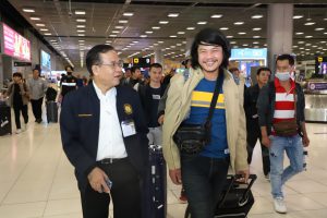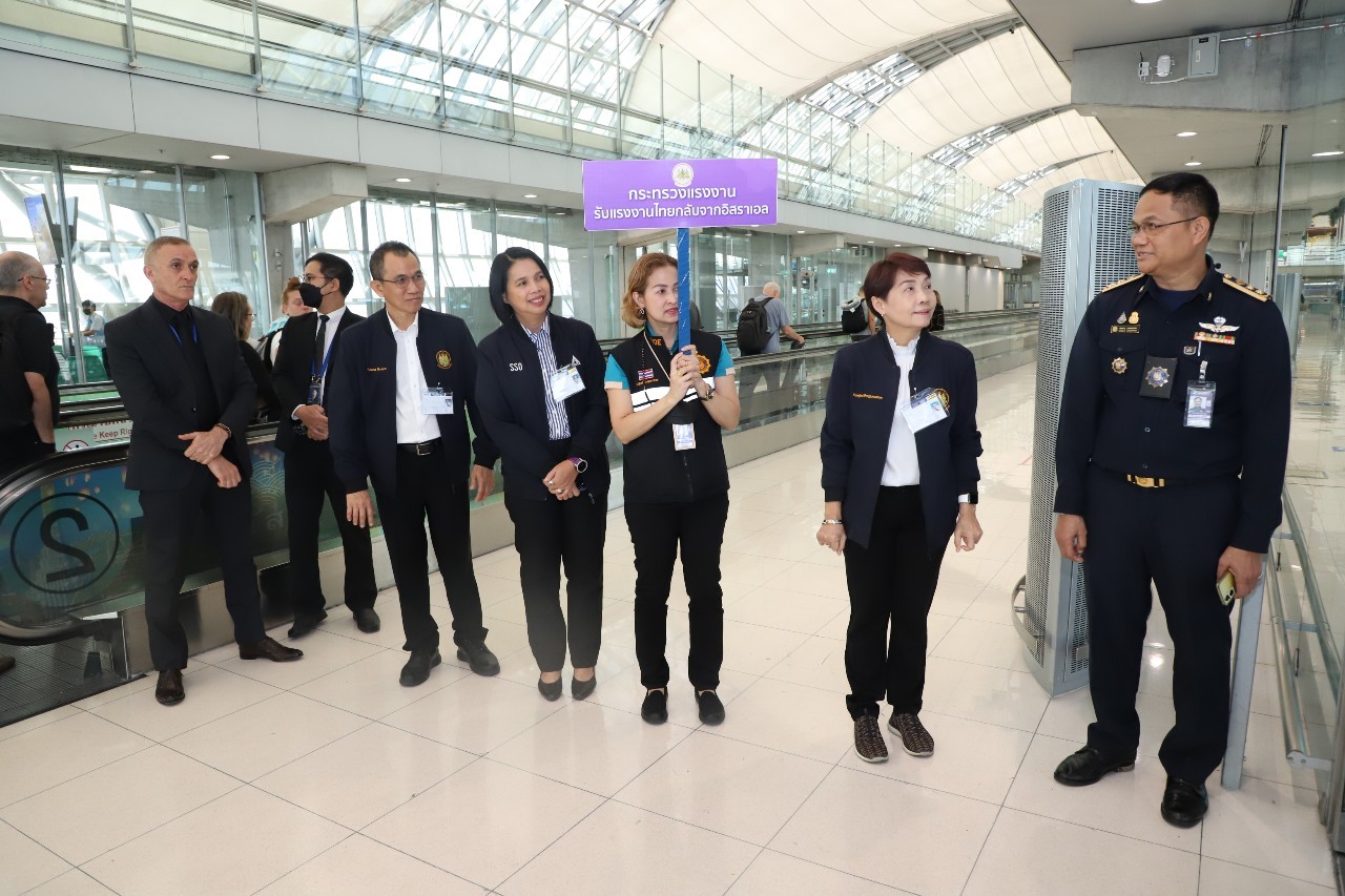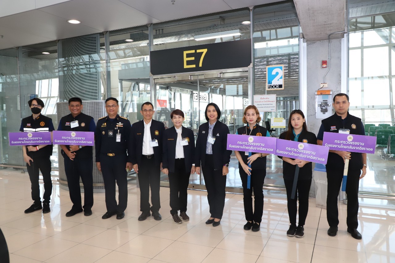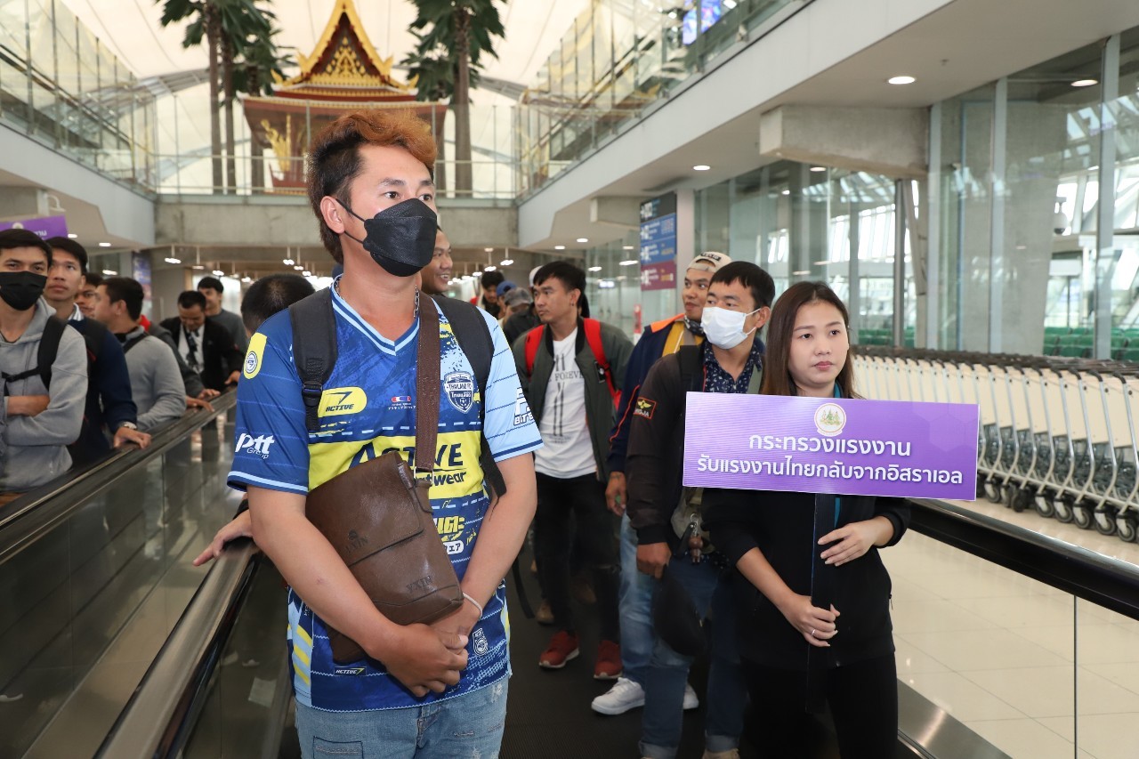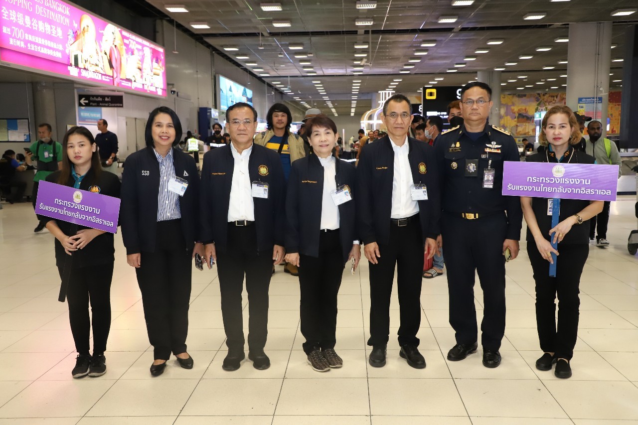 วันที่ 1 พฤศจิกายน 2566 นายไพโรจน์ โชติกเสถียร ปลัดกระทรวงแรงงาน มอบหมายให้ นางสาวกรจิรัฏฐ์ พงจันทร์ศธร ผู้ช่วยปลัดกระทรวงแรงงาน พร้อมด้วยผู้บริหารระดับสูงจากหน่วยงานในสังกัดกระทรวงแรงงาน ให้การต้อนรับและดูแลอำนวยความสะดวกแรงงานไทยที่ได้รับผลกระทบจากความไม่สงบในอิสราเอลและแจ้งความประสงค์เดินทางกลับถึงประเทศไทยที่เดินทางกลับ ณ ท่าอากาศยานสุวรรณภูมิ จังหวัดสมุทรปราการ จำนวน 43 คน รอบเวลา 12.15 น. โดยเที่ยวบิน LY083 สายการบิน ELAL