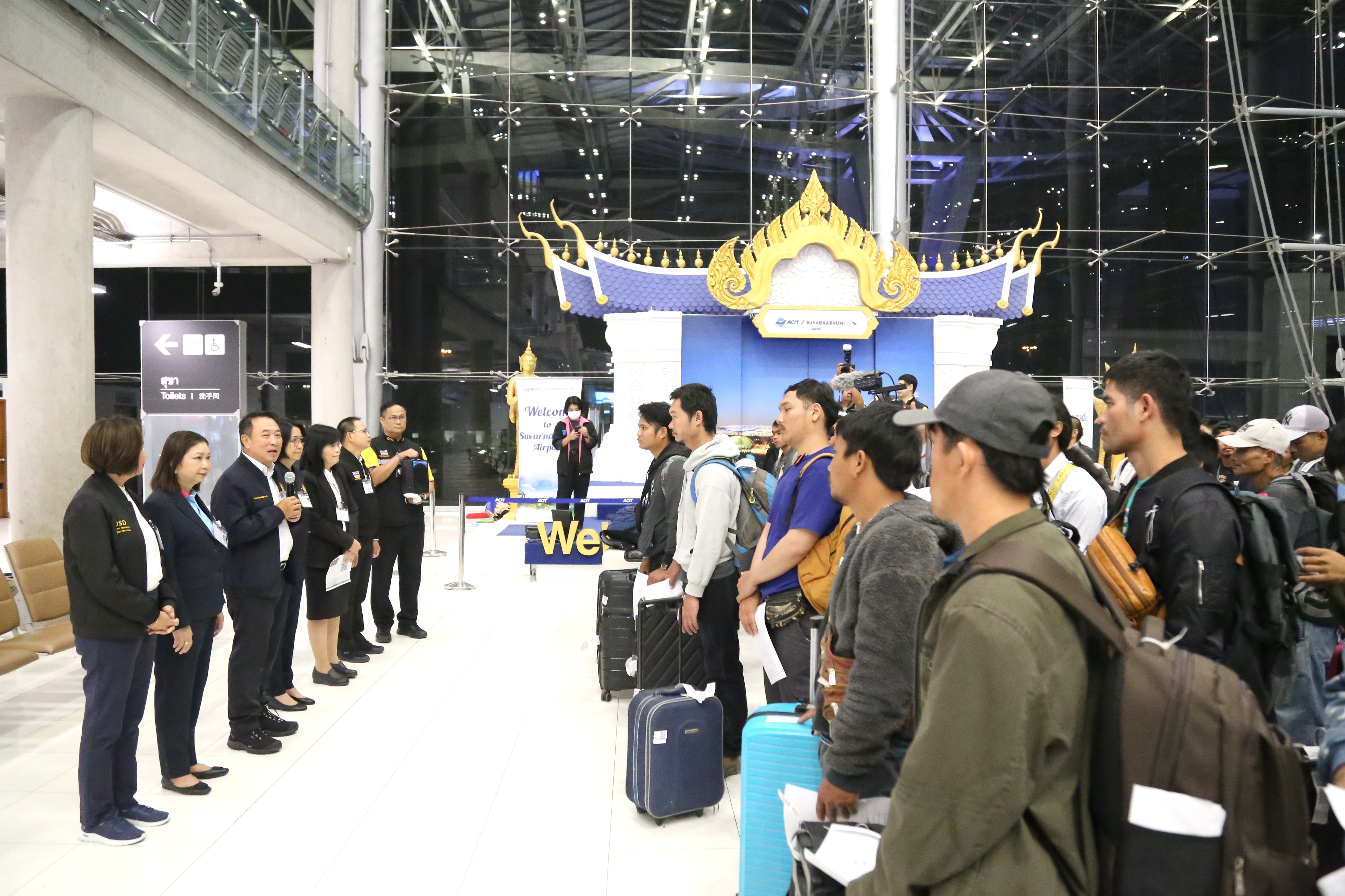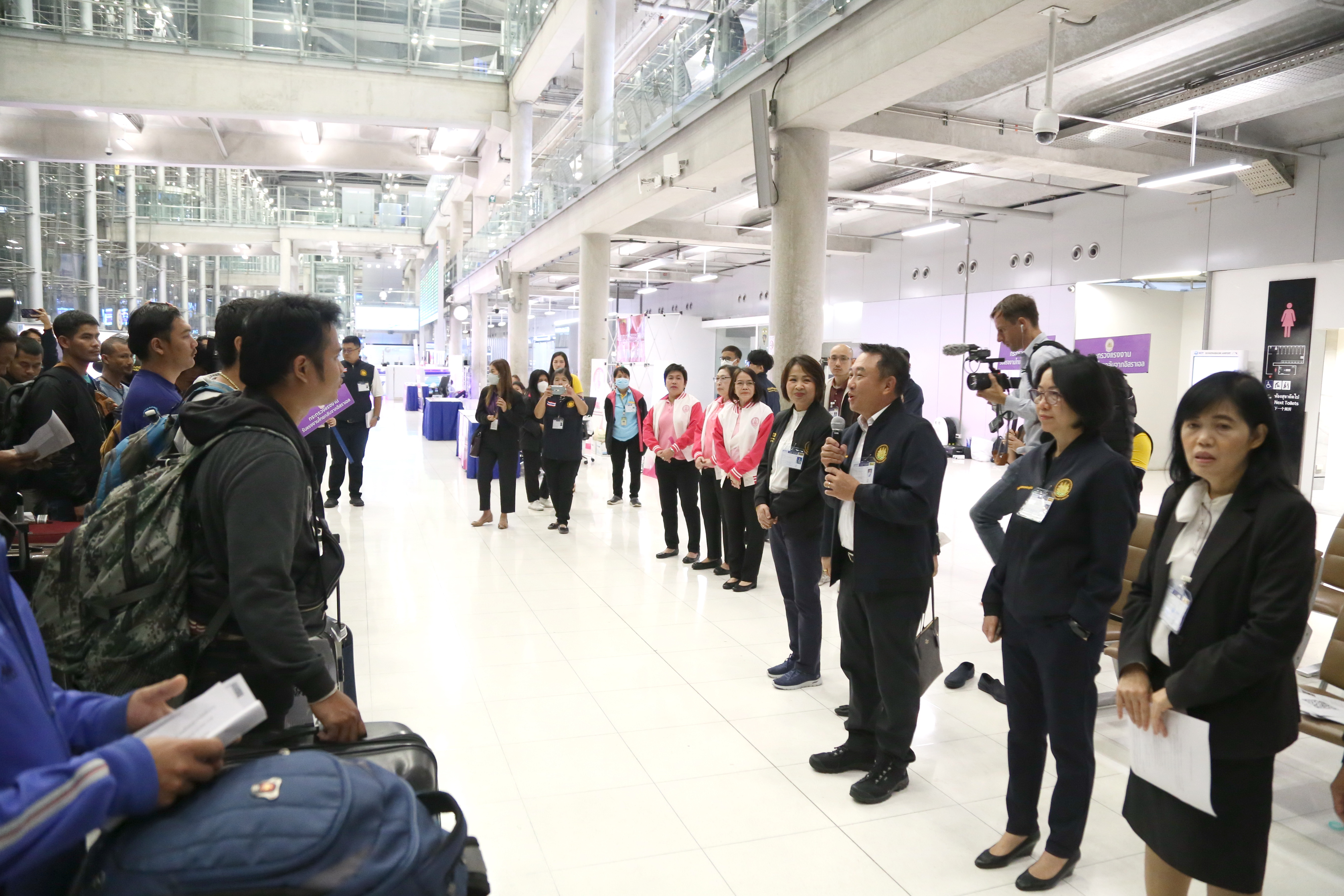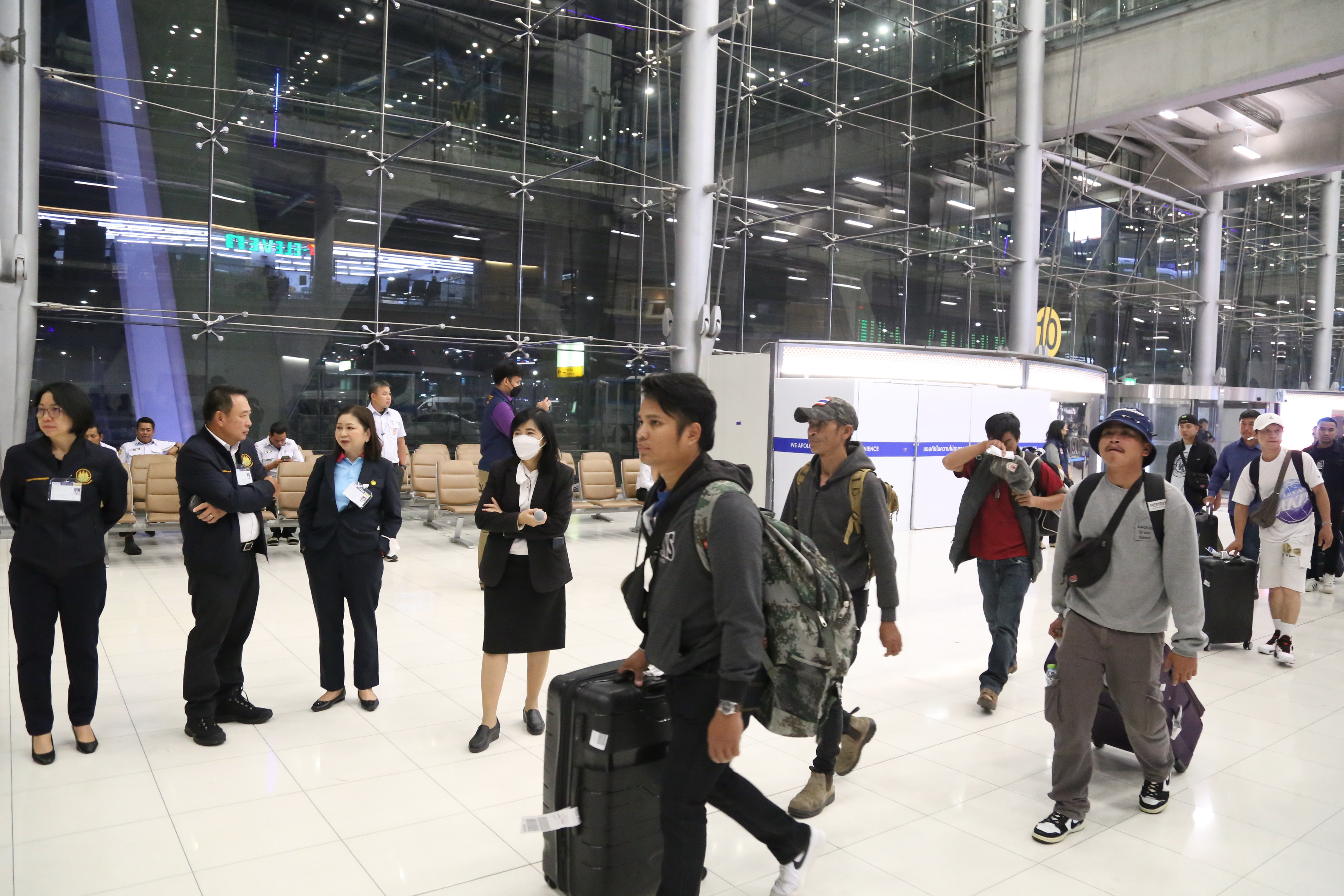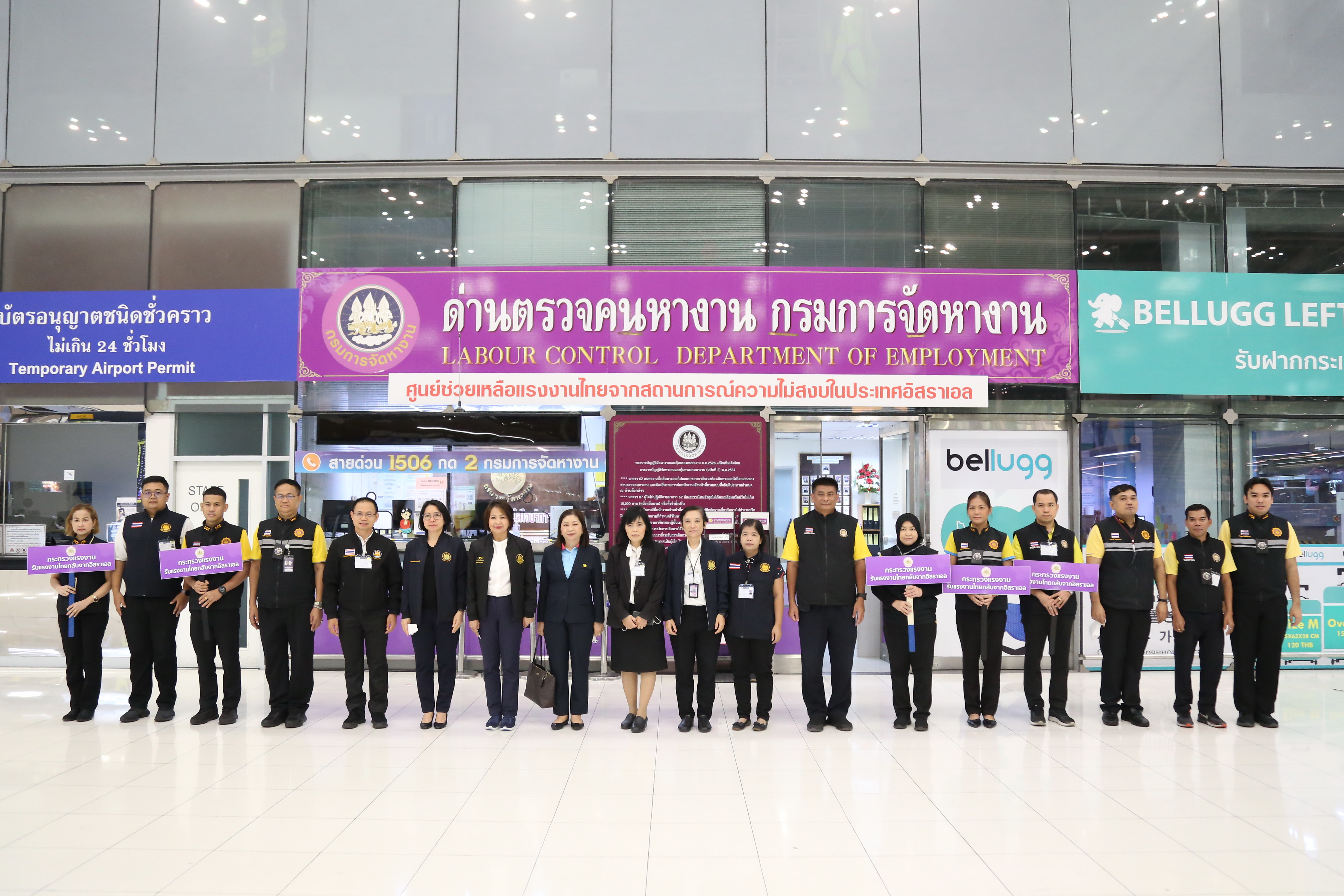 วันที่ 3 พฤศจิกายน 2566 เวลา 04.08 น. นายไพโรจน์ โชติกเสถียร ปลัดกระทรวงแรงงาน มอบหมายให้ นายเดชา พฤกษ์พัฒนรักษ์ ผู้ช่วยปลัดกระทรวงแรงงาน นางชโลบล ขจรผดุงกิตติ ผู้ตรวจราชการกรม กรมการจัดหางาน นางสาวอาภากร ว่องเขตกร ผู้ตรวจราชการกรม กรมพัฒนาฝีมือแรงงาน นางวัชรี มากหวาน ผู้ตรวจราชการกรม กรมสวัสดิการและคุ้มครองแรงงาน พร้อมคณะ และเจ้าหน้าที่ที่เกี่ยวข้อง ต้อนรับและดูแลอำนวยความสะดวกแรงงานไทยที่ได้รับผลกระทบจากความไม่สงบในอิสราเอลและแจ้งความประสงค์เดินทางกลับถึงประเทศไทยด้วยเที่ยวบินของสายการบิน El Al Israel Airlines เที่ยวบินที่ LY085 จำนวน 91 คน ณ ท่าอากาศยานสุวรรณภูมิ จ.สมุทรปราการ