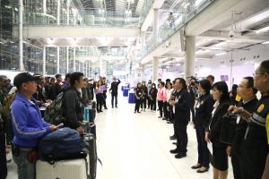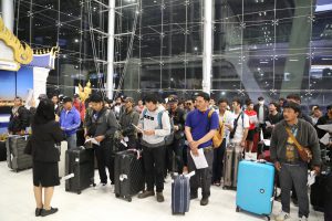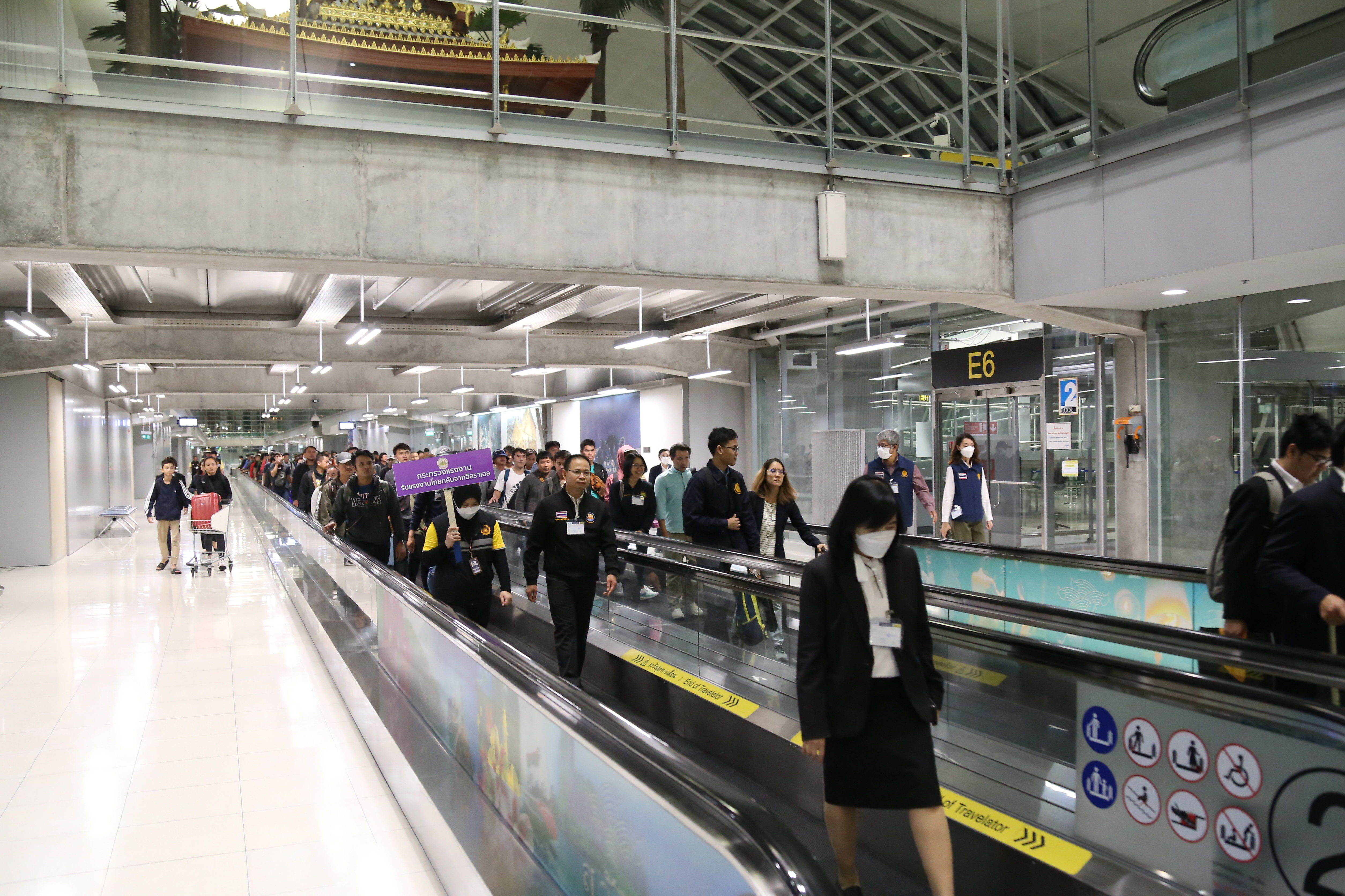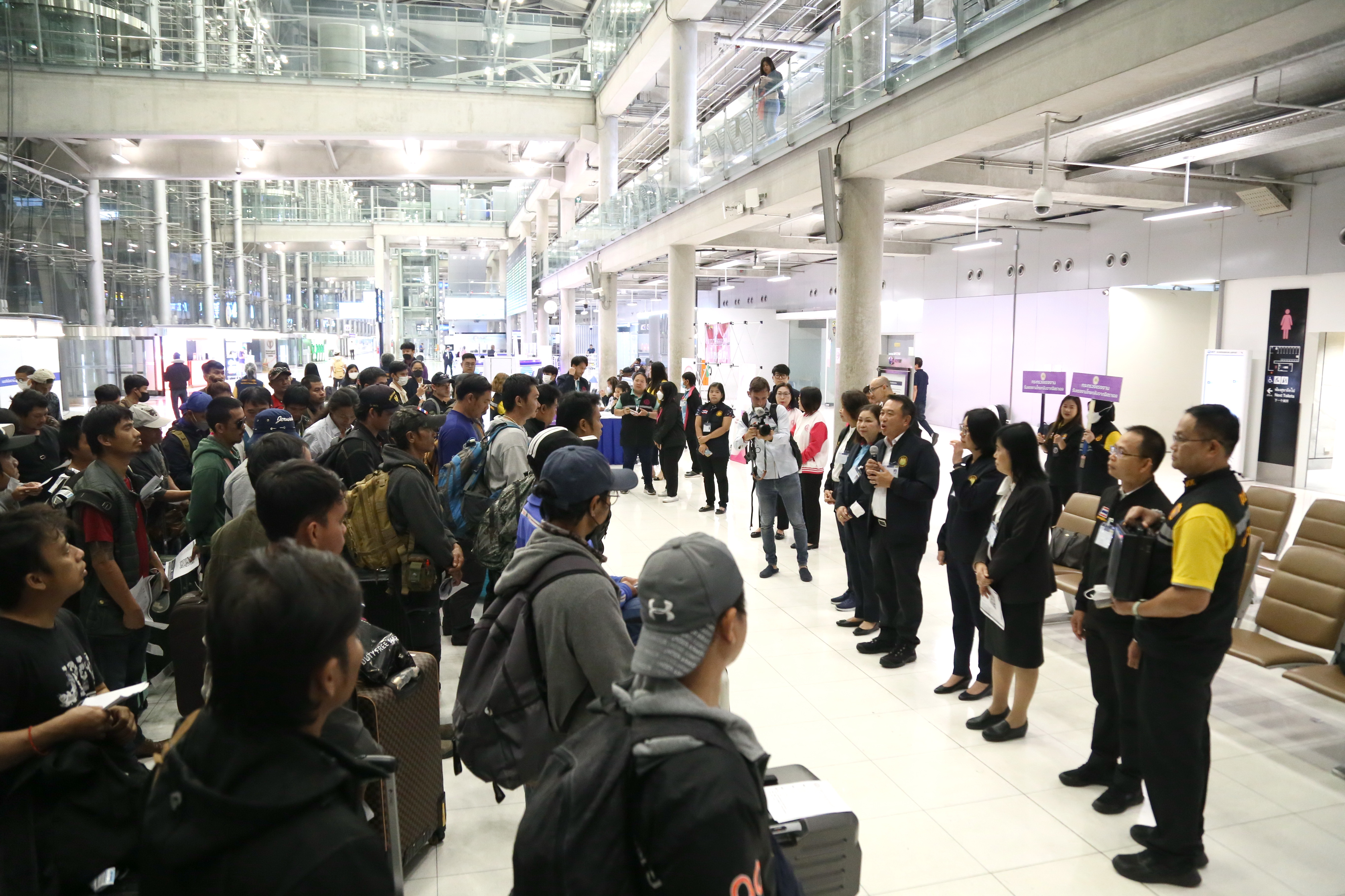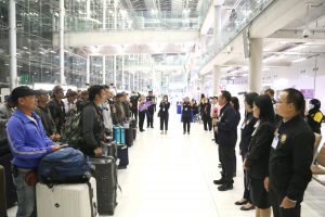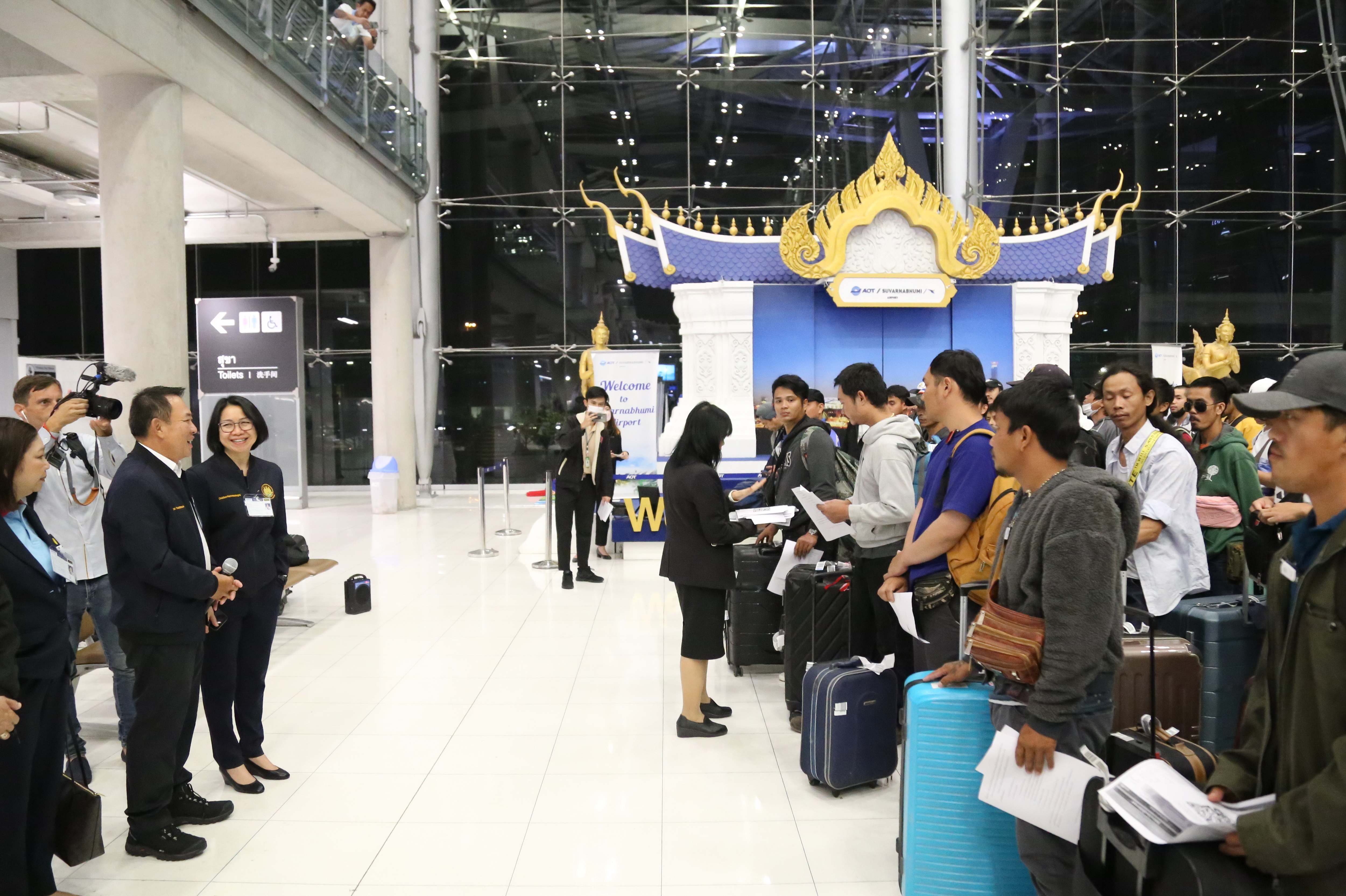 วันที่ 3 พฤศจิกายน 2566 เวลา 04.08 น. นายไพโรจน์ โชติกเสถียร ปลัดกระทรวงแรงงาน มอบหมายให้ นายเดชา พฤกษ์พัฒนรักษ์ ผู้ช่วยปลัดกระทรวงแรงงาน นางชโลบล ขจรผดุงกิตติ ผู้ตรวจราชการกรม กรมการจัดหางาน นางสาวอาภากร ว่องเขตกร ผู้ตรวจราชการกรม กรมพัฒนาฝีมือแรงงาน นางวัชรี มากหวาน ผู้ตรวจราชการกรม กรมสวัสดิการและคุ้มครองแรงงาน พร้อมคณะ และเจ้าหน้าที่ที่เกี่ยวข้อง ต้อนรับและดูแลอำนวยความสะดวกแรงงานไทยที่ได้รับผลกระทบจากความไม่สงบในอิสราเอลและแจ้งความประสงค์เดินทางกลับถึงประเทศไทยด้วยเที่ยวบินของสายการบิน El Al Israel Airlines เที่ยวบินที่ LY085 จำนวน 91 คน ณ ท่าอากาศยานสุวรรณภูมิ จ.สมุทรปราการ
