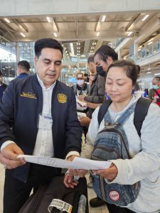 วันที่ 25 ตุลาคม 2566 นายไพโรจน์ โชติกเสถียร ปลัดกระทรวงแรงงาน มอบหมายให้ นายนันทชัย ปัญญาสุรฤทธิ์ ผู้ตรวจราชการกระทรวงแรงงาน ต้อนรับและดูแลอำนวยความสะดวกแรงงานไทยที่ได้รับผลกระทบจากความไม่สงบในอิสราเอลและแจ้งความประสงค์เดินทางกลับถึงประเทศไทย ณ ท่าอากาศยานสุวรรณภูมิ จังหวัดสมุทรปราการ โดยมี ผู้บริหารระดับสูงจากหน่วยงานในสังกัดกระทรวงแรงงาน และหน่วยงานราชการต่างๆ ร่วมอำนวยความสะดวกและแนะนำสิทธิในการช่วยเหลือเยียวยา ณ บริเวณชั้น 2 ประตู 10 อาคารผู้โดยสารขาเข้าระหว่างประเทศ ท่าอากาศยานสุวรรณภูมิ จังหวัดสมุทรปราการ