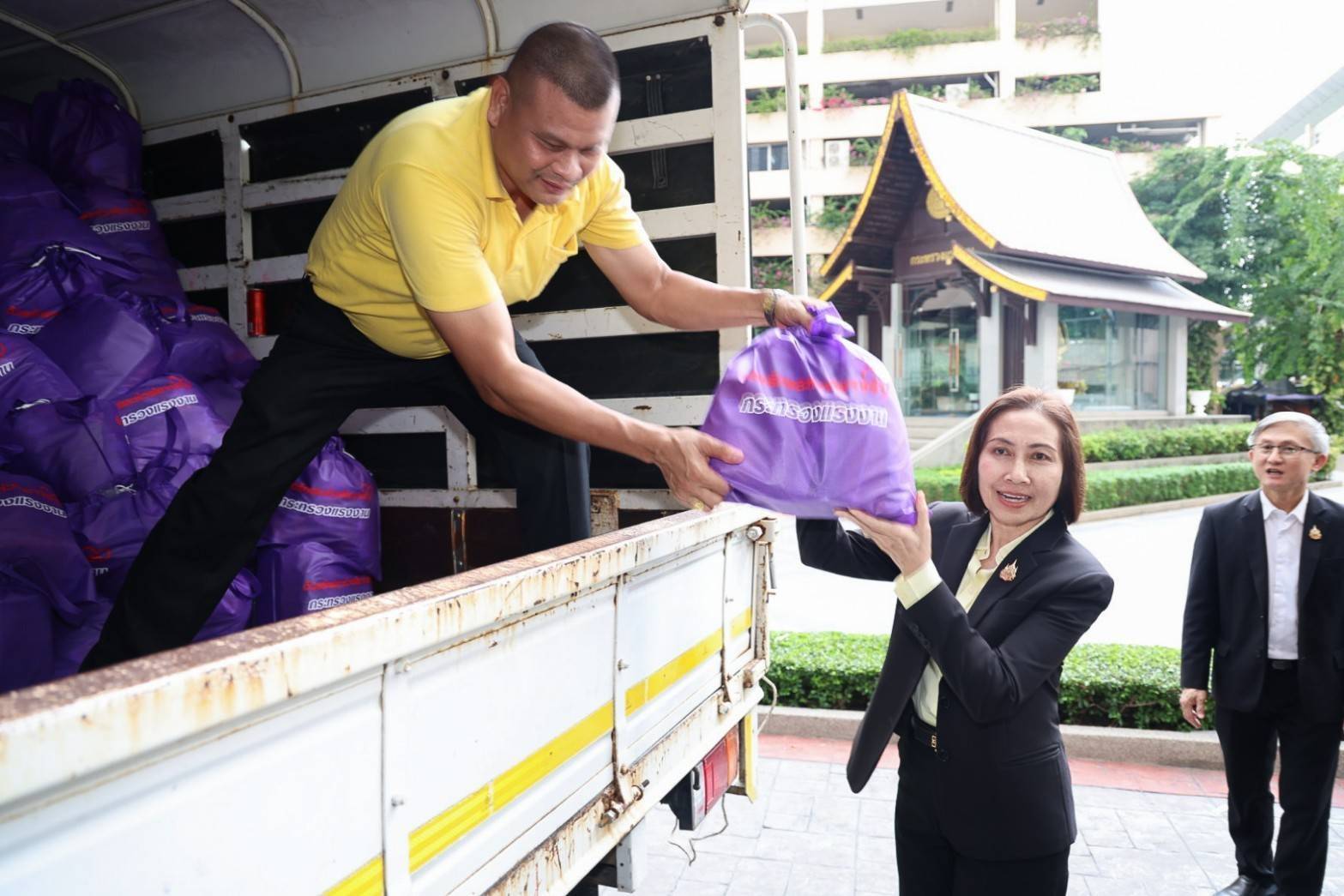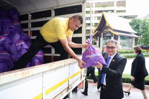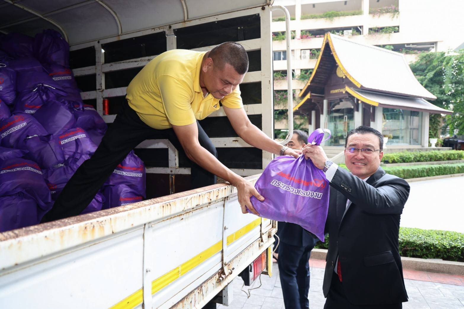 ปลัดกระทรวงแรงงาน กล่าวเพิ่มเติมว่า การมอบถุงยังชีพดังกล่าว เกิดจากความร่วมมือของหน่วยงานในสังกัดกระทรวงแรงงาน และภาคเอกชน ที่ได้ร่วมกันสนับสนุนสิ่งของเครื่องอุปโภคบริโภค เพื่อบรรจุถุงยังชีพนำไปช่วยเหลือผู้ประสบภัยน้ำท่วม 1,000 ชุด โดยถุงยังชีพทั้งหมดกระทรวงแรงงานจะทยอยขนส่งด้วยรถบรรทุกของสำนักงานประกันสังคม ไปยังศูนย์ราชการกระทรวงแรงงานจังหวัด จังหวัดเชียงรายและหนองคาย เพื่อให้หน่วยงานสังกัดกระทรวงแรงงานนำไปช่วยเหลือพี่น้องประชาชนที่ประสบภัยน้ำท่วมในพื้นที่ดังกล่าวต่อไป