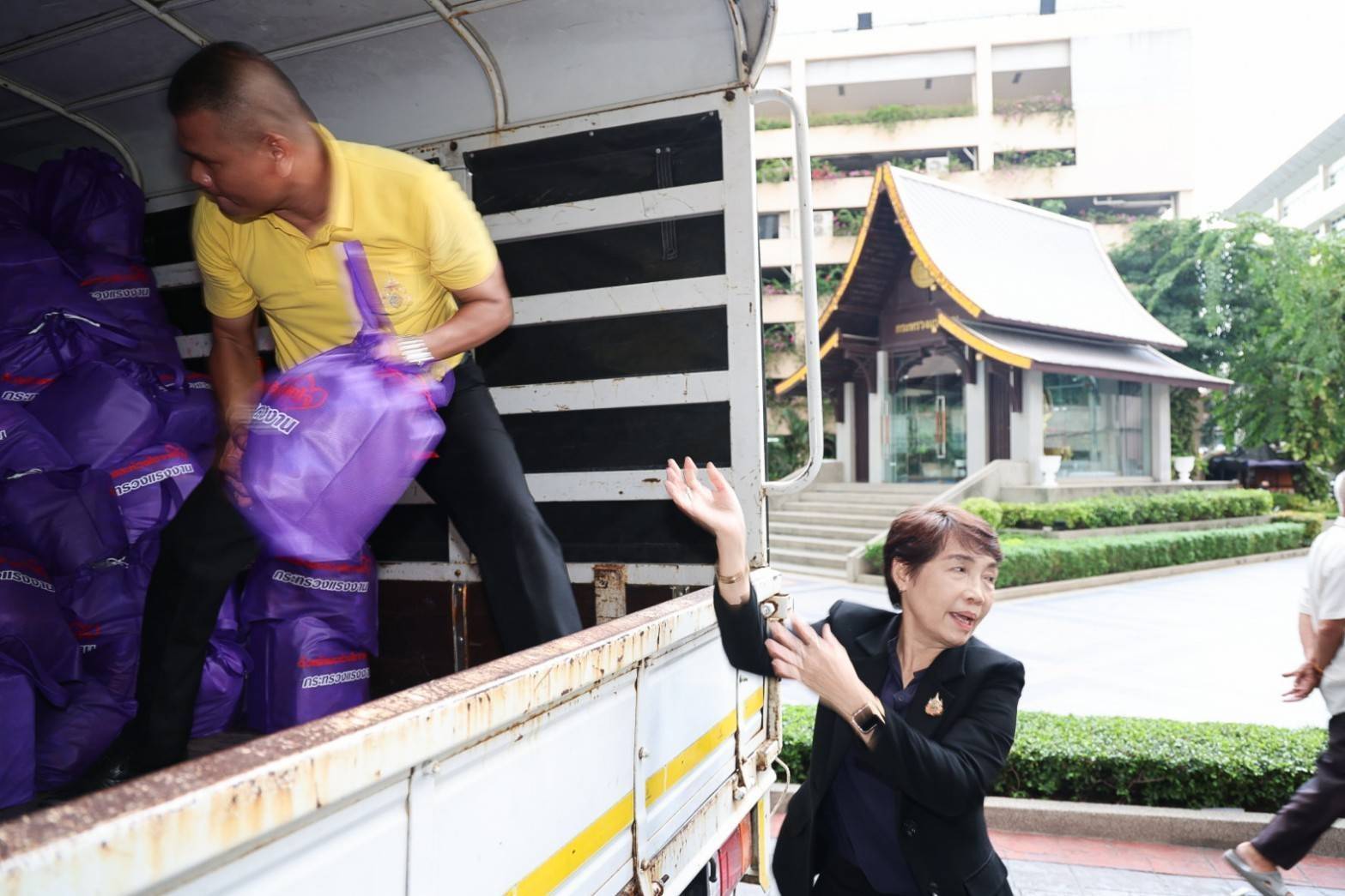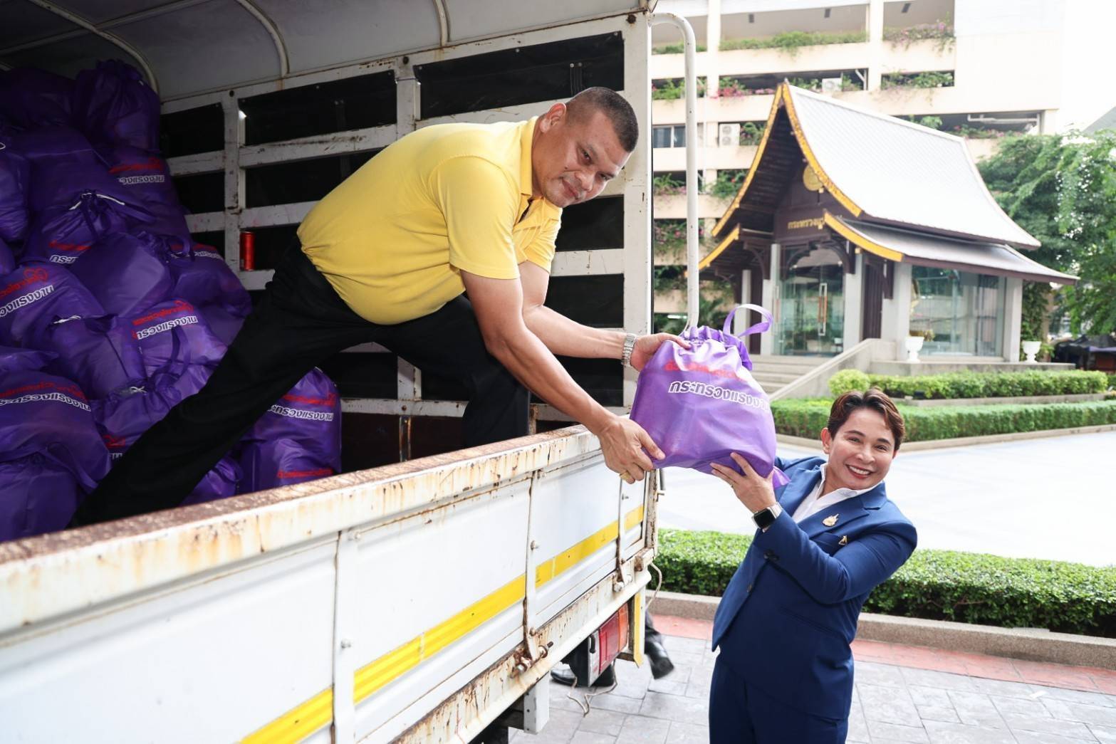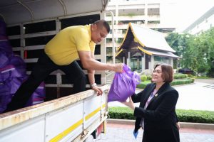 วันที่ 19 กันยายน 2567 เวลา 16.00 น. นายไพโรจน์ โชติกเสถียร ปลัดกระทรวงแรงงาน เป็นประธานส่งมอบถุงยังชีพเพิ่มเติมในชุดที่สอง เพื่อลำเลียงนำไปช่วยเหลือผู้ประสบภัยน้ำท่วมในพื้นที่จังหวัดเชียงราย และจังหวัดหนองคาย โดยมี ผู้บริหารระดับสูงกระทรวงแรงงาน เข้าร่วม ณ บริเวณโถงชั้นล่างอาคารกระทรวงแรงงาน