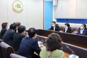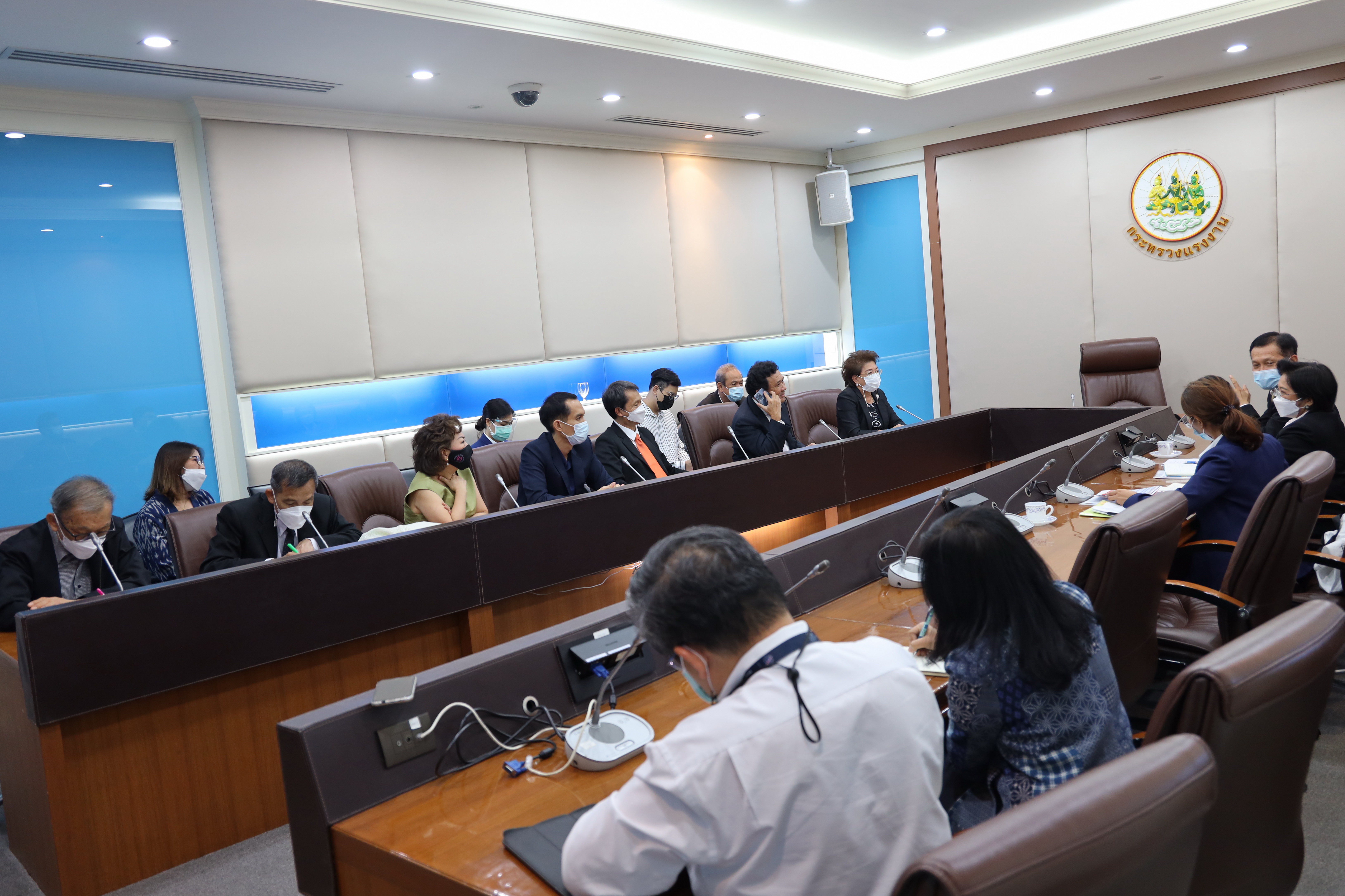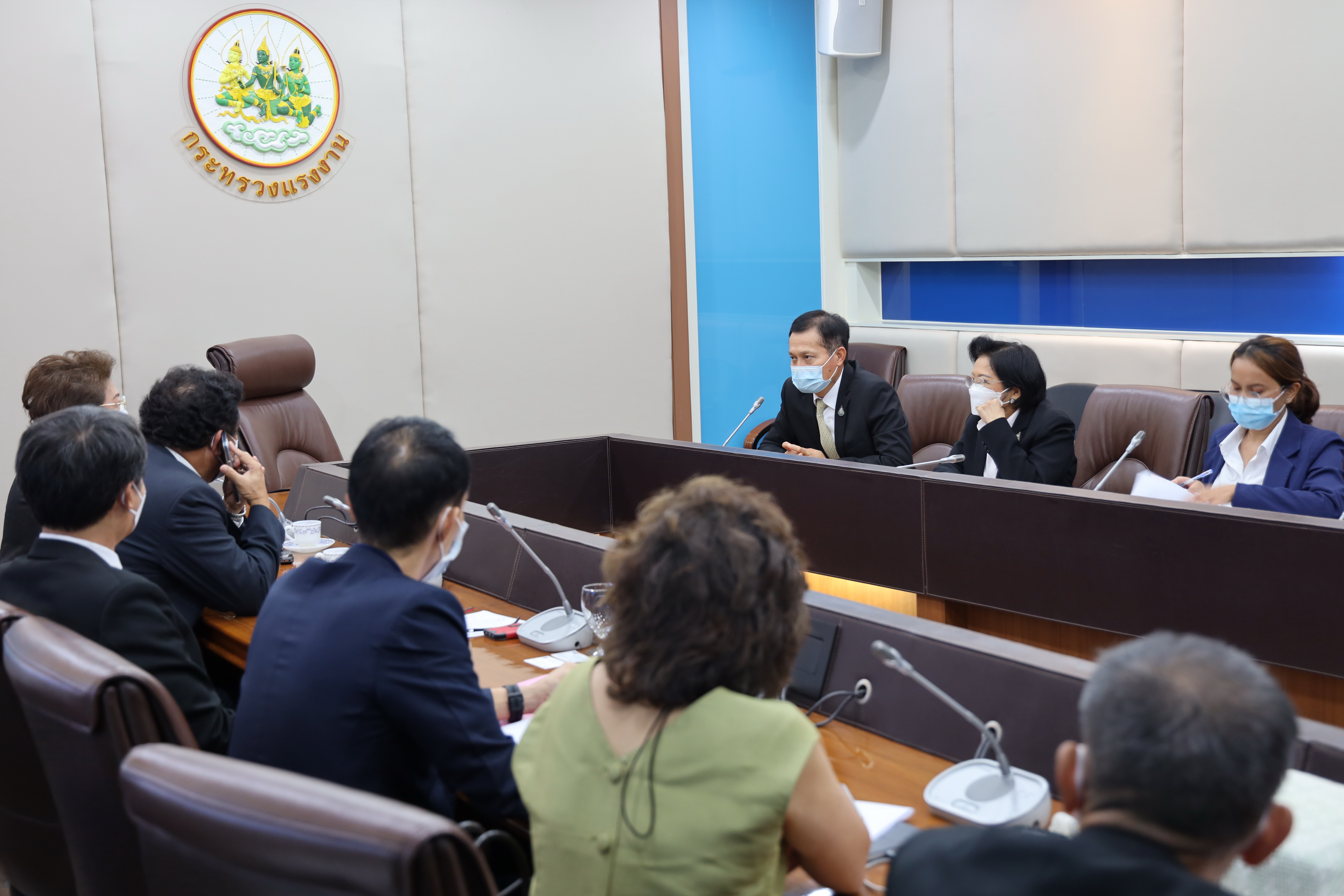 วันที่ 16 มิถุนายน 2564 เวลา 15.00 น. นายสุทธิ สุโกศล ปลัดกระทรวงแรงงาน พร้อมด้วย นางสาวอำพันธ์ ธุววิทย์ รองปลัดกระทรวงแรงงาน ให้การต้อนรับสมาคมนิคมอุตสาหกรรมไทยและพันธมิตร เข้าพบเพื่อหารือเรื่องการเสนอมาตรการเพื่อลดความเสี่ยงของการระบาดโควิด – 19 ในกลุ่มนิคมอุตสาหกรรม ณ ห้องประชุมปลัดกระทรวงแรงงาน ชั้น 7 อาคารกระทรวงแรงงาน