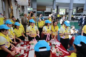 นางนภสร กล่าวว่า ในวันนี้ดิฉันได้รับมอบหมายจากท่านปลัดกระทรวงแรงงานให้มาเยี่ยมชมกิจกรรมจิตอาสาออกหน่วยบริการฝึกอาชีพแก่ประชาชนของกระทรวงแรงงาน ซึ่งกระทรวงแรงงานได้ร่วมกับศูนย์อำนวยการใหญ่จิตอาสาพระราชทาน (ศอญ.) และหน่วยงานต่างๆ จัดขึ้น อาทิ กระทรวงกลาโหม กองทัพอากาศ สำนักงานตำรวจแห่งชาติ ในส่วนของกระทรวงแรงงาน โดยสำนักงานจัดหางานกรุงเทพมหานคร พื้นที่ 8 สถาบันพัฒนาฝีมือแรงงาน 26 นนทบุรี ได้ร่วมออกหน่วยกิจกรรมจิตอาสาสาธิตการฝึกอาชีพและบริการประชาชน ที่โรงเรียนเบญจมราชาลัยและวัดสุทัศนเทพวรารามราชวรมหาวิหาร เขตพระนครแห่งนี้ มีกิจกรรมสาธิตการฝึกอาชีพ ภาคเช้า การร้อยหินมงคล การร้อยสายคล้องแมสจากลูกปัด ศิลปะประดิษฐ์ การปักริบบิ้น ภาคบ่าย การประดิษฐ์พวงกุญแจกระเป๋าหนัง ศิลปะประดิษฐ์ การปักริบบิ้น ซึ่งบรรยากาศของการจัดกิจกรรมฝึกอาชีพในจุดนี้มีพี่น้องประชาชน นักเรียน นักศึกษา เจ้าหน้าที่จากภาคส่วนต่างๆ และชาวบ้านในพื้นที่ใกล้เคียงต่างให้ความสนใจทยอยเข้ามาใช้บริการร่วมฝึกอาชีพกับบูธของกระทรวงแรงงานกันอย่างต่อเนื่อง ซึ่งสามารถนำความรู้ไปต่อยอดในการประกอบอาชีพ สร้างงาน สร้างรายได้ให้กับตนเองและครอบครัว