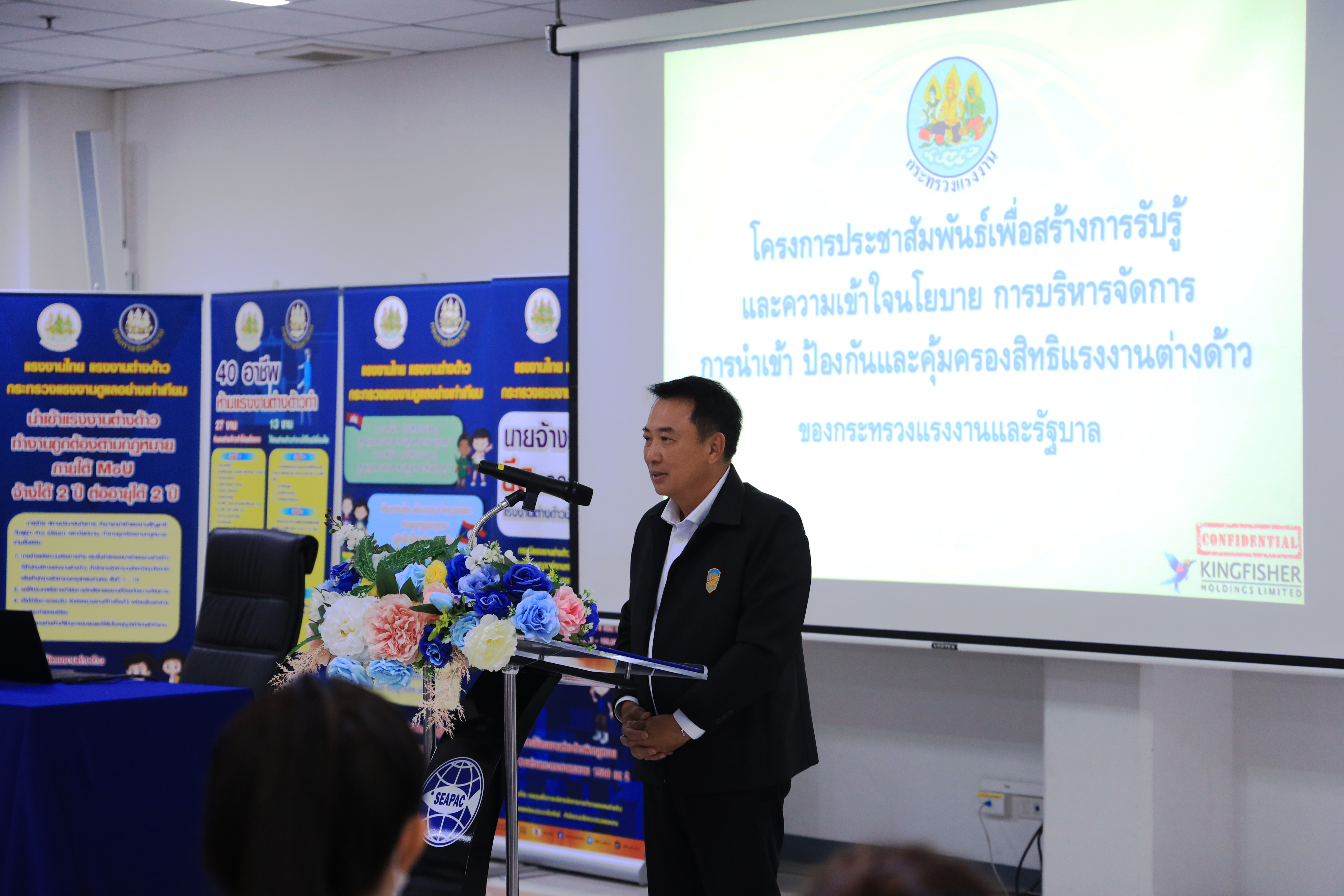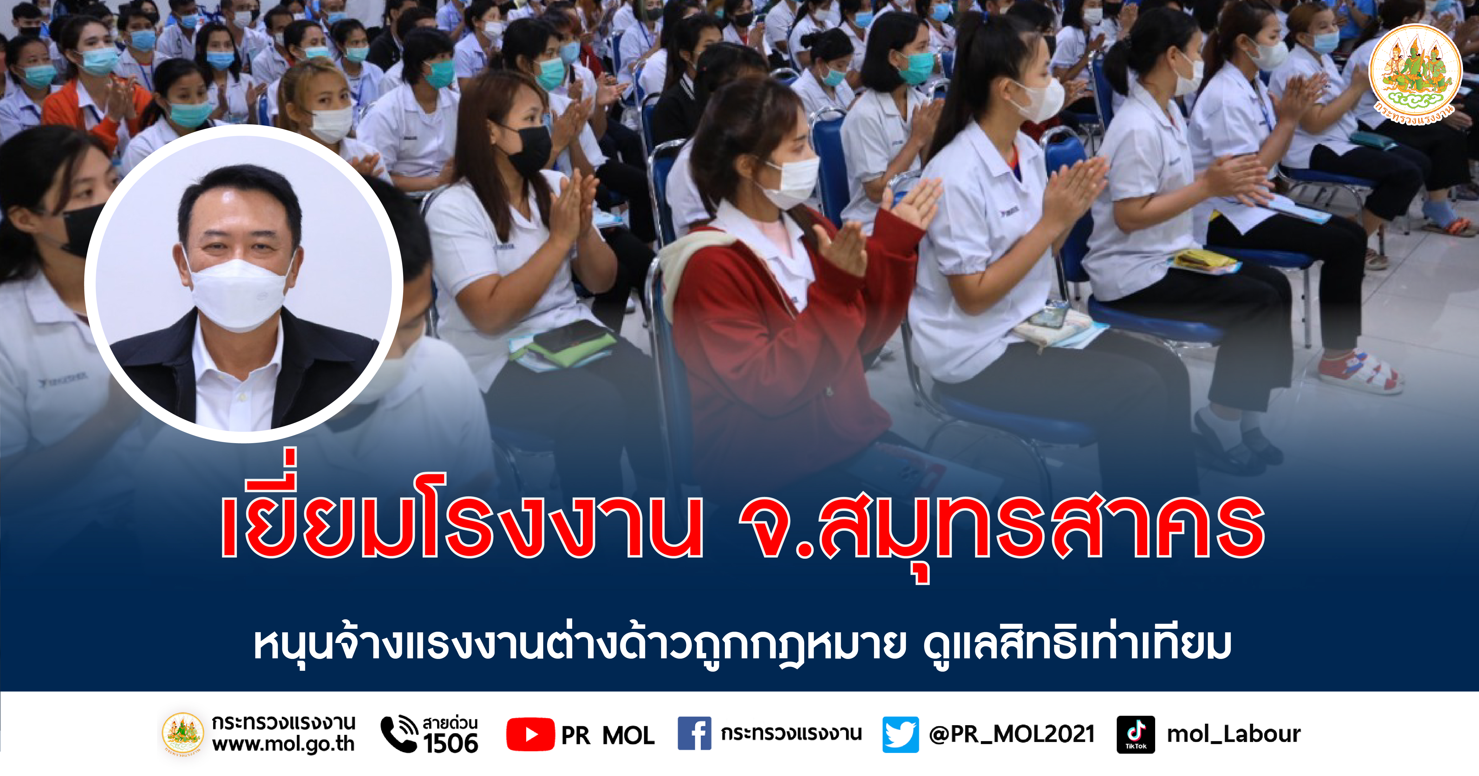 นายเดชา พฤกษ์พัฒนรักษ์ ผู้ช่วยปลัดกระทรวงแรงงาน เปิดเผยว่า รัฐบาลภายใต้การนำของท่าน พล.อ.ประยุทธ์ จันทร์โอชา นายกรัฐมนตรีและและรัฐมนตรีว่าการกระทรวงกลาโหม และกระทรวงแรงงาน โดยท่านสุชาติ ชมกลิ่น รัฐมนตรีว่าการกระทรวงแรงงาน ได้ให้ความสำคัญกับการบริหารจัดการการทำงานของคนต่างด้าวสัญชาติกัมพูชา ลาว เมียนมา และเวียดนาม โดยคำนึงถึงความมั่นคงของประเทศและความปลอดภัยของประชาชนชาวไทย ซึ่งวันนี้ในส่วนของกระทรวงแรงงาน โดยกองเผยแพร่และประชาสัมพันธ์ สำนักงานปลัดกระทรวงแรงงาน ได้นำกิจกรรม นิทรรศการมาออกหน่วยประชาสัมพันธ์เคลื่อนที่ตามโครงการประชาสัมพันธ์เพื่อสร้างการรับรู้ และความเข้าใจนโยบายการบริหารจัดการ การนำเข้า ป้องกันและคุ้มครองสิทธิแรงงานต่างด้าวของกระทรวงแรงงานและรัฐบาล เพื่อสร้างการรับรู้เรื่องสิทธิของแรงงานต่างด้าว ภายใต้กรอบแนวคิด “แรงงานต่างด้าวและแรงงานไทยได้รับการดูแลอย่างเท่าเทียม” โดยมุ่งเน้นการประชาสัมพันธ์สร้างการรับรู้ไปสู่นายจ้าง สถานประกอบกิจการที่จ้างแรงงานต่างด้านในพื้นที่จังหวัดสมุทรสาคร รวมทั้งกำชับให้ส่วนราชการสังกัดกระทรวงแรงงานในพื้นที่ให้ความสำคัญในการบูรณาการในการบริหารจัดการ การนำเข้า ป้องกัน และคุ้มครองสิทธิแรงงานต่างด้าวให้ได้รับการปฏิบัติตามกฎหมายอย่างเท่าเทียมกับแรงงานไทย เช่น อัตราค่าจ้างขั้นต่ำ การรักษาพยาบาล การได้รับสวัสดิการจากสถานประกอบการ อย่างเป็นธรรม เพื่อเป็นการป้องกันการเกิดปัญหาการค้ามนุษย์ในรูปแบบที่เลวร้าย ซึ่งอาจจะส่งผลกระทบต่อการจัดลำดับสถานการณ์การค้ามนุษย์ของประเทศไทยให้อยู่ในระดับที่ต่ำกว่าเดิม