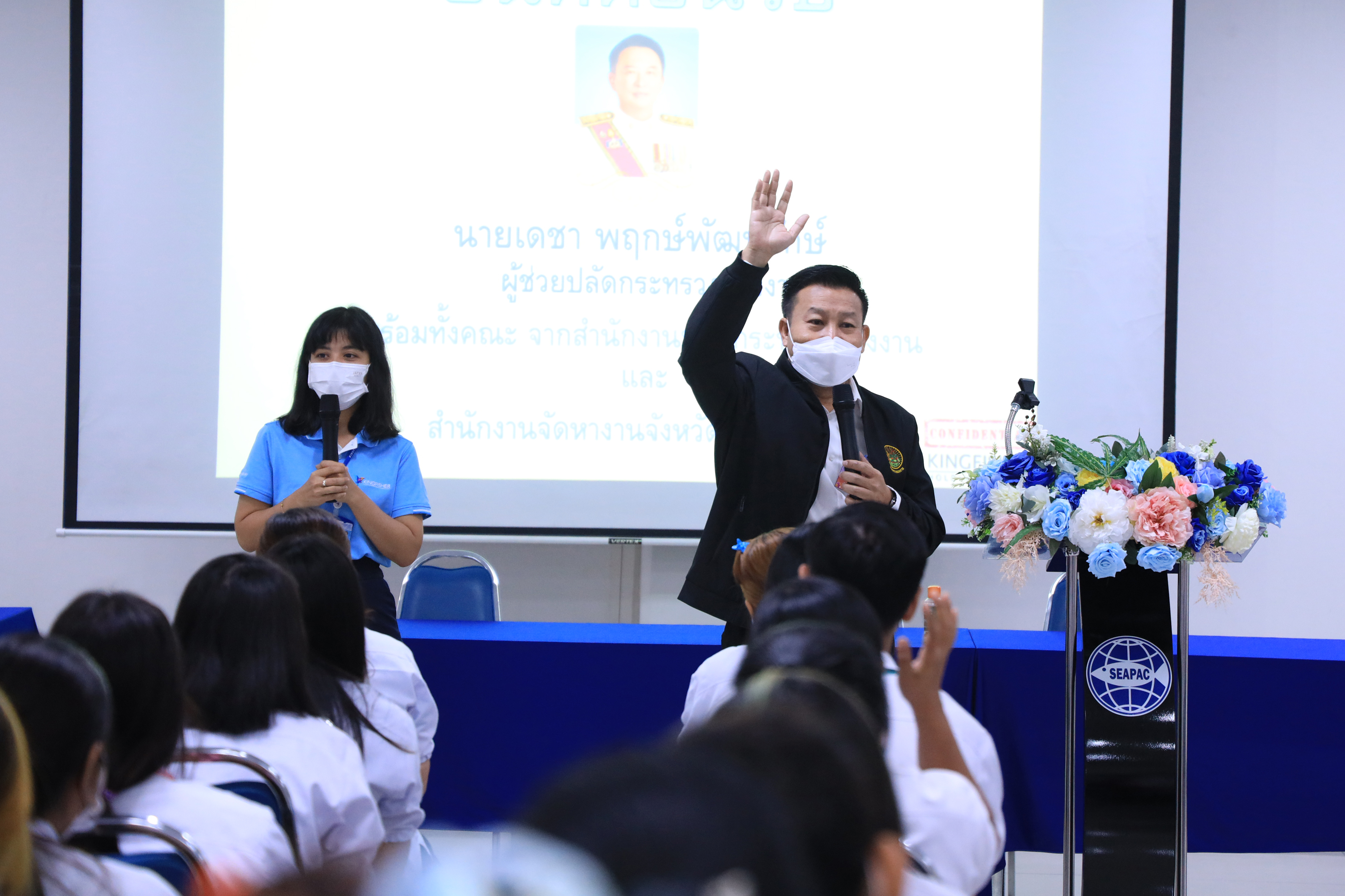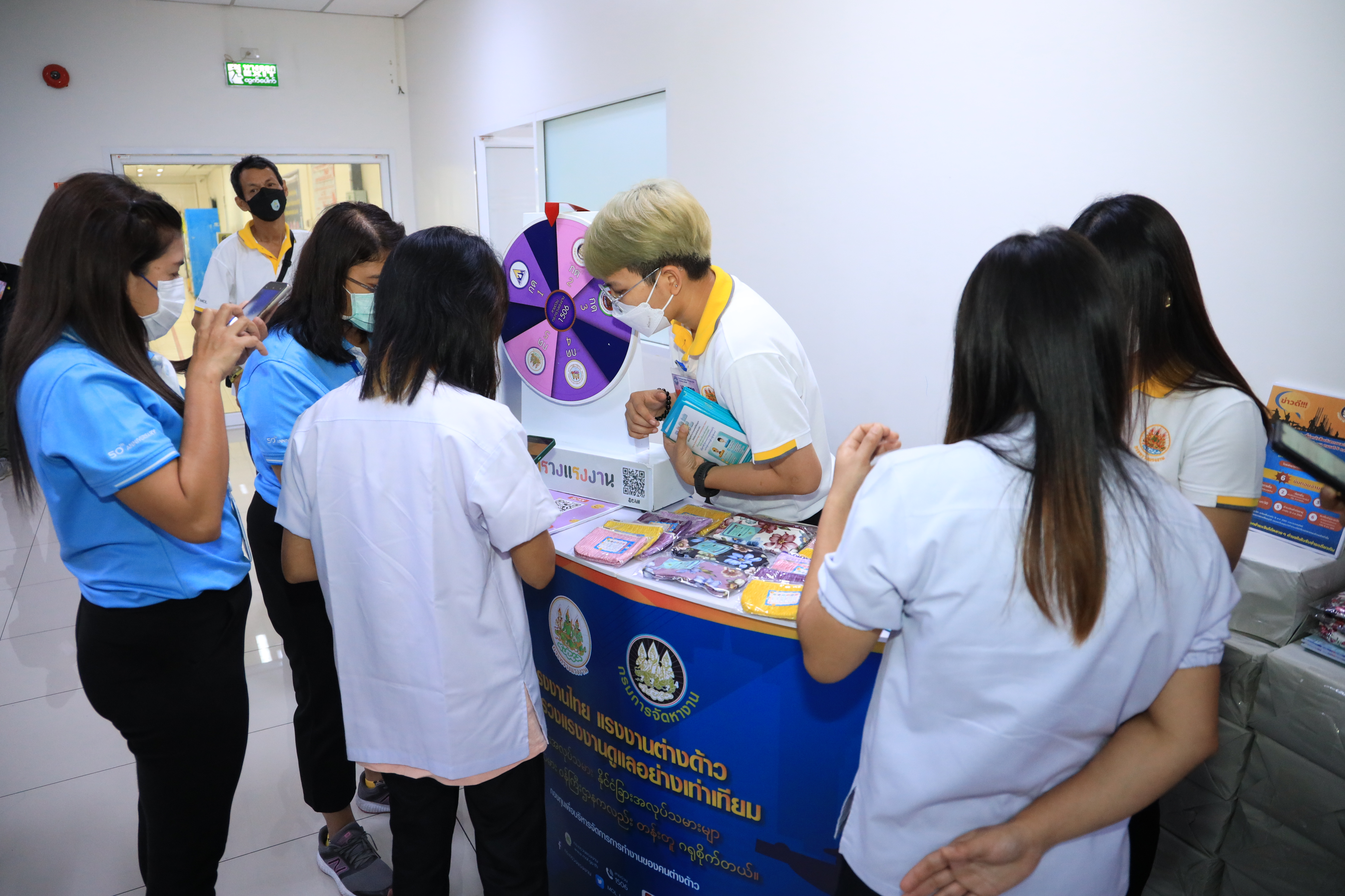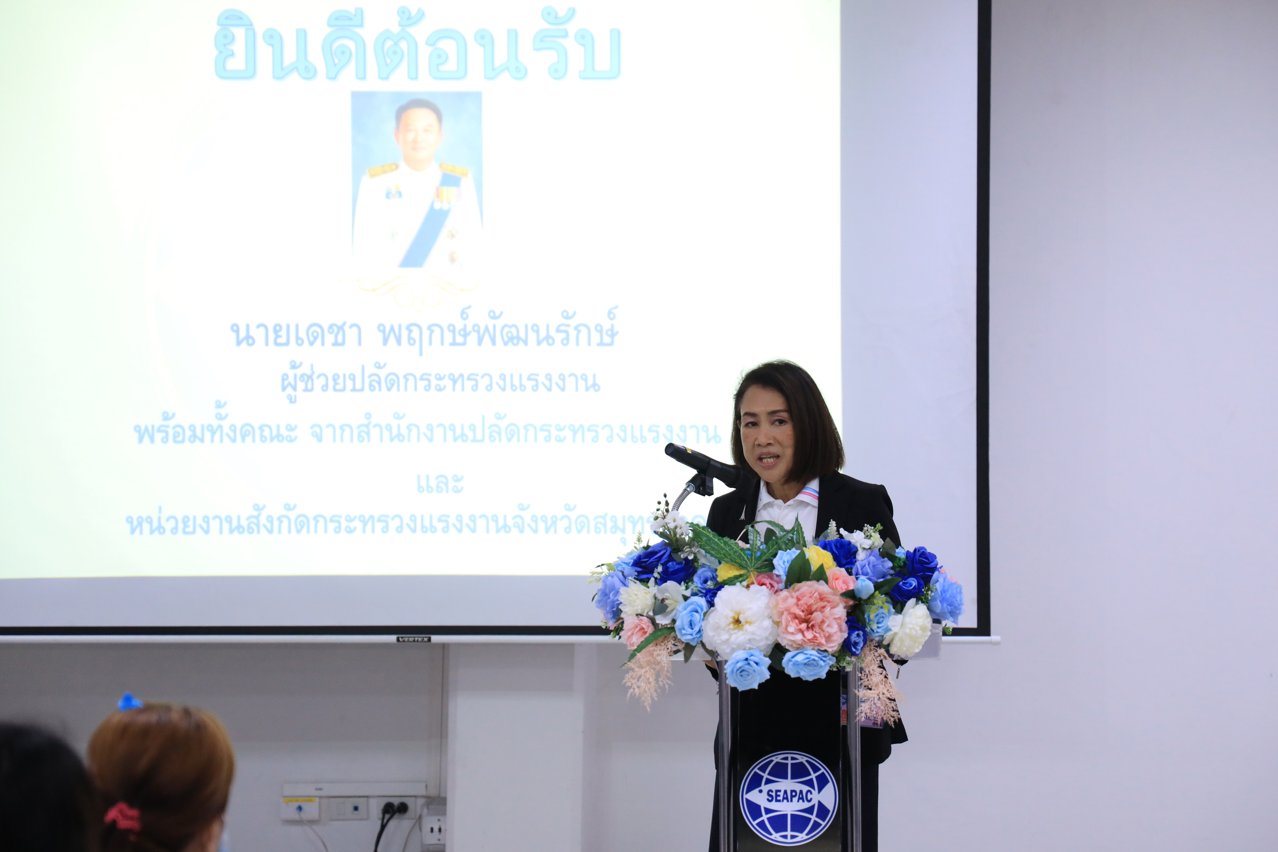 วันที่ 15 กุมภาพันธ์ 2566 เวลา 10.00 น. นายเดชา พฤกษ์พัฒนรักษ์ ผู้ช่วยปลัดกระทรวงแรงงาน เป็นประธานกล่าวเปิดกิจกรรมออกหน่วยประชาสัมพันธ์เคลื่อนที่ (Road Show) ของกระทรวงแรงงาน ตามโครงการประชาสัมพันธ์เพื่อสร้างการรับรู้ และความเข้าใจนโยบายการบริหารจัดการ การนำเข้า ป้องกันและคุ้มครองสิทธิแรงงานต่างด้าวของกระทรวงแรงงานและรัฐบาล เพื่อสร้างการรับรู้เรื่องสิทธิของแรงงานต่างด้าว ภายใต้กรอบแนวคิด “แรงงานต่างด้าวและแรงงานไทยได้รับการดูแลอย่างเท่าเทียม” เพื่อส่งเสริมให้นายจ้างสถานประกอบการจ้างแรงงานต่างด้าวถูกกฎหมาย โดยมี นางสาวพินยุดา แจ่มจันทร์ศรี แรงงานจังหวัดสมุทรสาคร นายอาคม คุ้มหมู่ ผู้อำนวยการกองเผยแพร่และประชาสัมพันธ์ สำนักงานปลัดกระทรวงแรงงาน พร้อมด้วยหัวหน้าส่วนราชการหน่วยงานสังกัดกระทรวงแรงงานจังหวัดสมุทรสาคร ผู้จัดการฝ่ายบุคคลบริษัท เซ้าท์อีสต์เอเชี่ยนแพคเกจจิ้งแอนด์แคนนิ่ง จำกัด และลูกจ้างแรงงานต่างด้าว ร่วมให้การต้อนรับ ณ บริษัท เซ้าท์อีสต์เอเชี่ยนแพคเกจจิ้งแอนด์แคนนิ่ง จำกัด ต.นาดี อ.เมืองสมุทรสาคร จ.สมุทรสาคร ซึ่งเป็นสถานประกอบกิจการประเภทแปรรูปอาหารทะเล ปัจจุบันมีลูกจ้าง จำนวน 3,500 คน เป็นคนไทย 1,000 คน ต่างด้าวสัญชาติเมียนมา จำนวน 2,500 คน