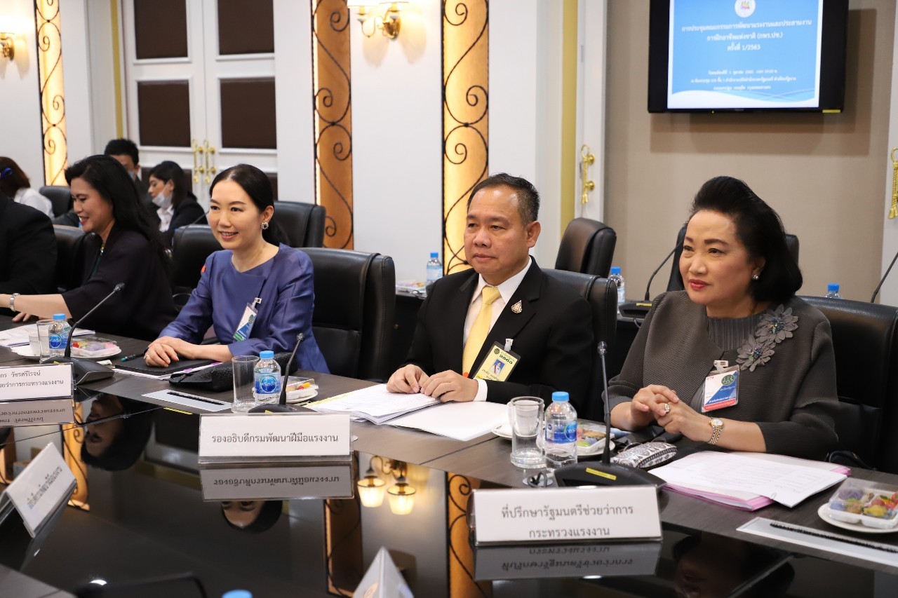 วันที่ 1 ตุลาคม 2563 ศาสตราจารย์นฤมล ภิญโญสินวัฒน์ รัฐมนตรีช่วยว่าการกระทรวงแรงงาน เข้าร่วมการประชุมคณะกรรมการพัฒนาแรงงานและการประสานงานการฝึกอาชีพแห่งชาติ (กพร.ปช.) ครั้งที่ 1/2563 ณ ห้องประชุม 109 ชั้น 1 สำนักงานปลัดนายกรัฐมนตรี ทำเนียบรัฐบาล เพื่อรับทราบการดำเนินงานของคณะอนุกรรมการที่อยู่ภายใต้คณะกรรมการพัฒนาแรงงานและประสานงานการฝึกอาชีพแห่งชาติ (กพร.ปช.) รวมถึงร่วมพิจารณาแนวทางการจัดทำแผนพัฒนากำลังคนรองรับอุตสาหกรรมเป้าหมาย S-Curve ปี พ.ศ. 2564-2565 ของหน่วยงานที่มีภารกิจด้านการจัดการศึกษาและการฝึกอบรมของส่วนราชการ ตลอดจนแนวทางการพัฒนาอาชีพคนพิการตามพระราชบัญญัติส่งเสริมและพัฒนาคุณภาพชีวิตคนพิการ พ.ศ. 2550 และที่แก้ไขเพิ่มเติม (ฉบับที่ 2) พ.ศ. 2556 และกองทุนส่งเสริมและพัฒนาคุณภาพชีวิตคนพิการ โดยมีพลเอก ประวิตร วงษ์สุวรรณ รองนายกรัฐมนตรี เป็นประธานการประชุม โดยกล่าวว่า กพร.ปช มีหน้าที่กำหนดนโยบายและแนวทางในการพัฒนาแรงงานรวมถึงประสานงานการฝึกอาชีพของผู้อยู่ในกำลังแรงงานทุกหน่วยงานทั้งภาครัฐและเอกชน ให้สอดคล้องกับนโยบายของรัฐ ยุทธศาสตร์ชาติ และแผนพัฒนาเศรษฐกิจแห่งชาติ ตลอดจนเสนอแนวทางการแก้ไขปัญหาและอุปสรรคเกี่ยวกับการพัฒนาแรงงานและประสานงานการฝึกอาชีพ โดยเฉพาะการเพิ่มทักษะด้านภาษาเพื่อการสื่อสาร เพื่อให้เกิดการผลักดันการไปทำงานกับต่างประเทศ รวมถึงให้กระทรวงแรงงานเพิ่มการบูรณาการของทุกกระทรวง โดยเฉพาะกระทรวงที่ต้องการใช้แรงงาน เพื่อให้ทราบจำนวนความต้องการด้านแรงงานที่แท้จริง
