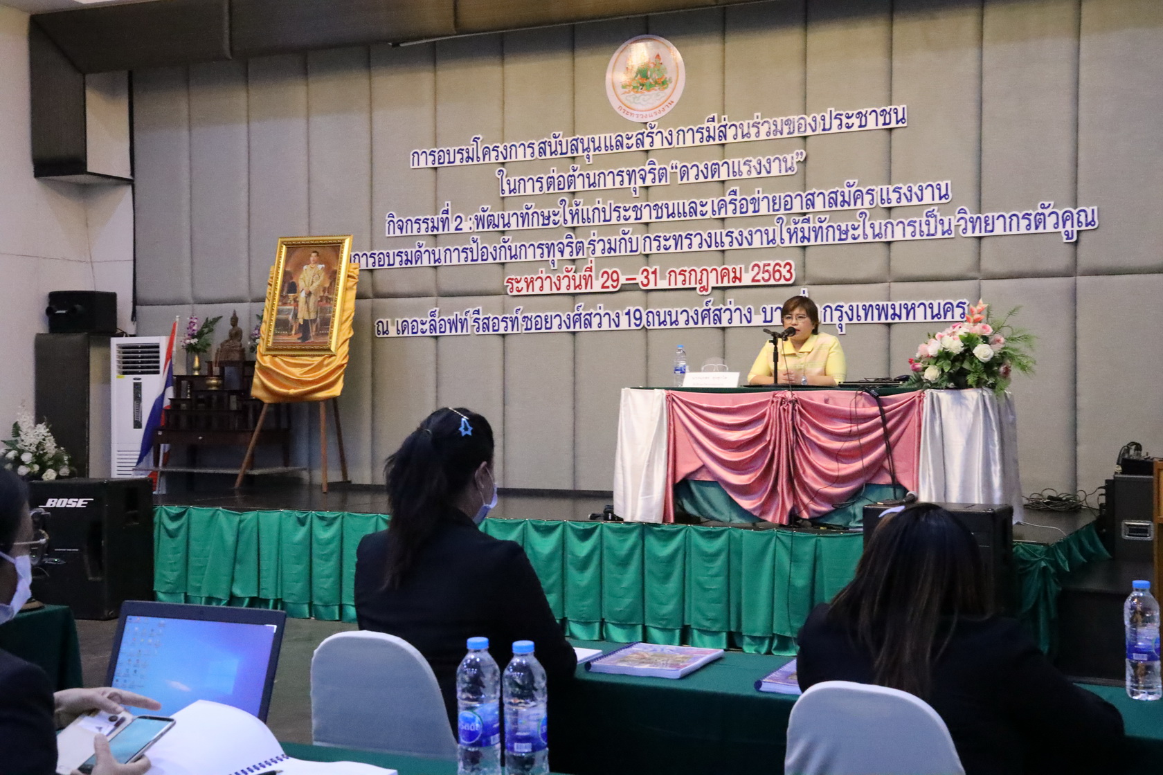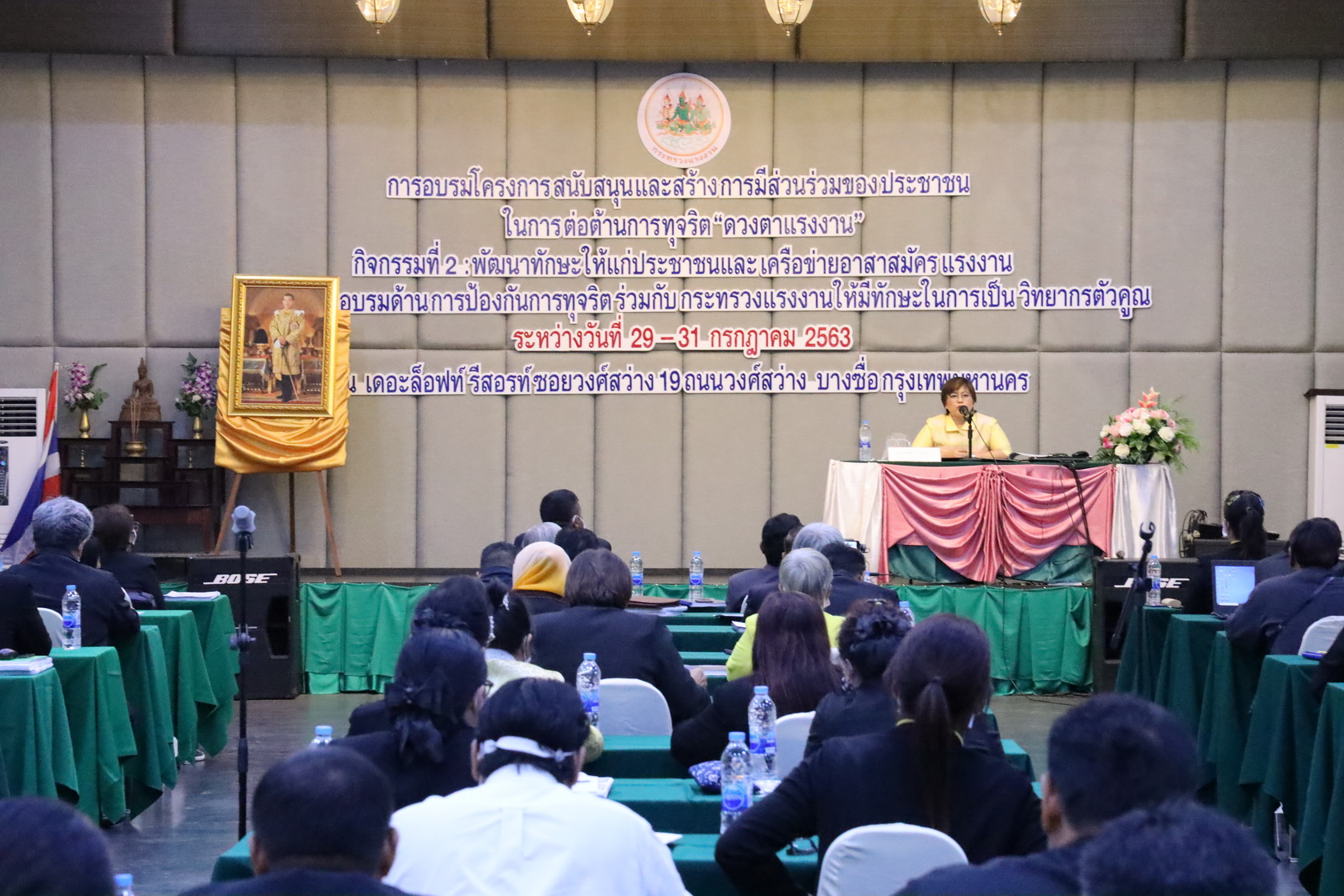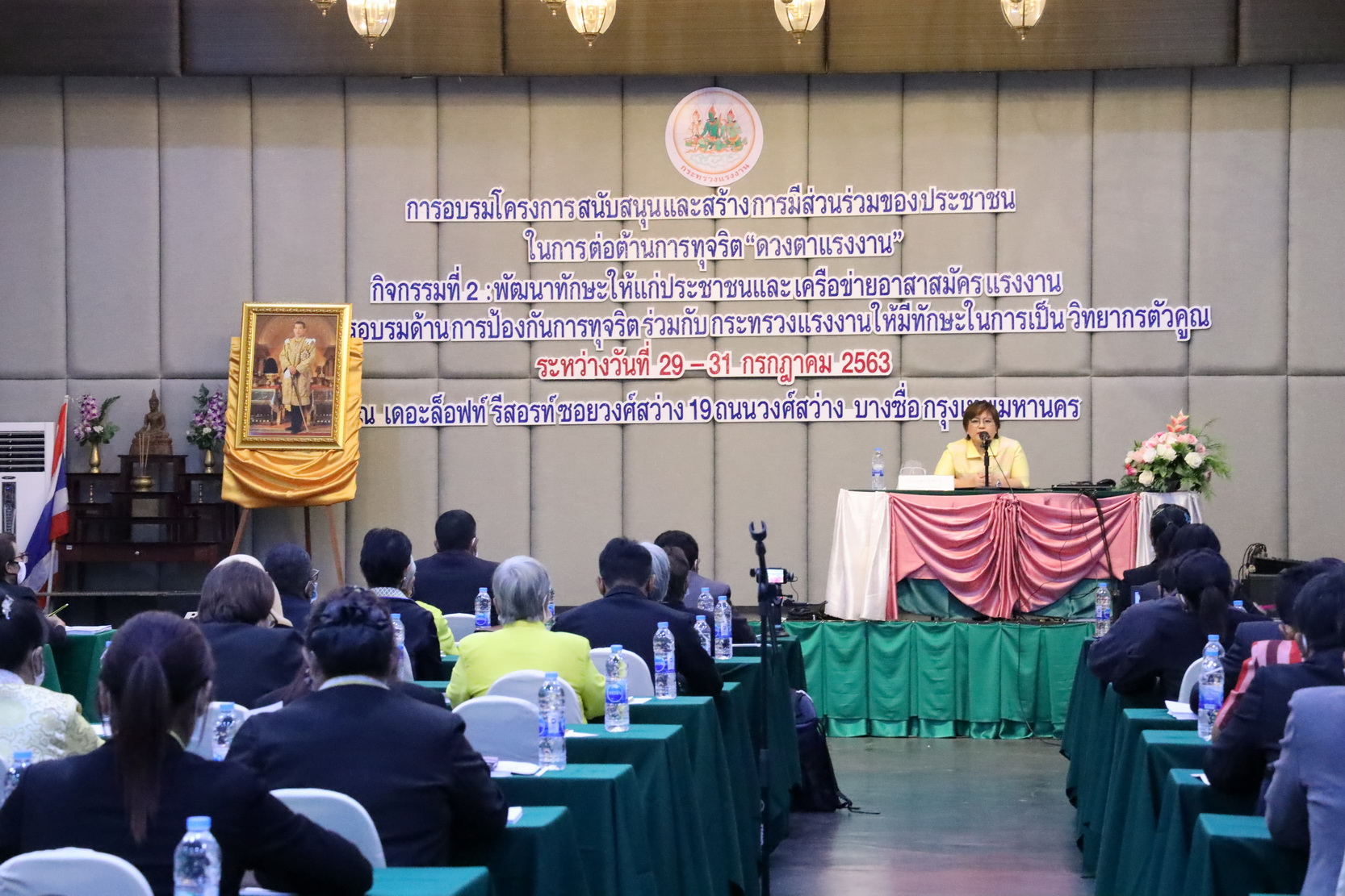 วันที่ 29 กรกฎาคม 2563 เวลา 08.30 น. นายสุทธิ สุโกศล ปลัดกระทรวงแรงงาน มอบหมายให้ นางนภสร ทุ่งสุกใส ที่ปรึกษาวิชาการแรงงาน เป็นประธานกล่าวเปิดการอบรมโครงการสนับสนุนและการสร้างการมีส่วนร่วมของประชาชนในการต่อต้านการทุจริต “ดวงตาแรงงาน” กิจกรรมที่ 2: พัฒนาทักษะให้แก่ประชาชนและเครือข่ายอาสาสมัครแรงงานที่ผ่านการอบรมด้านการป้องกันการทุจริตร่วมกับกระทรวงแรงงาน ให้มีทักษะการเป็นวิทยากรตัวคูณ ณ ห้องประชุมแพรวา เดอะ ล็อฟท์ รีสอร์ท โดยกล่าวว่า การจัดอบรมในครั้งนี้นับเป็นโอกาสที่ดีของกระทรวงแรงงานในการสร้างกลไกสำคัญ เพื่อร่วมกันขับเคลื่อนงานพัฒนาเครือข่ายภาคประชาชนให้ครอบคลุมทั่วประเทศในการประชาสัมพันธ์ เฝ้าระวัง และป้องกันการทุจริต ตลอดจนปลูกจิตสำนึกให้กับประชาชนในพื้นที่ เพี่อสร้างความตระหนักรู้ในการรักษาผลประโยชน์ของชาติ โดยมุ่งหวังให้การทุจริตในสังคมไทยหมดสิ้นไป