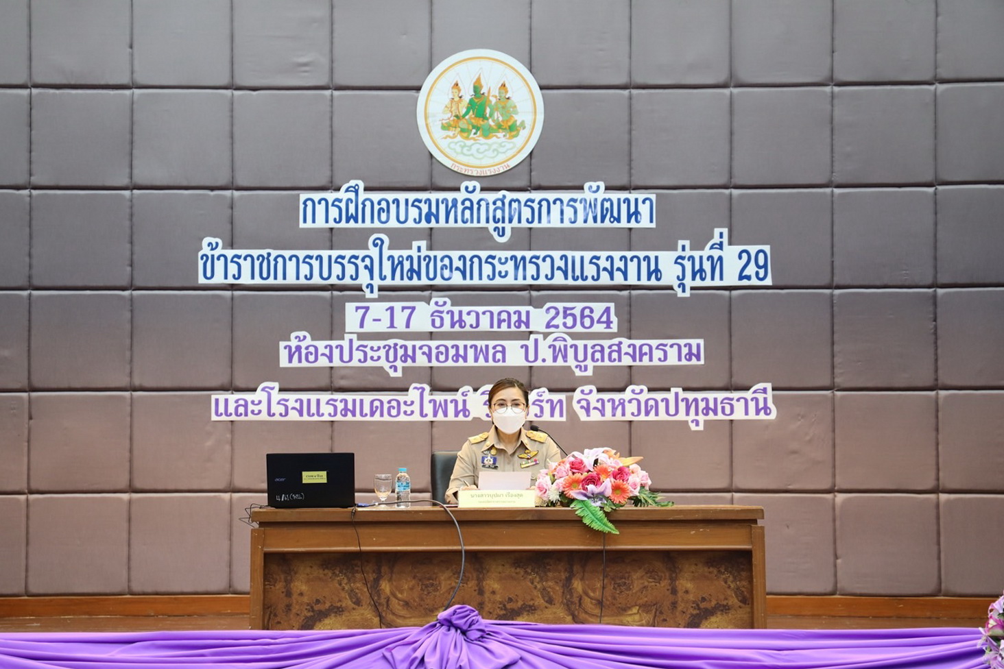 วันที่ 7 ธันวาคม 2564 นางสาวบุปผา เรืองสุด รองปลัดกระทรวงแรงงาน เป็นประธานในพิธีเปิดฝึกอบรมหลักสูตรพัฒนาข้าราชการบรรจุใหม่ของกระทรวงแรงงาน รุ่นที่ 29 เพื่อปลูกฝังปรัชญาการเป็นข้าราชการที่ดี เสริมสร้างสมรรถนะ ทักษะที่จำเป็นสำหรับการปฏิบัติราชการ ส่งเสริมคุณธรรม จริยธรรม และการพัฒนาเครือข่ายในการทำงาน โดยเน้นการเรียนรู้ทั้งจากประสบการณ์จริงของวิทยากรและการลงมือฝึกปฏิบัติจริง โดยมีผู้มีบริหารระดับสูงของกระทรวงแรงงานเข้าร่วม ณ ห้องประชุมจอมพล ป.พิบูลสงคราม ชั้น 5 อาคารกระทรวงแรงงาน