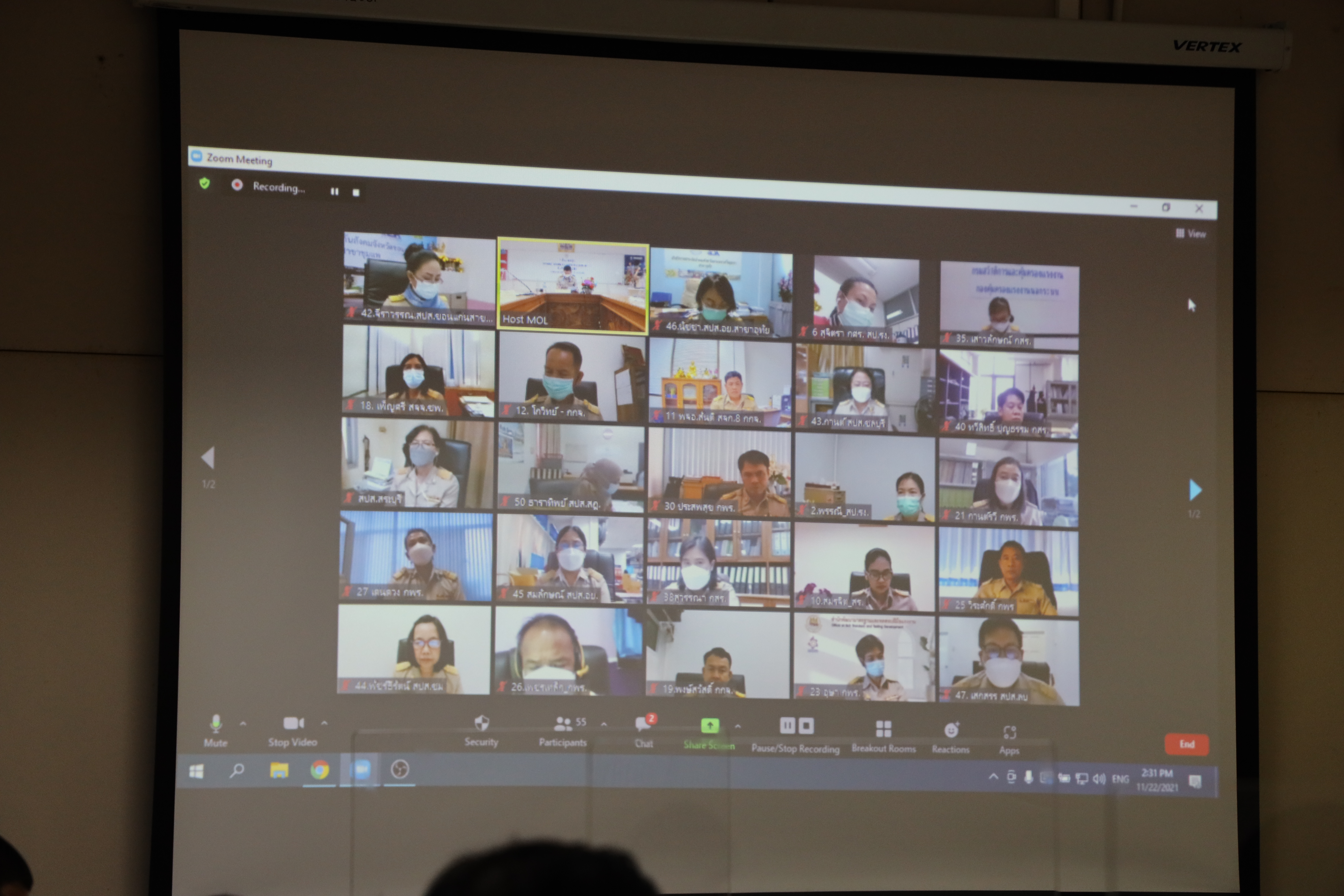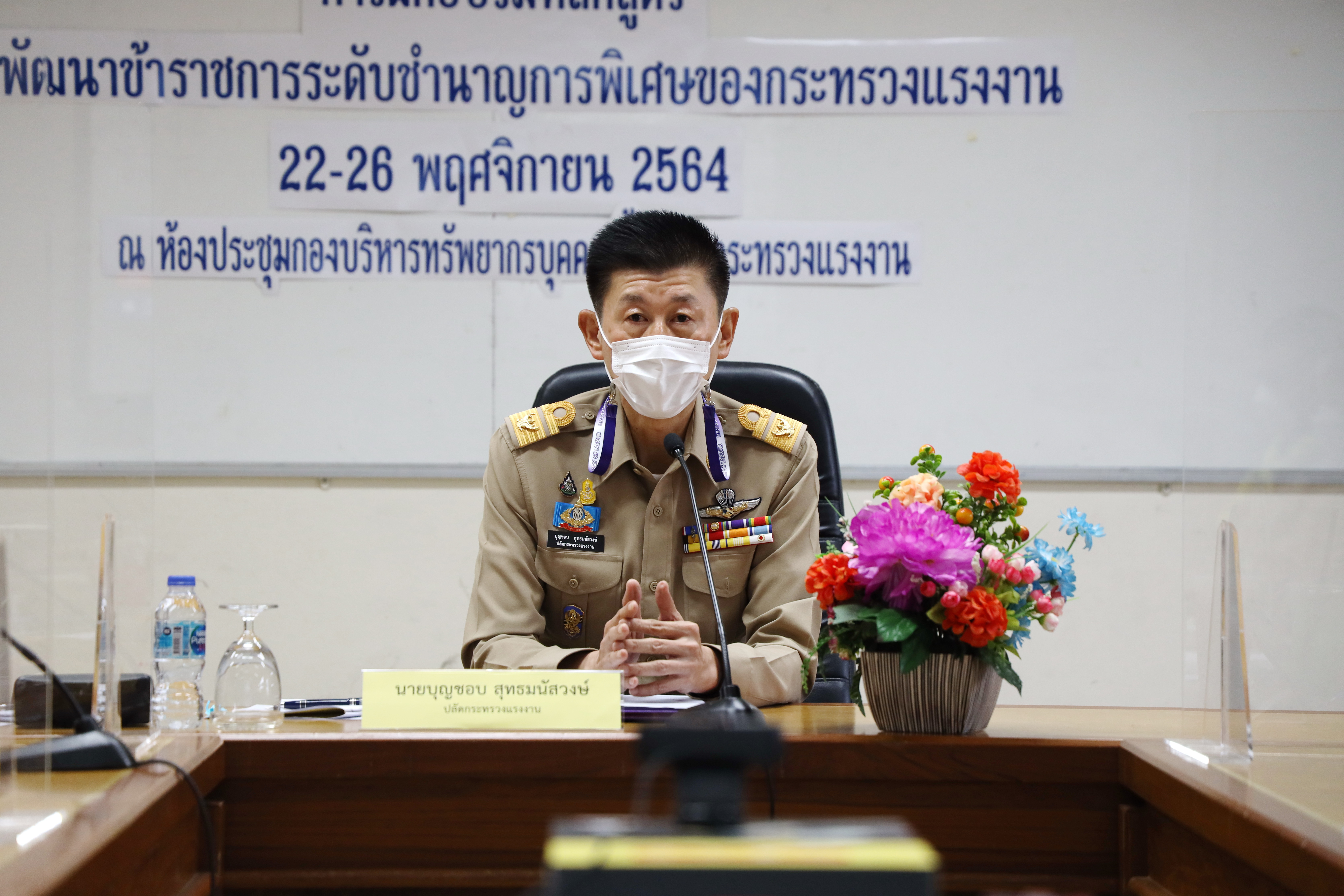 วันที่ 22 พฤศจิกายน 2564 เวลา 14.30 น. นายบุญชอบ สุทธมนัสวงษ์ ปลัดกระทรวงแรงงาน เป็นประธานเปิดโครงการอบรมหลักสูตรการพัฒนาข้าราชการระดับชำนาญการพิเศษของกระทรวงแรงงาน เพื่อพัฒนาศักยภาพข้าราชการระดับชำนาญการพิเศษของกระทรวงแรงงานให้มีความพร้อมในการเป็นผู้นำทางความคิด เพื่อสร้างกระทรวงแรงงานให้เป็นองค์กรที่ขับเคลื่อนภารกิจด้านแรงงาน สนองตอบนโยบายและยุทธศาสตร์ชาติได้อย่างมีประสิทธิภาพ ให้ประสบผลสำเร็จและบรรลุเป้าหมายที่กำหนดไว้อย่างเป็นระบบ รวมถึงเพิ่มพูนสมรรถนะในการเรียนรู้และพัฒนาตนเองอย่างต่อเนื่อง มีความพร้อมในการก้าวขึ้นสู่ตำแหน่งที่สูงขึ้น สามารถนำความรู้ที่ได้รับไปปรับใช้ในการปฏิบัติหน้าที่ได้อย่างถูกต้อง ตลอดจนเสริมสร้างความสามัคคีและสร้างเครือข่ายที่ดีในการทำงานร่วมกัน โดยมีผู้เข้ารับการฝึกอบรมเป็นข้าราชการระดับชำนาญการพิเศษจากทุกหน่วยงานในสังกัดกระทรวงแรงงาน และสำนักงานรัฐมนตรี รวม 50 คน ณ ห้องประชุมกองบริหารทรัพยากรบุคคล ชั้น 10 อาคารกระทรวงแรงงาน
