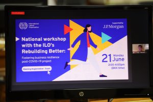 วันที่ 21 มิถุนายน 2564 เวลา 14.00 น. นายสุทธิ สุโกศล ปลัดกระทรวงแรงงาน มอบหมายให้ นางสาวภัทรพร สมันตรัฐ ผู้ช่วยปลัดกระทรวงแรงงาน เป็นประธานเปิดโครงการ Rebuilding Better: Fostering Business Resilience Post-COVID-19 Project ของประเทศไทย ผ่านระบบการประชุมทางไกล (Video Conference) ณ ห้องประชุมประสงค์ รณะนันทน์ ชั้น 5 อาคารกระทรวงแรงงาน