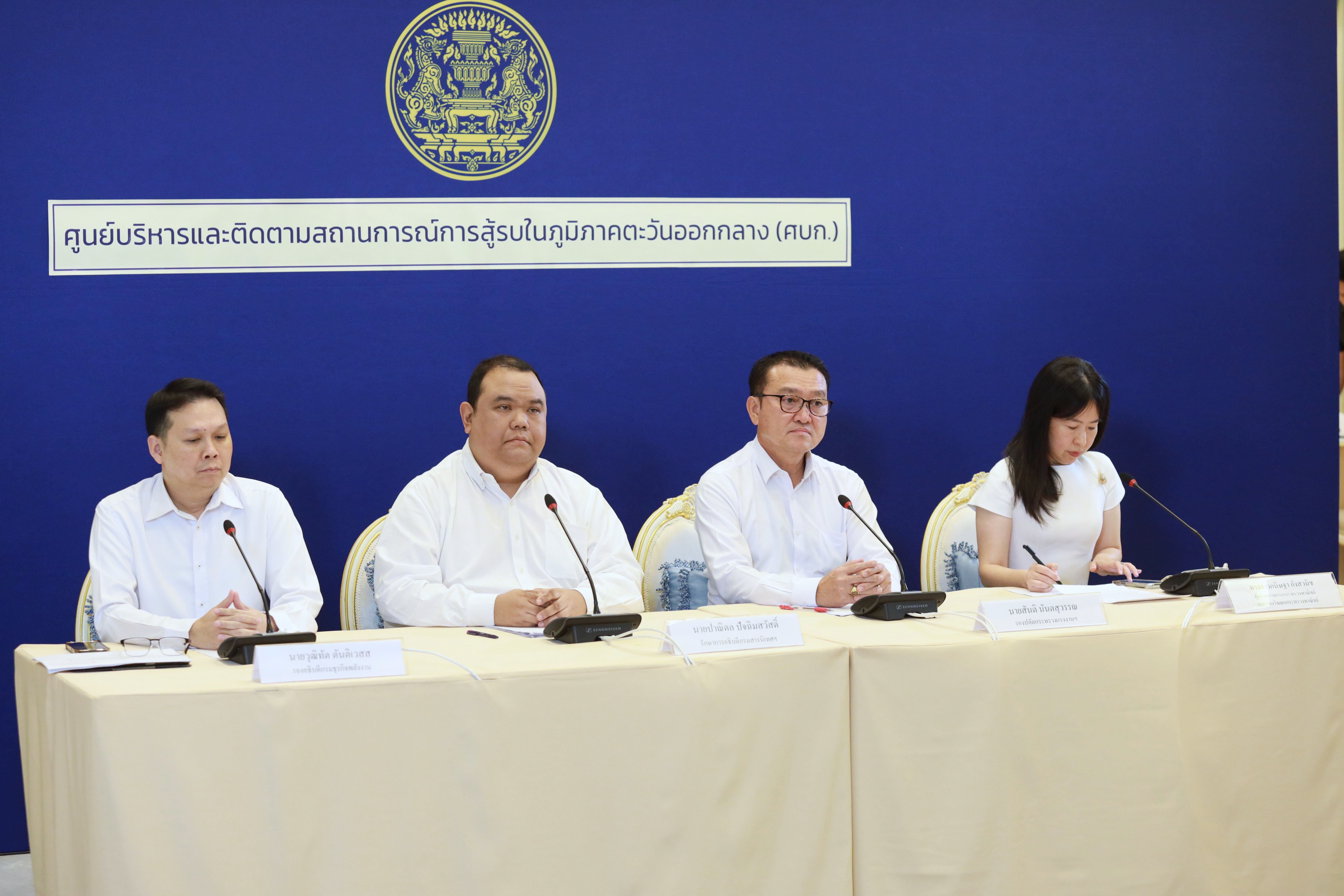 วันที่ 20 มีนาคม 2569 เวลา 11.05 น. พันตำรวจโท วรรณพงษ์ คชรักษ์ ปลัดกระทรวงแรงงาน มอบหมายให้ นายสันติ นันตสุวรรณ รองปลัดกระทรวงแรงงานและโฆษกกระทรวงแรงงาน ร่วมแถลงข่าวศูนย์บริหารและติดตามสถานการณ์การสู้รบในภูมิภาคตะวันออกกลาง (ศบก.) ประเด็น การดูแลสิทธิประโยชน์กรณีแรงงานไทยเสียชีวิตในรัฐอิสราเอล เนื่องจากสถานการณ์การสู้รบในภูมิภาคตะวันออกกลาง โดยมี นายปาณิดล ปัจฉิมสวัสดิ์ รักษาการอธิบดีกรมสารนิเทศและรองโฆษกกระทรวงการต่างประเทศ นายวุฒิทัต ตันติเวสส รองอธิบดีกรมธุรกิจพลังงาน นางสาวกนิษฐา กังสวนิช ผู้ตรวจราชการกระทรวงพาณิชย์และรองโฆษกกระทรวงพาณิชย์ ร่วมแถลงข่าวด้วย ณ ตึกภักดีบดินทร์ ทำเนียบรัฐบาล