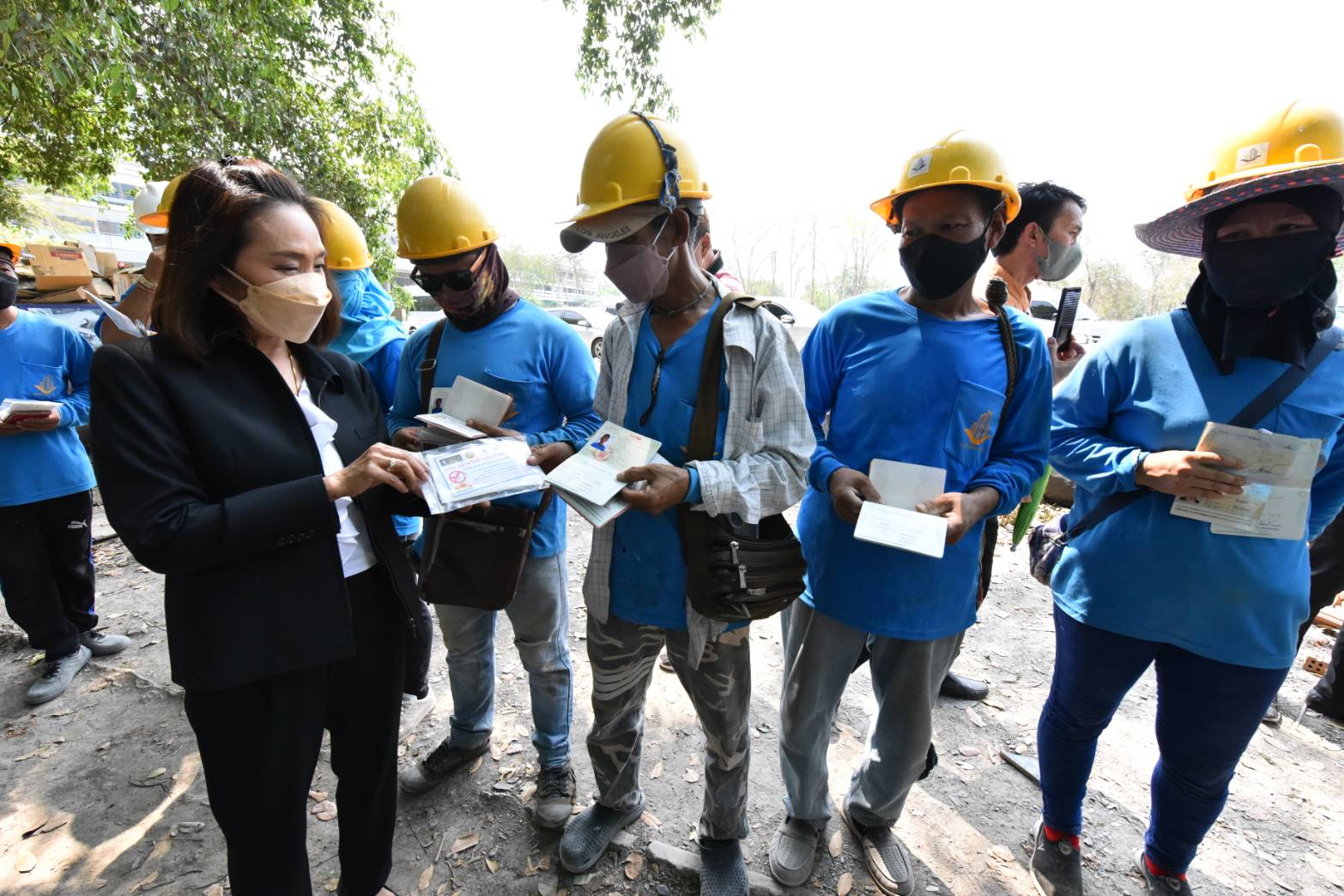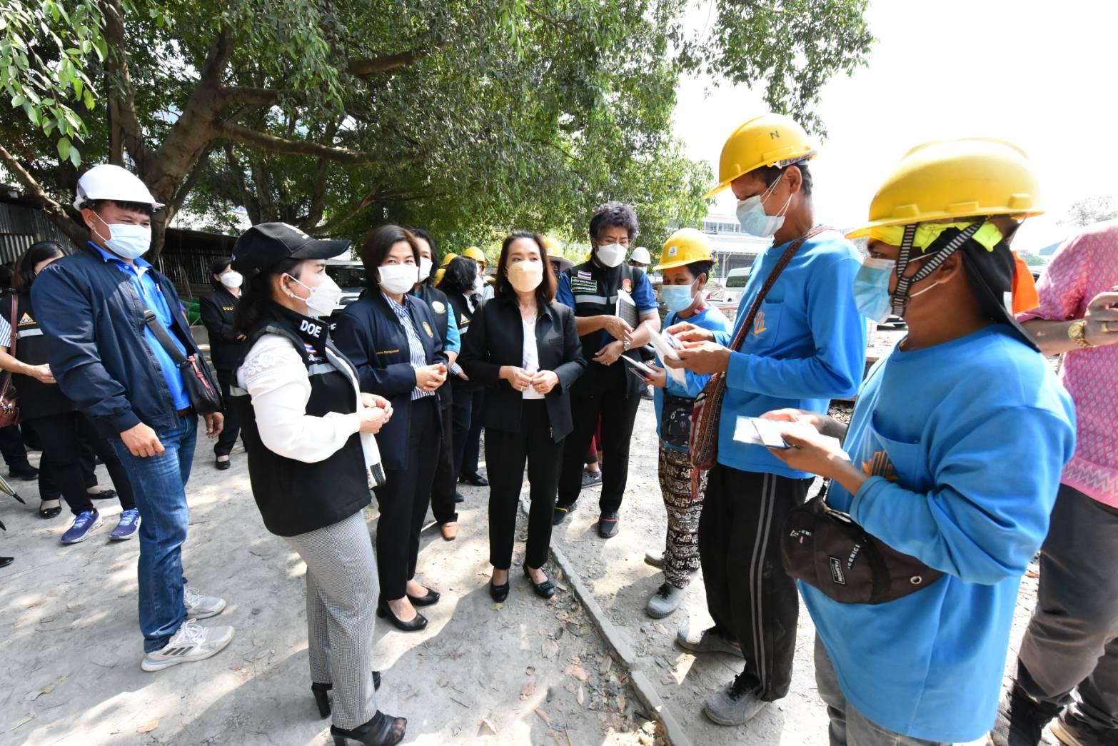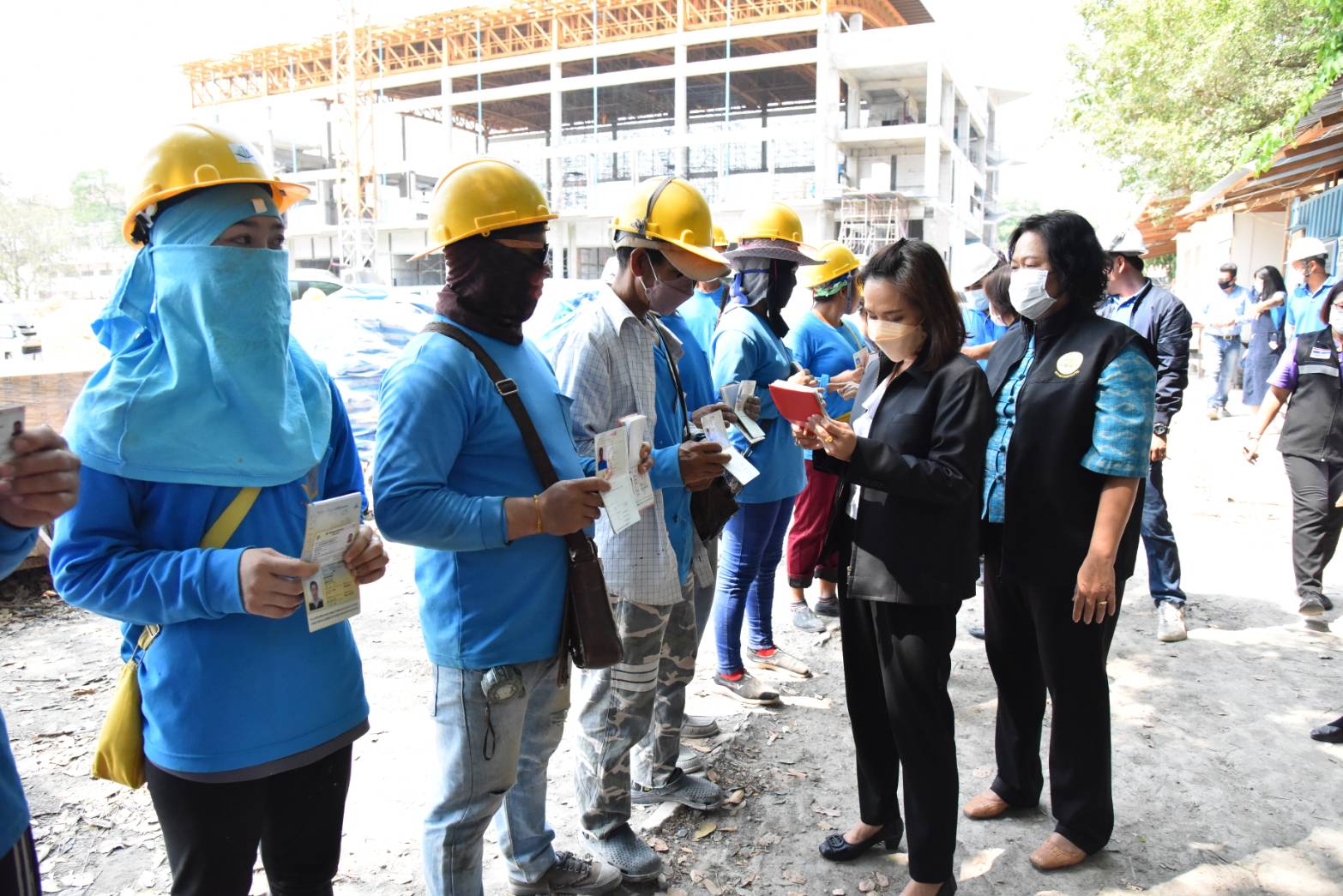 On March 21, 2023, at 13.30 hours, the Ministry of Labour’s Chief Inspector-General, Mrs. Sopa Kieatnircha, visited Lopburi to inspect business establishments that employ foreigners to work, to monitor and protect the rights of foreign workers, ensuring equal treatment with Thai workers. The Senior Executive of V Architect Company Limited (Phetchabun Head Office), Khun Nusit Tantibul, assigned the Lopburi Project Manager and Human Resources Manager from the Phetchabun Head Office to give a welcome. The Social Security Office’s Inspector-General, Mrs. Wantana Nuttapoolwat, and heads of government agencies under the Ministry of Labour in Lopburi Province gave a welcome at V Architect Company Limited. The company is in the construction business and is located (the construction camp) at Thepsatri Rajabhat University, 321 Narai Maharat Road, Thale Chumson Subdistrict, Mueang Lopburi District, Lopburi Province (Construction of Sports and Health Science Center Building). There are 46 employees, comprising 35 Thais and 11 foreign workers, including 8 Myanmar nationals and 3 Laotian nationals.
