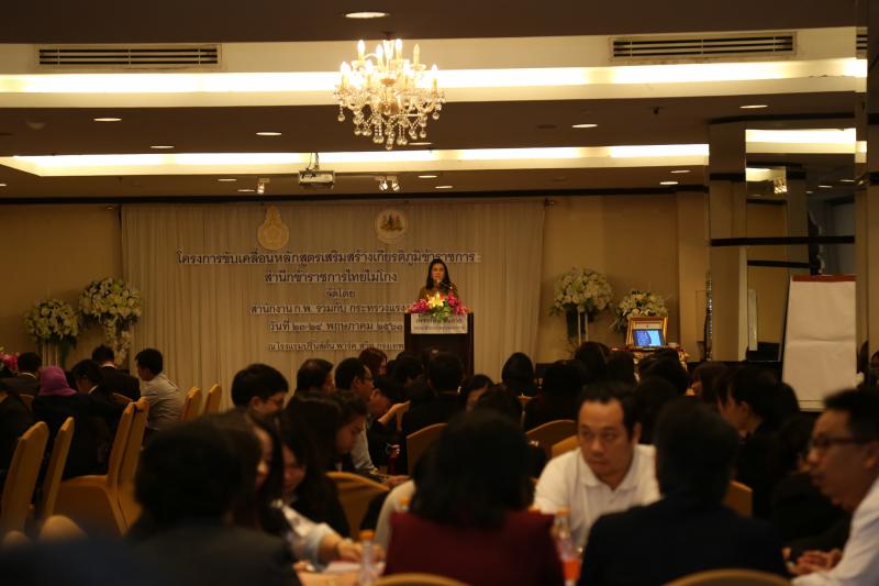 วันที่ ๒๓ พฤษภาคม ๒๕๖๑ กระทรวงแรงงานร่วมกับสำนักงาน ก.พ. จัดทำโครงการเสริมสร้างเกียรติภูมิข้าราชการ : สำนึกข้าราชการไทยไม่โกง โดยมีนางชุติมา หาญเผชิญ รองเลขาธิการ ก.พ. เป็นประธานเปิดโครงการฯ นางเพชรรัตน์ สินอวย รองปลัดกระทรวงแรงงาน ร่วมบรรยายพิเศษ เรื่องนโยบาย วิสัยทัศน์ และการดำเนินการเสริมสร้างคุณธรรม จริยธรรม การป้องกันและปราบปรามการทุจริตของกระทรวงแรงงาน ผู้เข้าร่วมโครงการประกอบด้วยหน่วยงานในสังกัดกระทรวงแรงงานทั้ง ๖ หน่วยงาน ได้แก่ สำนักงานปลัดกระทรวงแรงงาน กรมการจัดหางาน กรมพัฒนาฝีมือแรงงาน กรมสวัสดิการและคุ้มครองแรงงาน สำนักงานประกันสังคม และสถาบันส่งเสริมความปลอดภัย อาชีวอนามัย และสภาพแวดล้อมในการทำงาน (องค์การมหาชน) จำนวนทั้งสิ้น ๑๔๐ คน ณ โรงแรมปริ้นตั้น พาร์ค สวีท กรุงเทพมหานคร