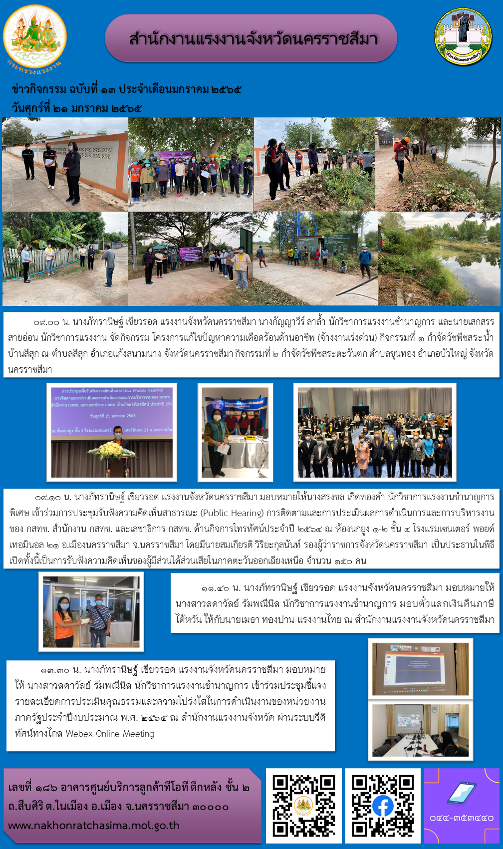สรจ.นครราชสีมา จัดกิจกรรมโครงการแก้ไขปัญหาความเดือดร้อนด้านอาชีพ และร่วมกิจกรรมต่าง ๆ