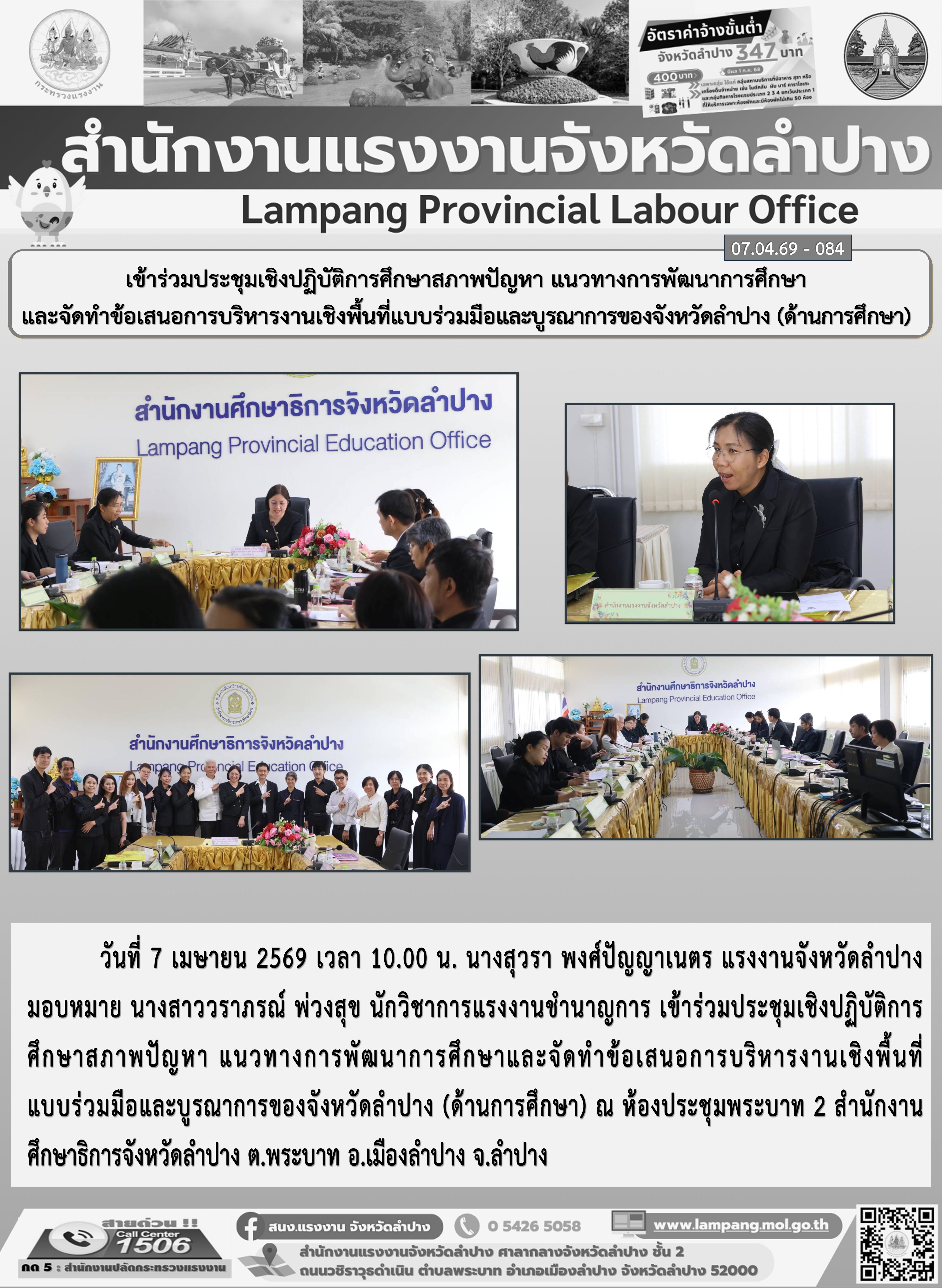เข้าร่วมประชุมเชิงปฏิบัติการศึกษาสภาพปัญหา แนวทางการพัฒนาการศึกษาและจัดทำข้อเสนอการบริหารงานเชิงพื้นที่แบบร่วมมือและบูรณาการของจังหวัดลำปาง (ด้านการศึกษา)