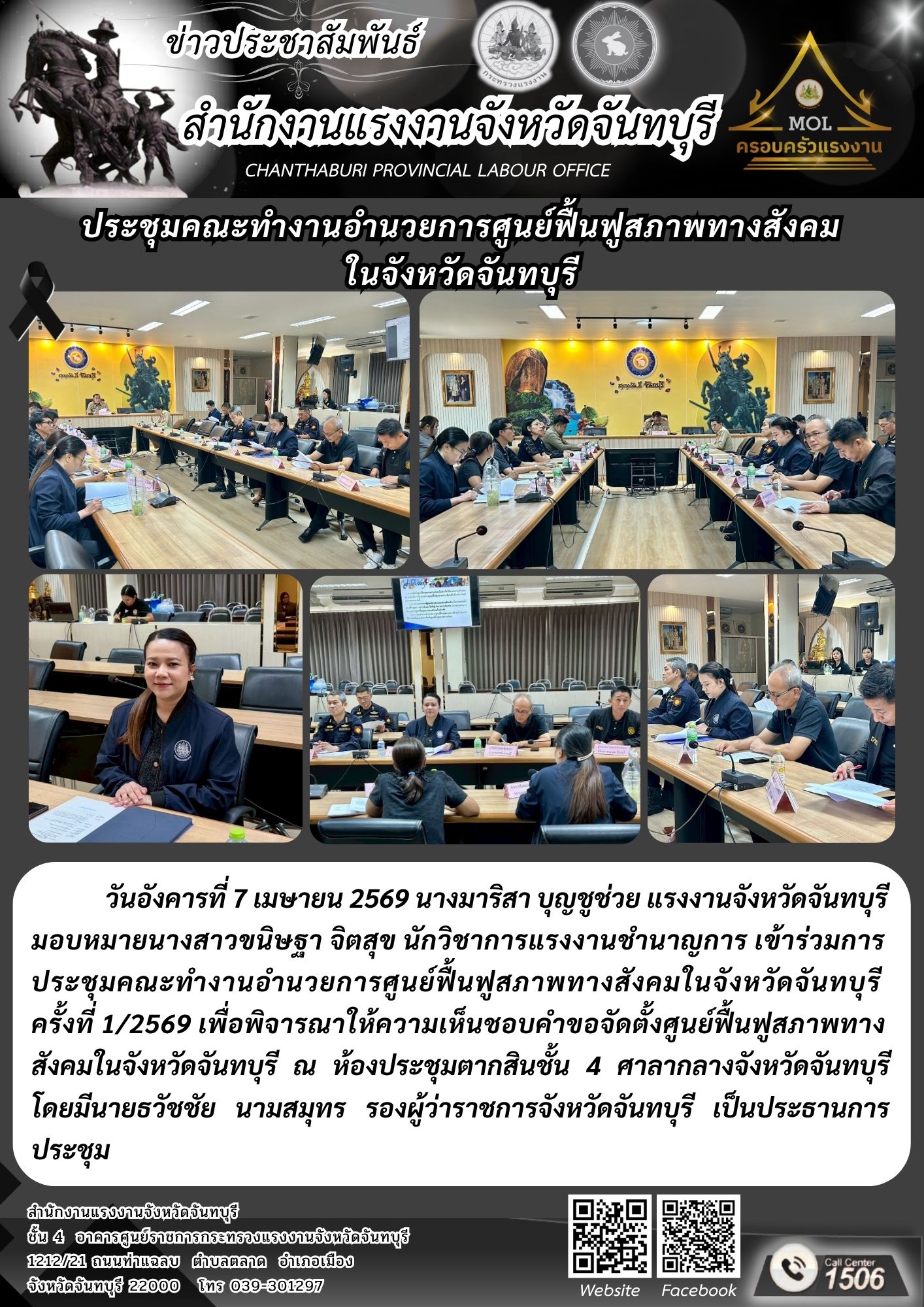 สรจ.จันทบุรี เข้าร่วมการ ประชุมคณะทำงานอำนวยการศูนย์ฟื้นฟูสภาพทางสังคมในจังหวัดจันทบุรี ครั้งที่ 1/2569