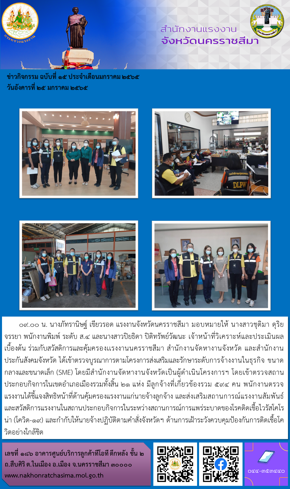 สรจ.นครราชสีมา เข้าตรวจบูรณาการตามโครงการส่งเสริมและรักษาระดับการจ้างงานในธุรกิจขนาด SME