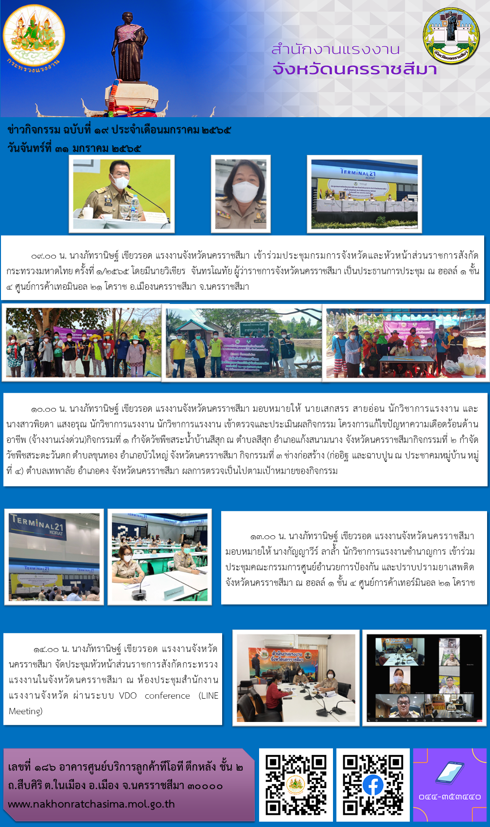 ภารกิจของสำนักงานแรงงานจังหวัดนครราชสีมา ประจำวันที่ 31 มกราคม 2565