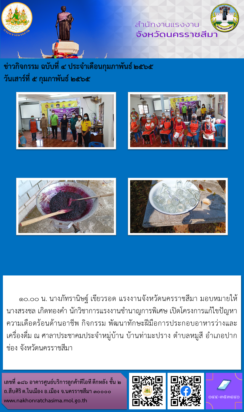 ภารกิจของสำนักงานแรงงานจังหวัดนครราชสีมา ประจำวันที่ 5 กุมภาพันธ์ 2565