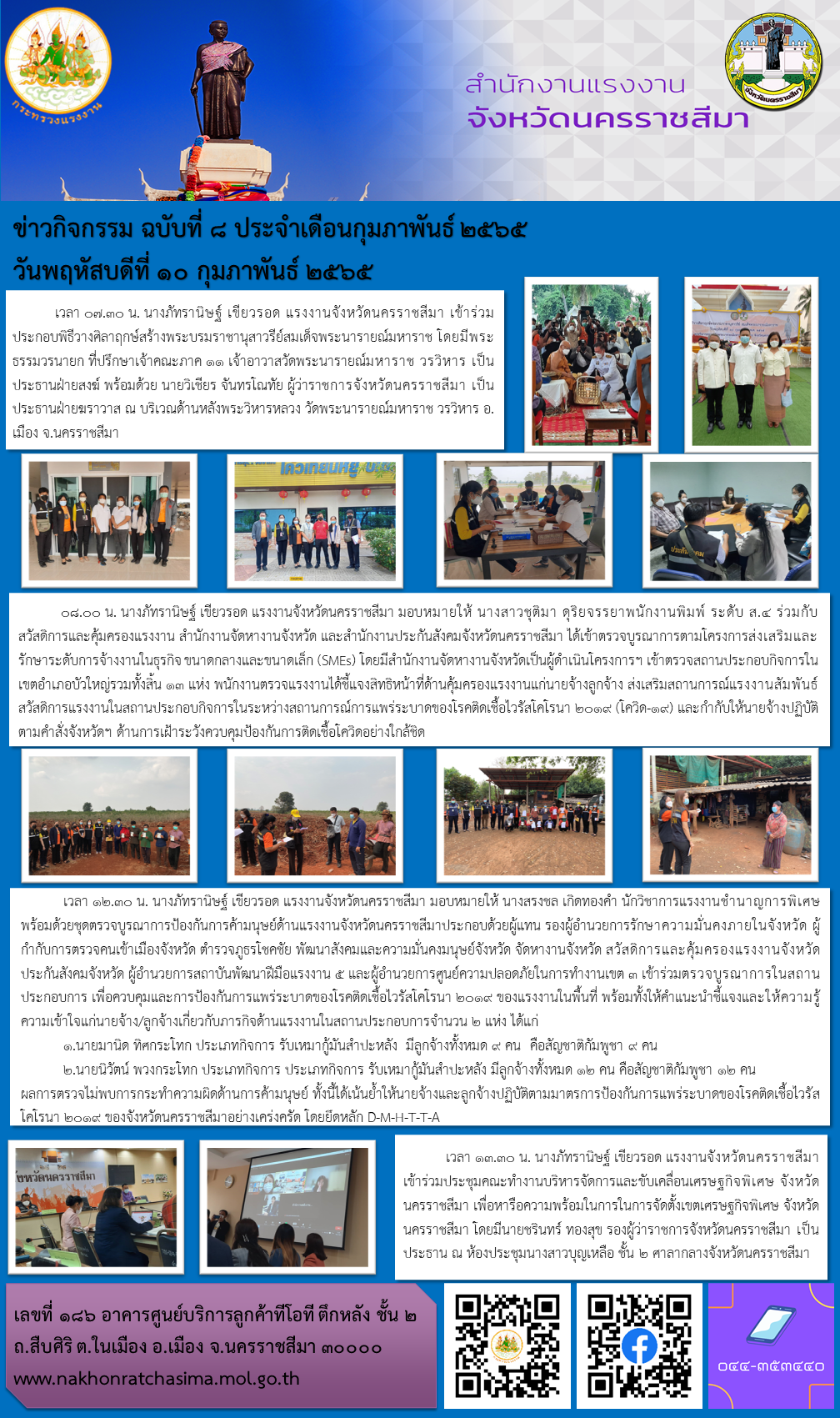 ภารกิจสำนักงานแรงงานจังหวัดนครราชสีมา ประจำวันที่ 10 กุมภาพันธ์ 2565