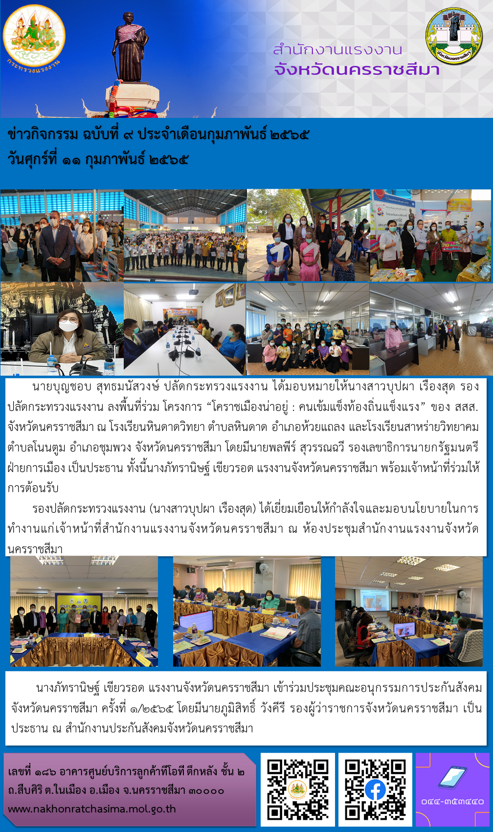 ภารกิจสำนักงานแรงงานจังหวัดนครราชสีมา ประจำวันที่ 11 กุมภาพันธ์ 2565