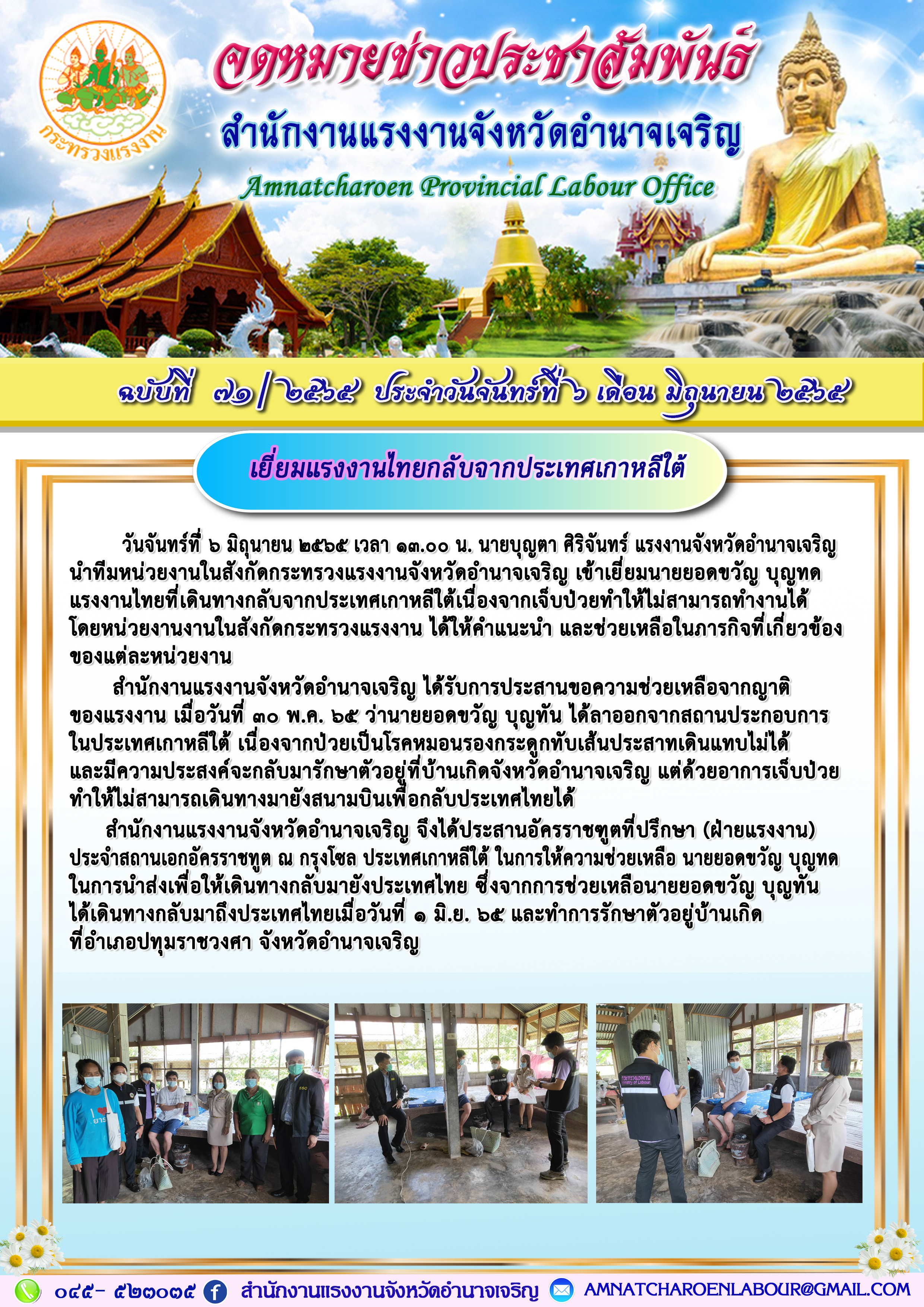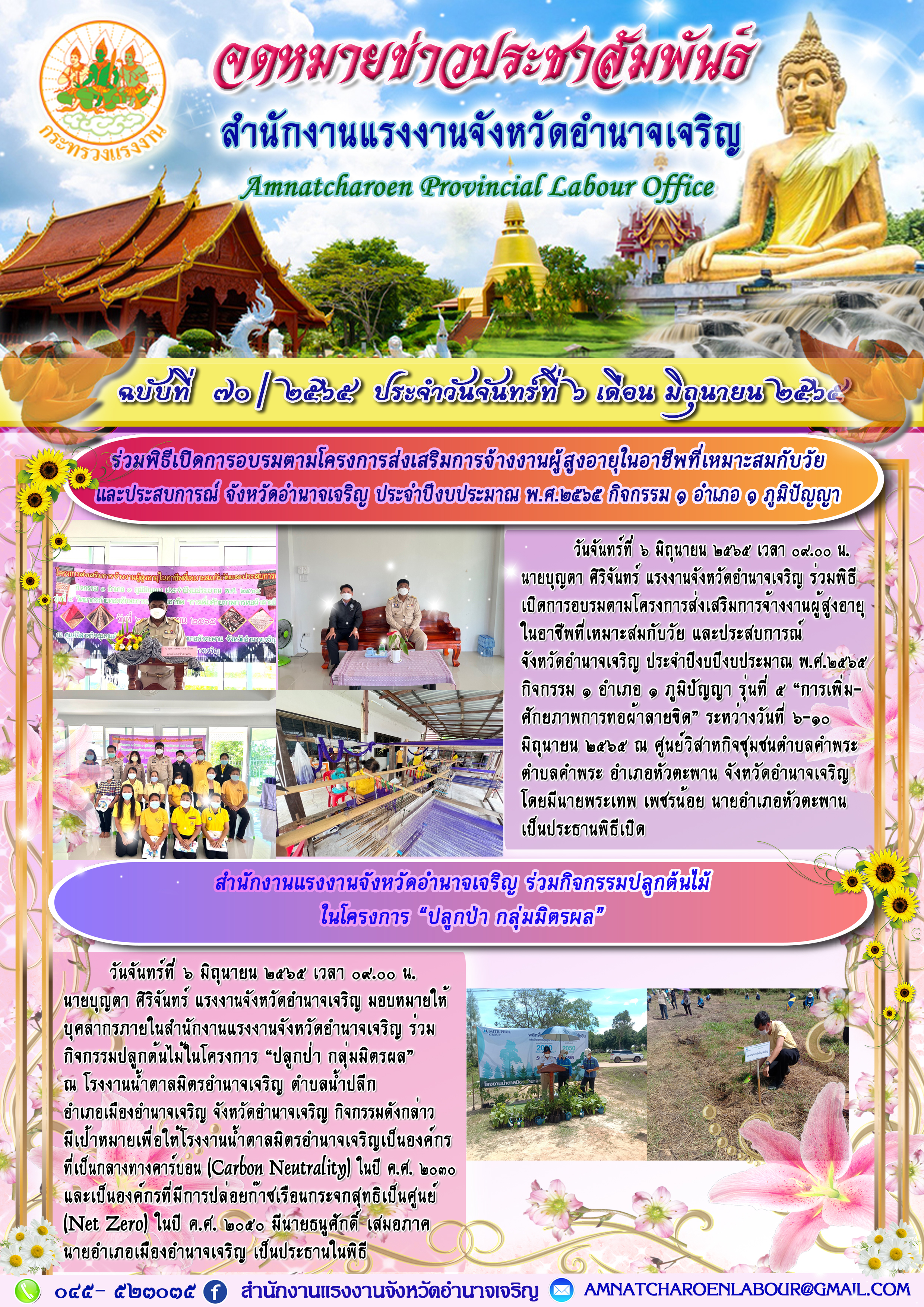 ข่าวประชาสัมพันธ์ สำนักงานแรงานจังหวัดอำนาจเจริญ ฉบับที่ 70