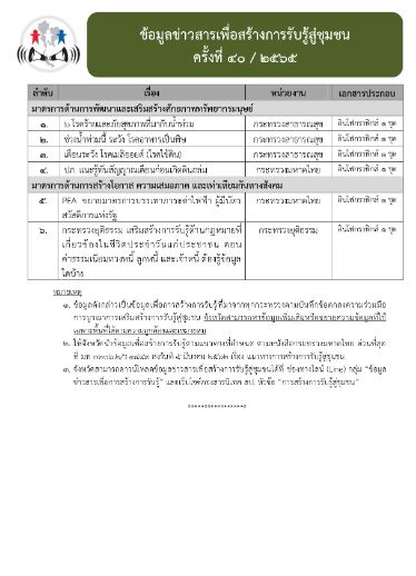 ข้อมูลข่าวสารเพื่อสร้างการรับรู้สู่ชุมชน ครั้งที่ 40/2565