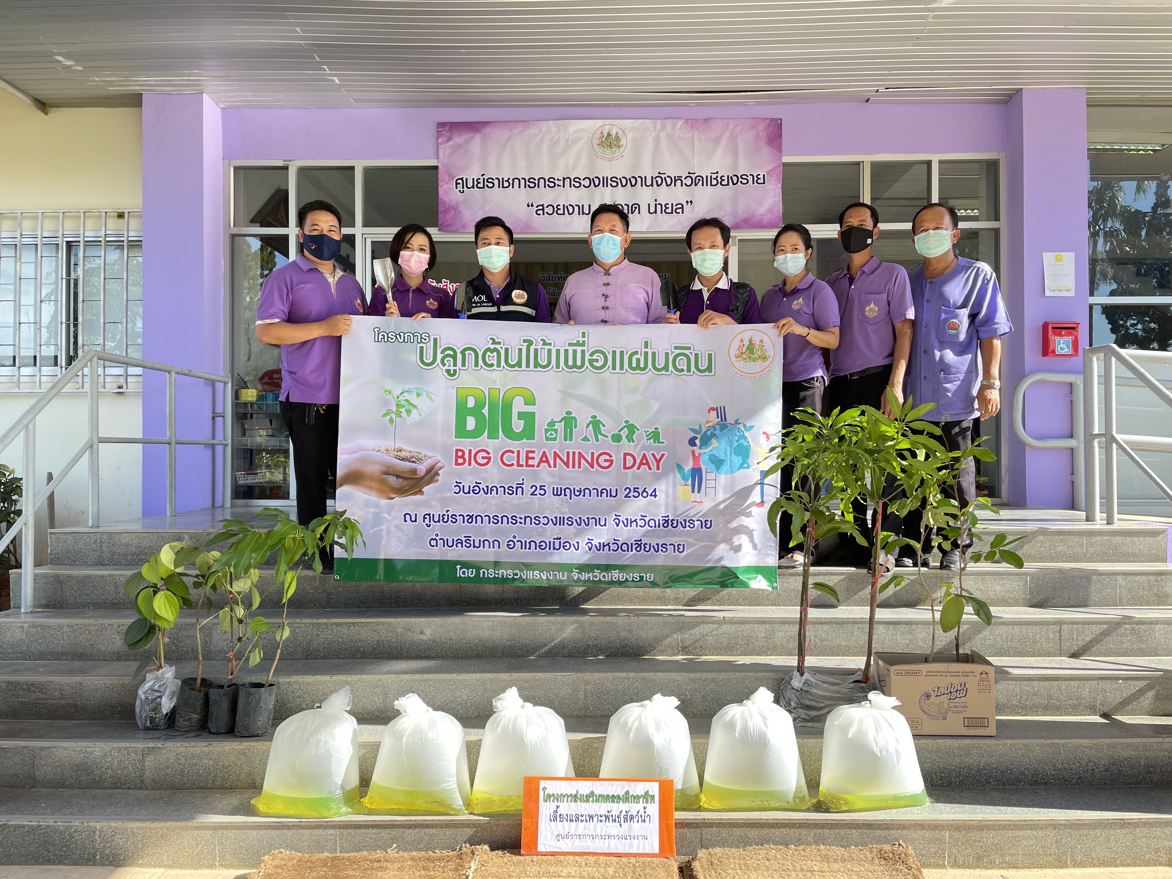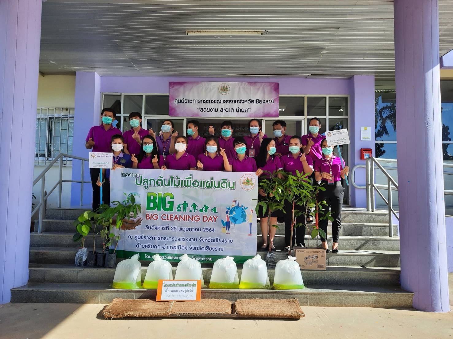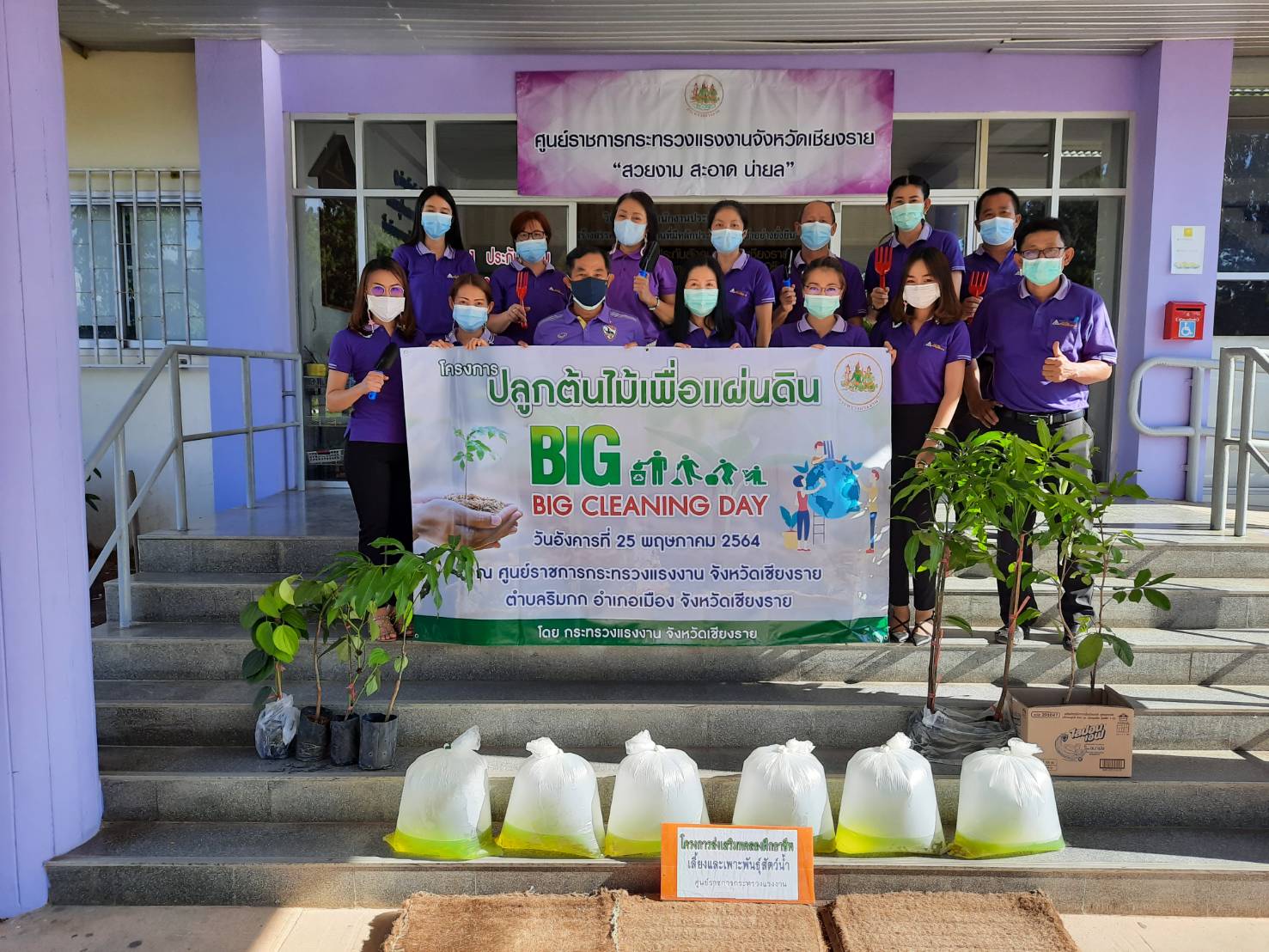 ข้าราชการ พนักงาน และลูกจ้าง สังกัดกระทรวงแรงงานจังหวัดเชียงราย ร่วมทำกิจกรรม Big Cleaning Day และร่วมกันปลูกต้นไม้เนื่องในวันต้นไม้แห่งชาติ ประจำปี 2564