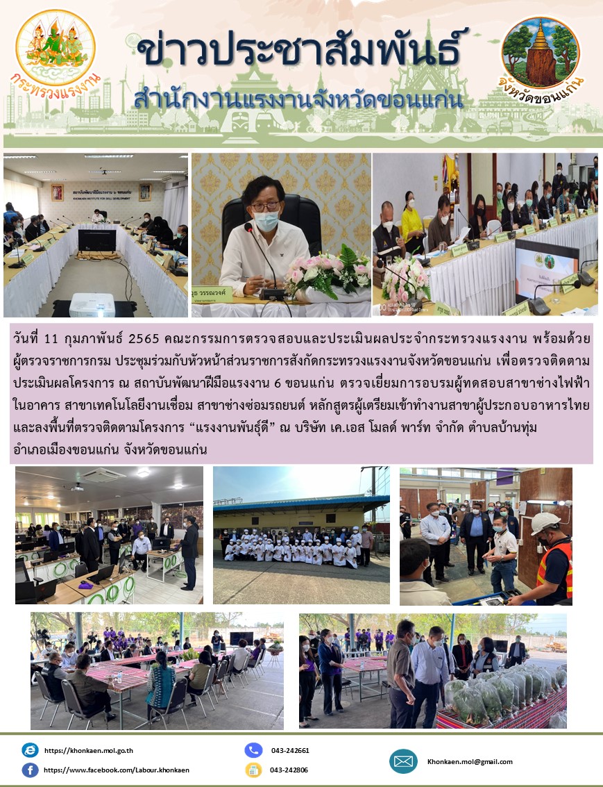 คณะกรรมการตรวจสอบและประเมินผลประจำกระทรวงแรงงาน ประชุมร่วมกับหัวหน้าส่วนราชการสังกัดกระทรวงแรงงานจังหวัดขอนแก่น