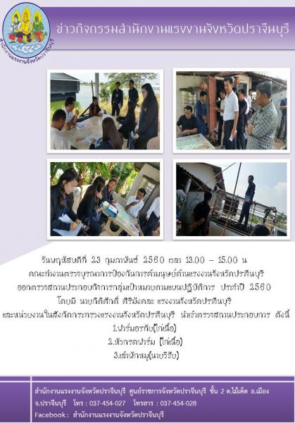 คณะทำงานตรวจบูรณาการป้องกันการค้ามนุษย์ด้านแรงงานจังหวัดปราจีนบุรีออกตรวจสถานประกอบกิจการกลุ่มเป้าหมายตามแผนปฏิบัติการ ประจำปี 2560