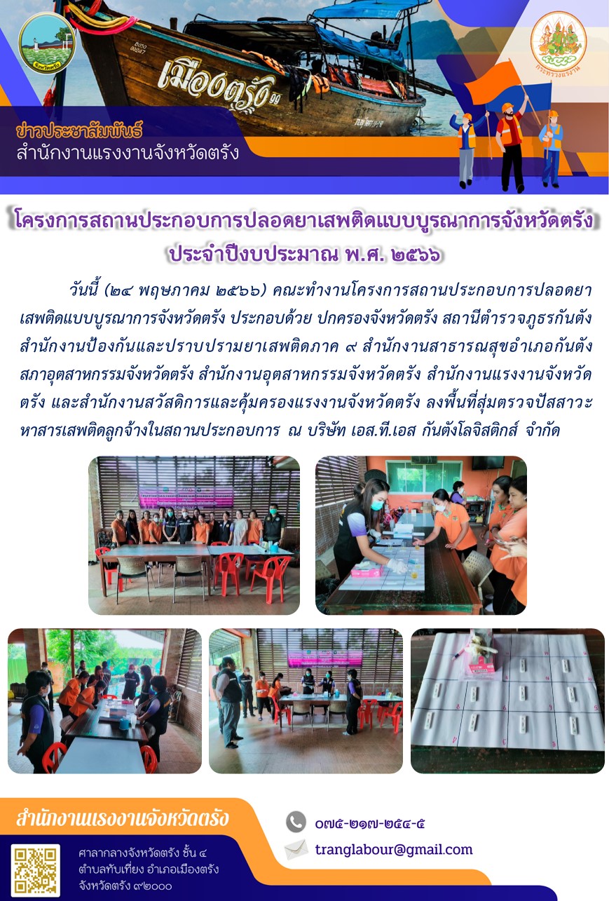 สรจ.ตรัง คณะทำงานโครงการสนับสนุนภารกิจการตรวจคัดกรองเพื่อแสวงหาข้อบ่งชี้เบื้องต้น เพื่อแสวงหาข้อบ่งชี้สำหรับบุคคลที่มีเหตุอันควรสงสัยได้ว่าอาจเป็นผู้เสียหายจากการแสวงหาประโยชน์ด้านแรงงาน แรงงานบังคับหรือการค้ามนุษย์ด้านแรงงาน จังหวัดตรัง ประจำปีงบประมาณ พ.ศ.2566