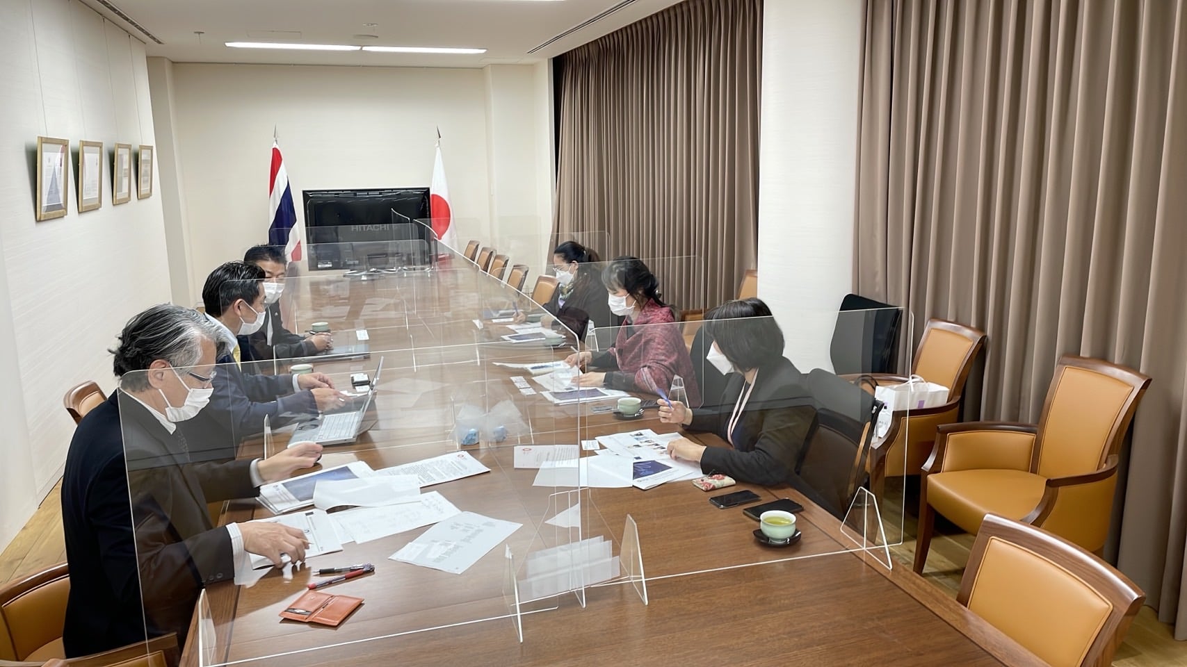 เมื่อวันที่ 18 พฤศจิกายน 2564 เวลา 13.30 น. (เวลาท้องถิ่นญี่ปุ่น ซึ่งเร็วกว่าประเทศไทย 2 ชั่วโมง) นางสาวสดุดี กิตติสุวรรณ อัครราชทูตที่ปรึกษา (ฝ่ายแรงงาน) สำนักงานแรงงานในประเทศญี่ปุ่น พร้อมด้วยนางสาวเกศสุดา มงคลชาติ ที่ปรึกษา (ฝ่ายแรงงาน) ให้การต้อนรับคณะผู้บริหารองค์กร I.P.M. (The Juridical Foundation for International Personnel Management) จำนวน 3 ราย ได้แก่ (1) Mr. IKEDA Hideto ตำแหน่ง President (2) Mr. WAKASUGI Kazuya ตำแหน่ง Managing Director และ (3) Mr. HIRAI Tadayoshi ตำแหน่ง Chief of Planning Promotion Department ณ ห้องประชุม ชั้น 2 สถานเอกอัครราชทูต ณ กรุงโตเกียว โดยวัตถุประสงค์ของการเข้าเยี่ยมคารวะครั้งนี้ เพื่อแนะนำองค์กรฯ และหารือเรื่องการรับผู้ฝึกปฏิบัติงานด้านเทคนิค/แรงงานทักษะเฉพาะไทย องค์กร I.P.M. มีสำนักงานใหญ่ตั้งอยู่ที่กรุงโตเกียว มีสาขา 10 แห่ง กระจายอยู่ตามจังหวัดต่าง ๆ ทั่วประเทศญี่ปุ่น จ้างพนักงานรวมทั้งสิ้น 103 คน รวมถึงมีศูนย์ฝึกอบรมที่ภูเขาร็อคโคในจังหวัด Hyogo เปิดดำเนินการรับดูแลผู้ฝึกปฏิบัติงานด้านเทคนิคต่างชาติจำนวนมากกว่า 8,000 คน เป็นเวลากว่า 30 ปี ปัจจุบันรับดูแลแรงงานต่างชาติทั้งผู้ฝึกปฏิบัติงานด้านเทคนิค แรงงานก่อสร้าง และแรงงานทักษะเฉพาะ โดยสถิติขององค์กรฯ ณ วันที่ 31 มีนาคม 2564 องค์กรฯ รับดูแลแรงงานเวียดนามมากที่สุด รองลงมาคือ จีน อินโดนีเซีย ไทย (14 คน) กัมพูชา เมียนมา ฟิลิปปินส์ และมองโกเลีย ตามลำดับ นอกจากนี้ ในฐานะองค์กรสนับสนุนได้จ้างเจ้าหน้าที่ที่สามารถสื่อสารภาษาท้องถิ่นของแรงงานต่างชาติ ได้แก่ เวียดนาม จีน อินโดนีเซีย มองโกเลีย ไทย กัมพูชา เมียนมา และอังกฤษ จำนวน 41 คน ไว้ให้บริการแก่ผู้ฝึกปฏิบัติงานต่างชาติ รวมถึงเน้นให้บริการสอนภาษาญี่ปุ่นผ่านเฟซบุค นอกจากนี้ องค์กรฯ ยังให้ความสำคัญกับการปฏิบัติตามมาตรฐานแรงงานและสนับสนุนการดำเนินการตามวาระการพัฒนาที่ยั่งยืน ค.ศ. 2030 (SDGs)