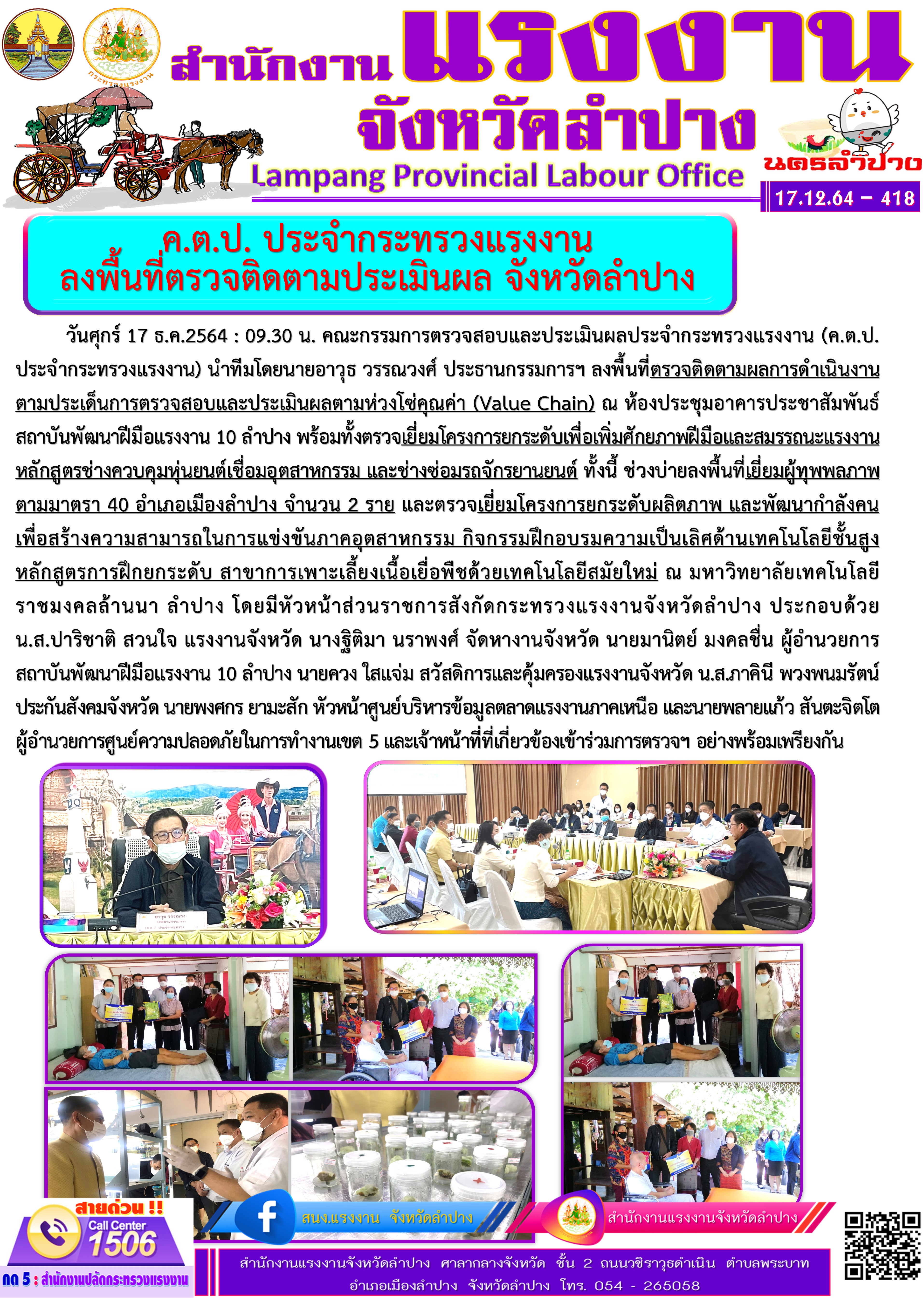 (ค.ต.ป. ประจำกระทรวงแรงงาน) ลงพื้นที่ตรวจติดตามประเมินผล จังหวัดลำปาง